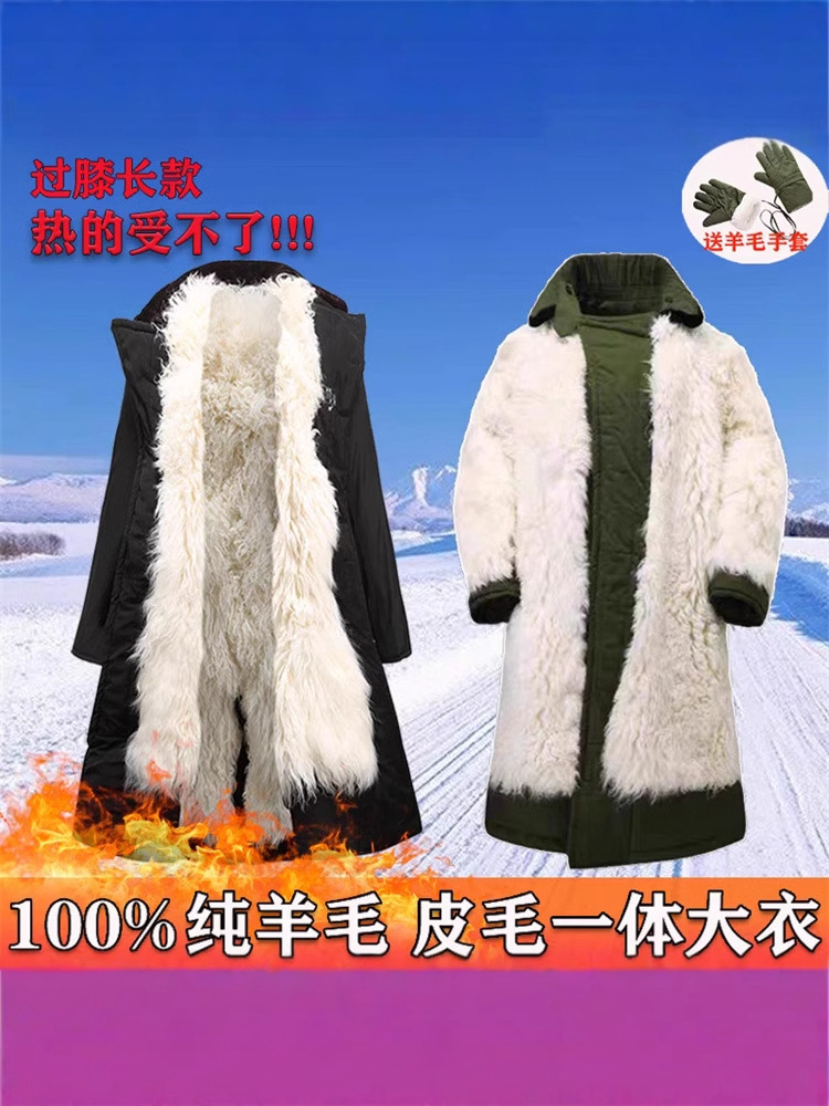 도매 양모 코트 남성용 모피 겨울 긴 방한 구식 패딩 따뜻한 양모 코트