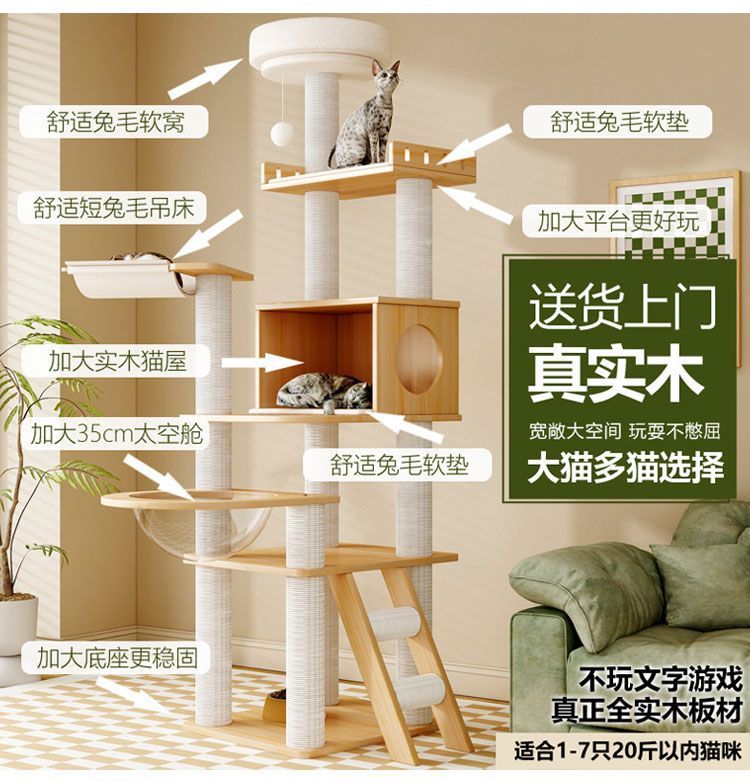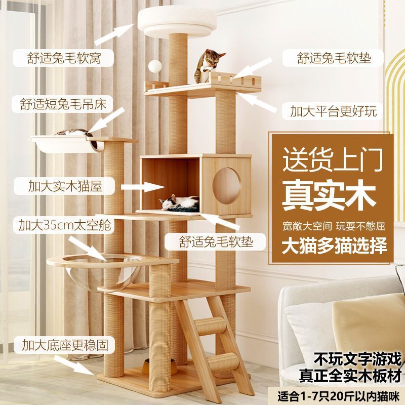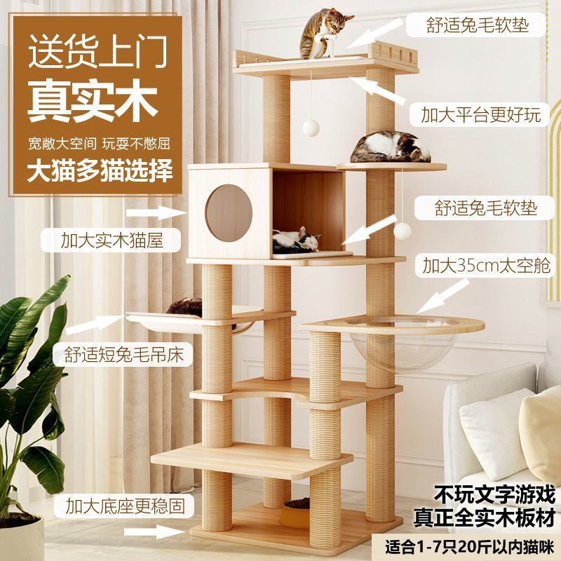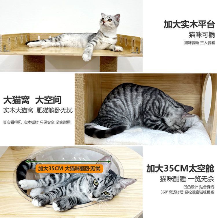 모든 단단한 나무 고양이 등반 랙 큰 공간 캡슐 랙 등반 고양이 나무 고양이 굽기 열 잡아 다층 고양이 장난감
