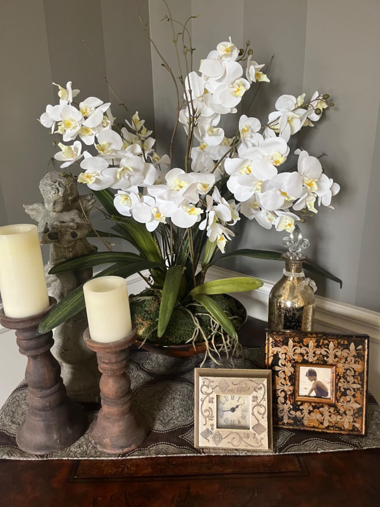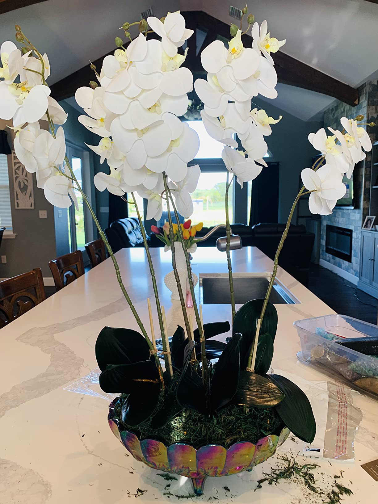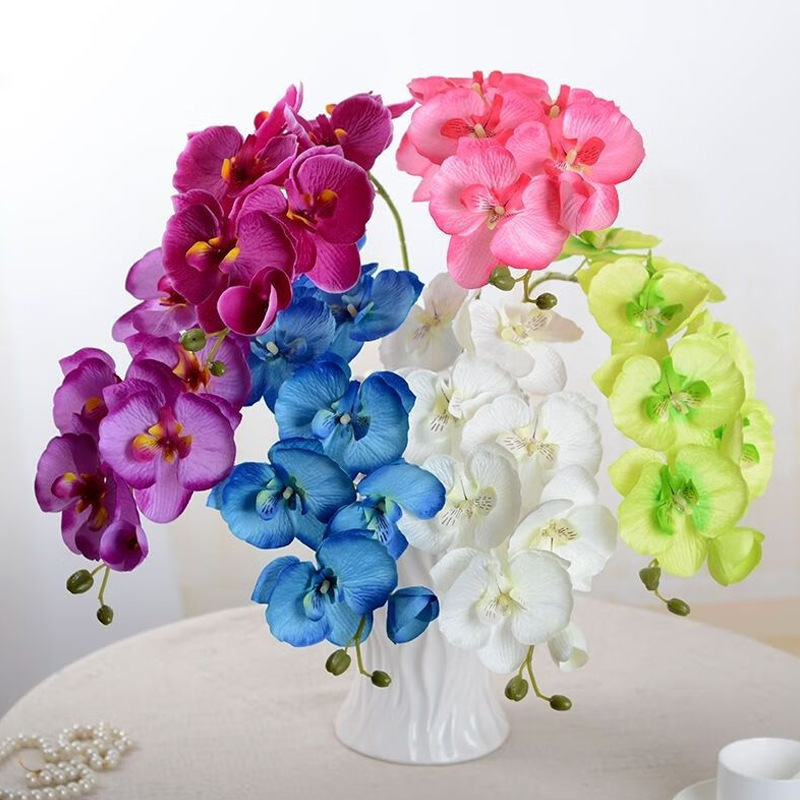 8头绢布蝴蝶兰仿真花手工家居橱窗装饰绢花跨境舞台路引打底假花
