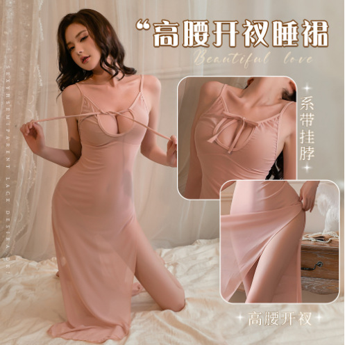 Mei Chia 새로운 섹시한 스파이스 소녀 할로우 아웃 슬림 중간 길이 원피스 내부 파자마 높은 허리 분할 슬링
