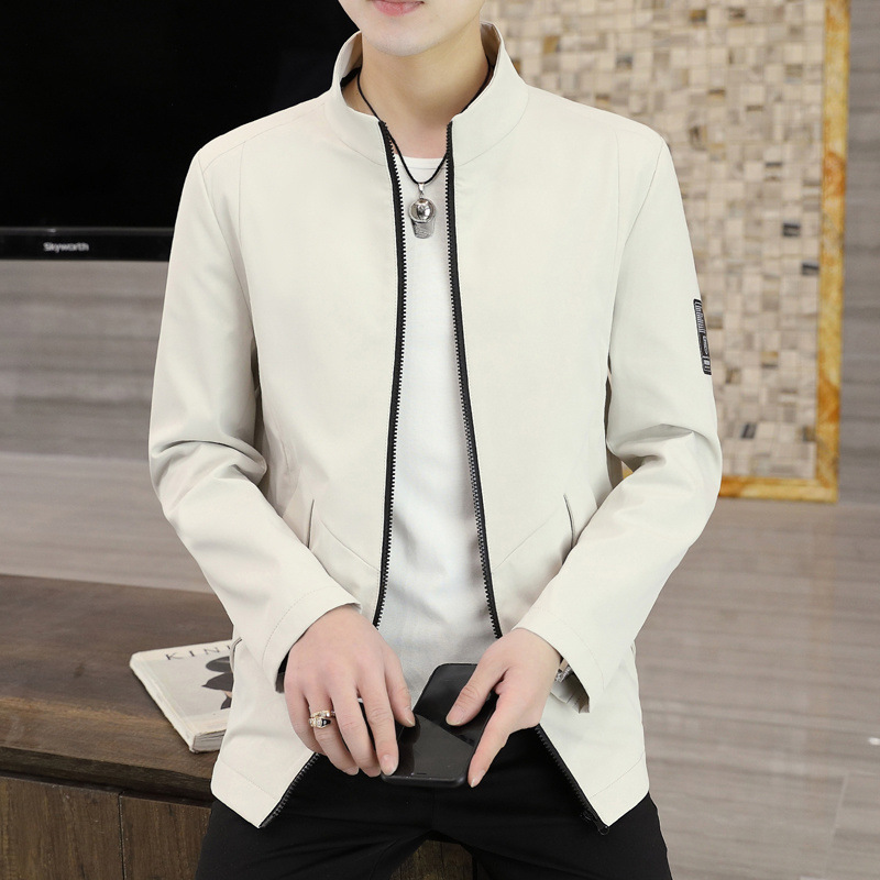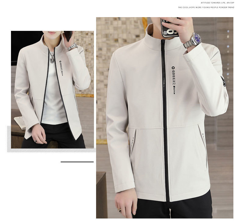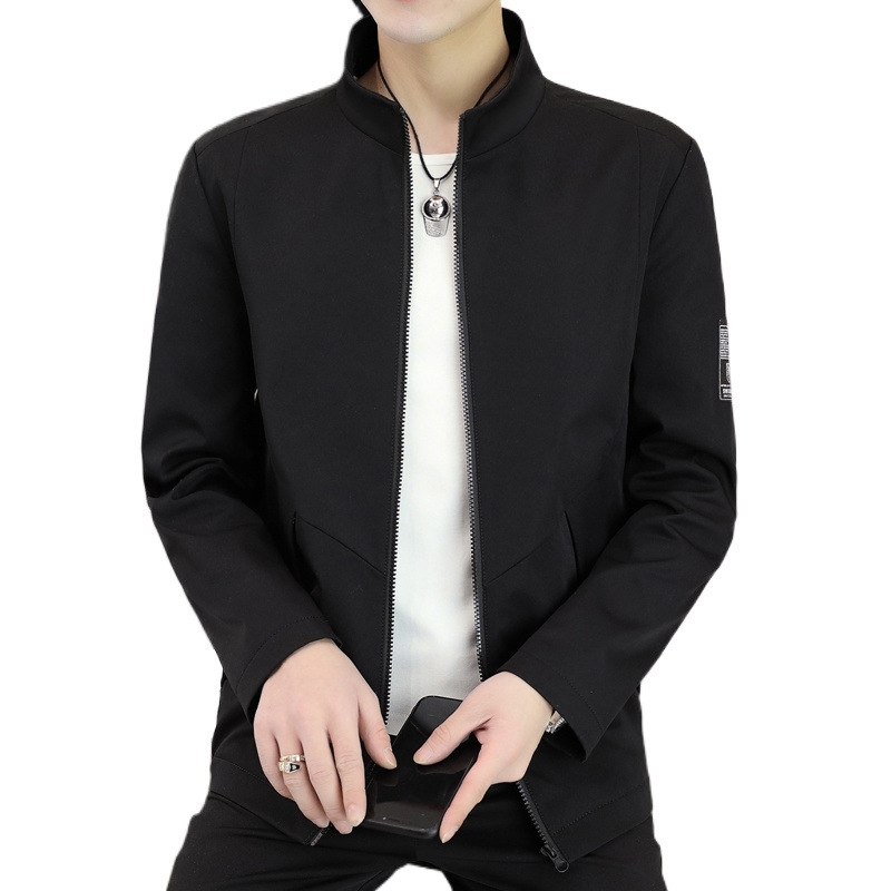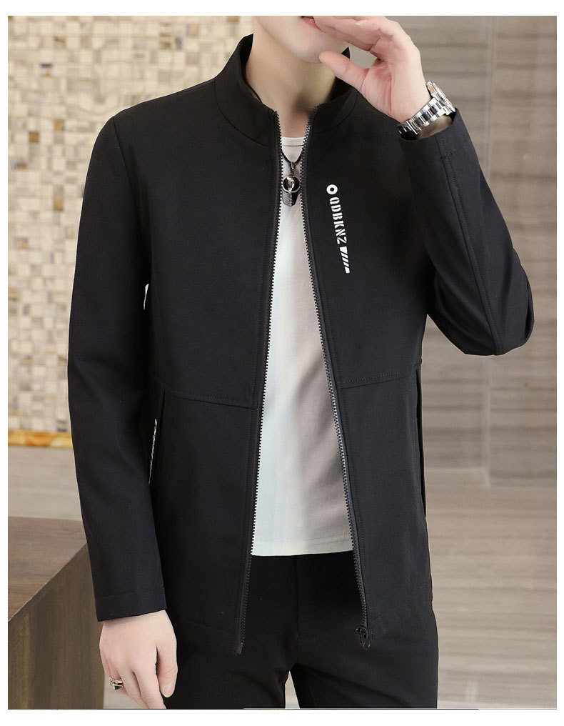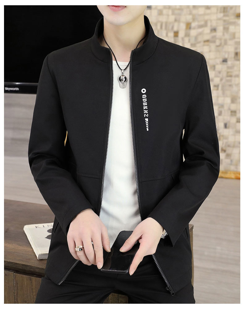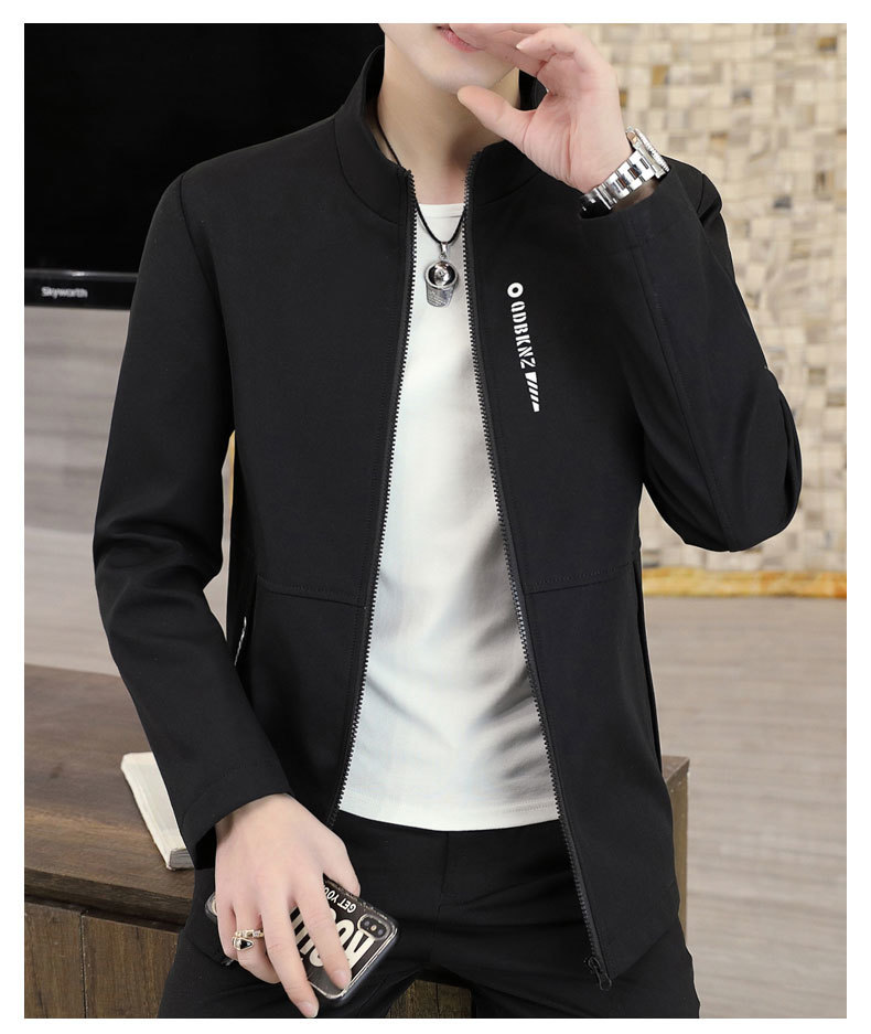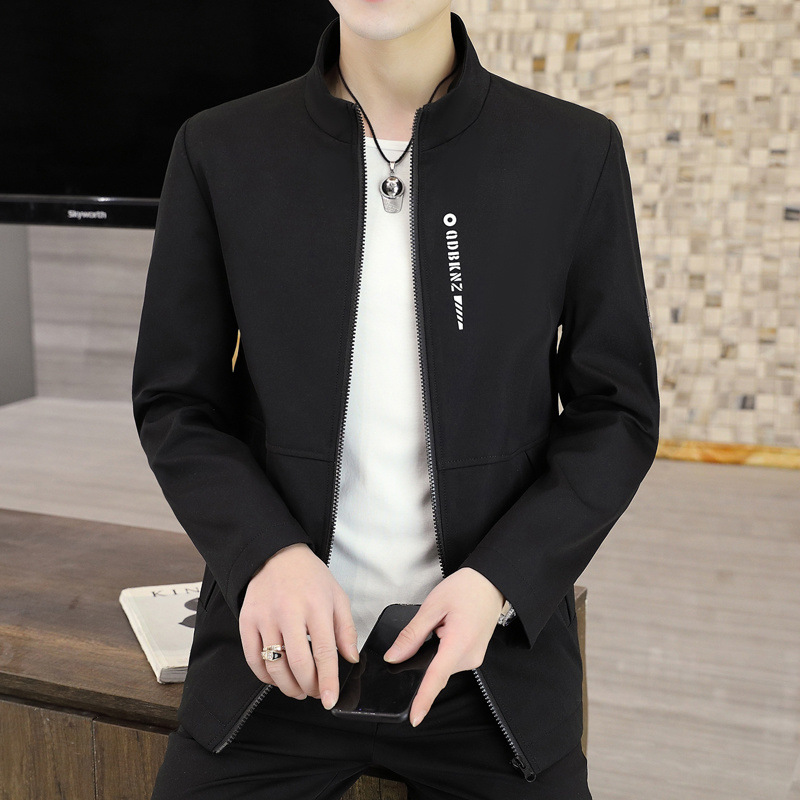 새로운 남성 자켓 봄과 가을 얇은 수직 칼라 재킷 캐주얼 올 매치 컬러 탑 청소년을위한 간단한 남성 자켓