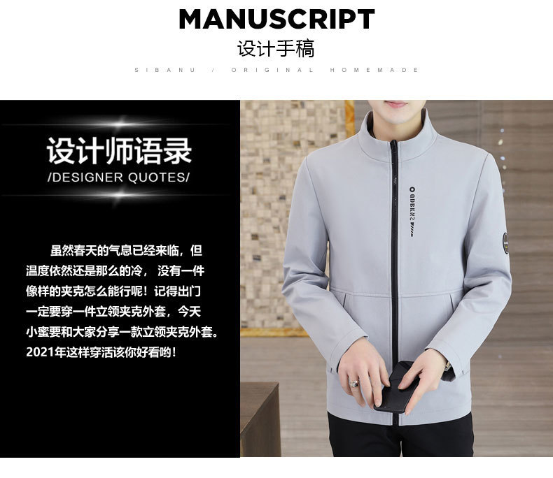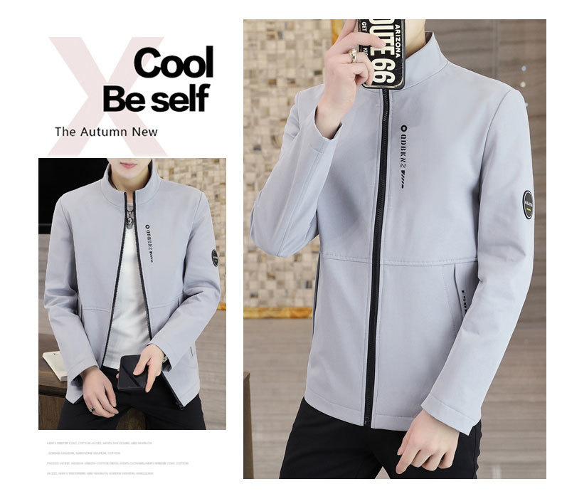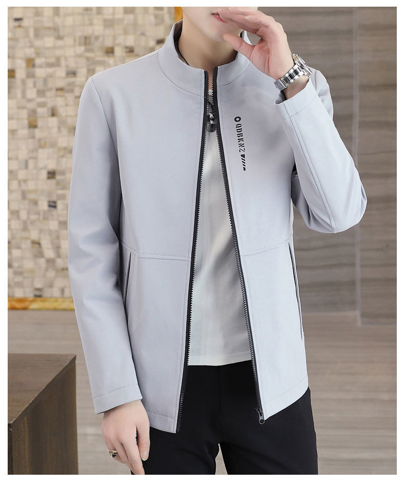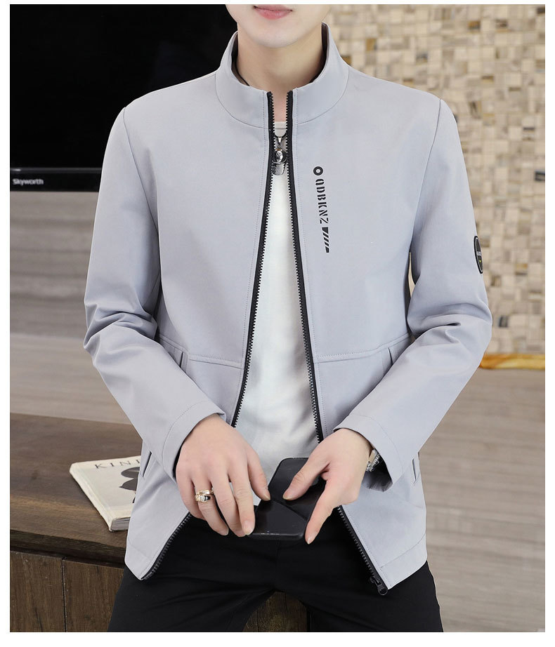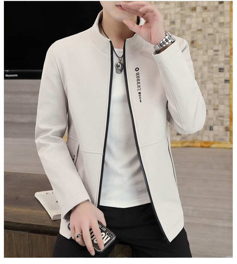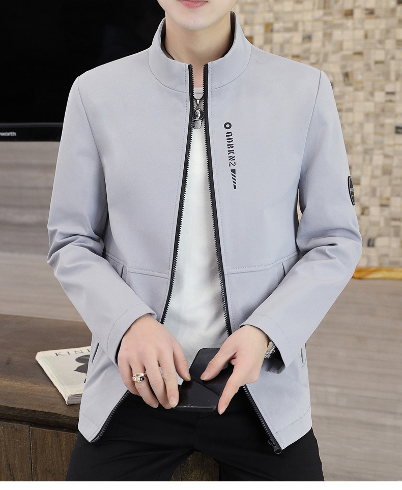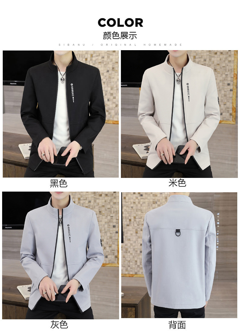 새로운 남성 자켓 봄과 가을 얇은 수직 칼라 재킷 캐주얼 올 매치 컬러 탑 청소년을위한 간단한 남성 자켓