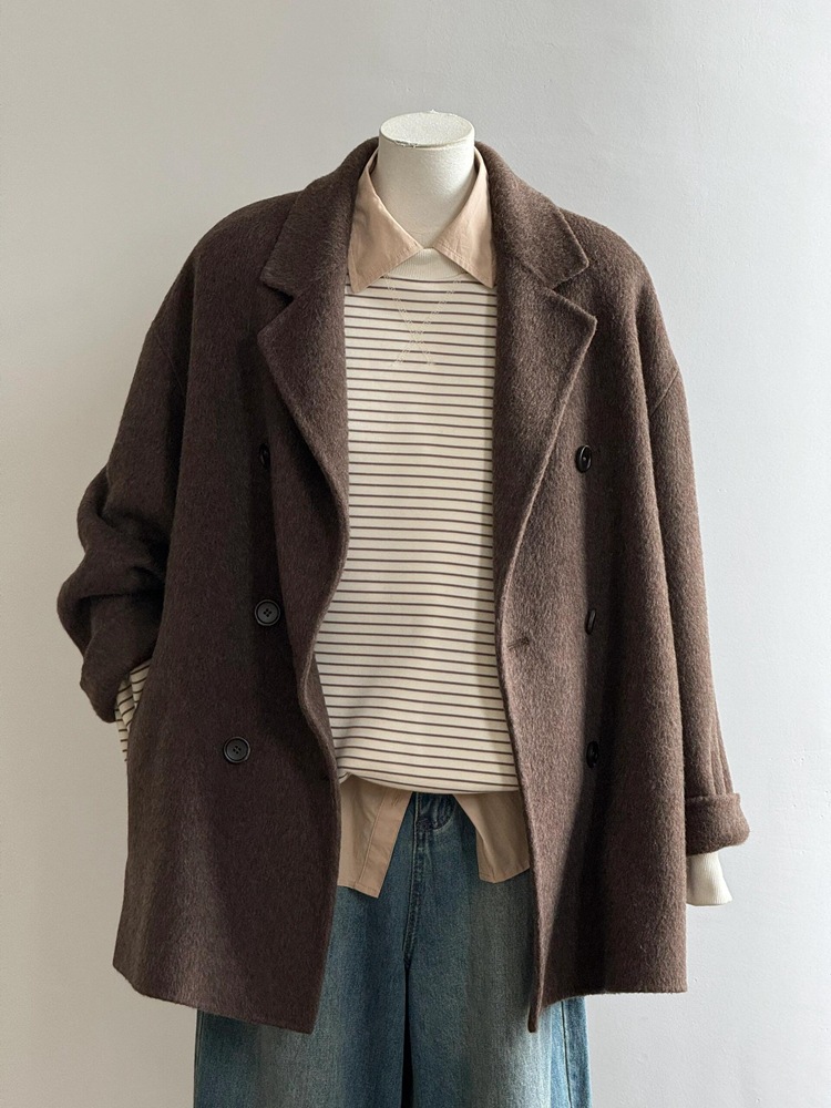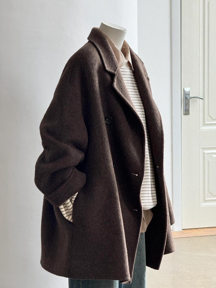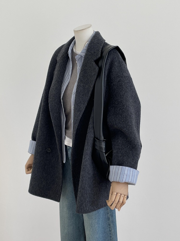 동대문 고급 한국식 양면 양면 양모 코트 여자 긴 2024 신가을 느슨한 양모 코트