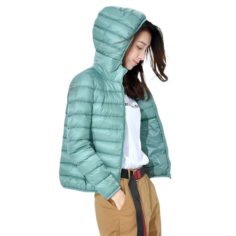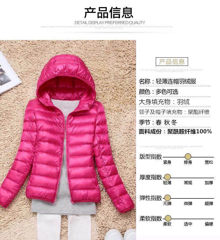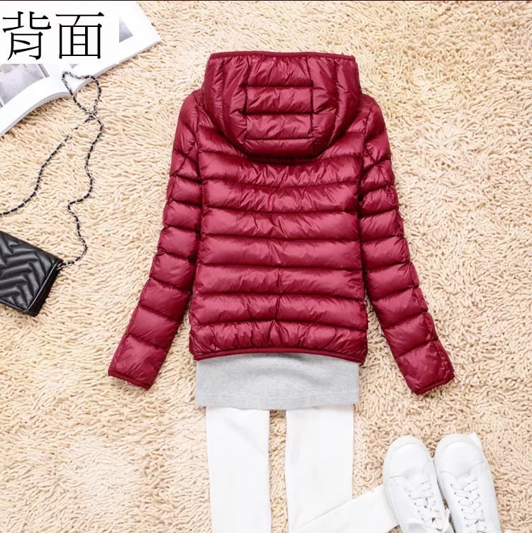 230 진 착용 다운 재킷 여성 경량 짧은 모자 가을/겨울 새로운 한국 흰 오리 다운 따뜻한 단색 재킷