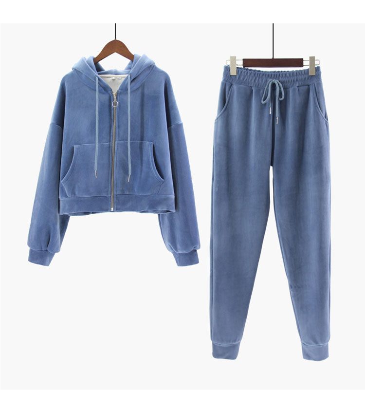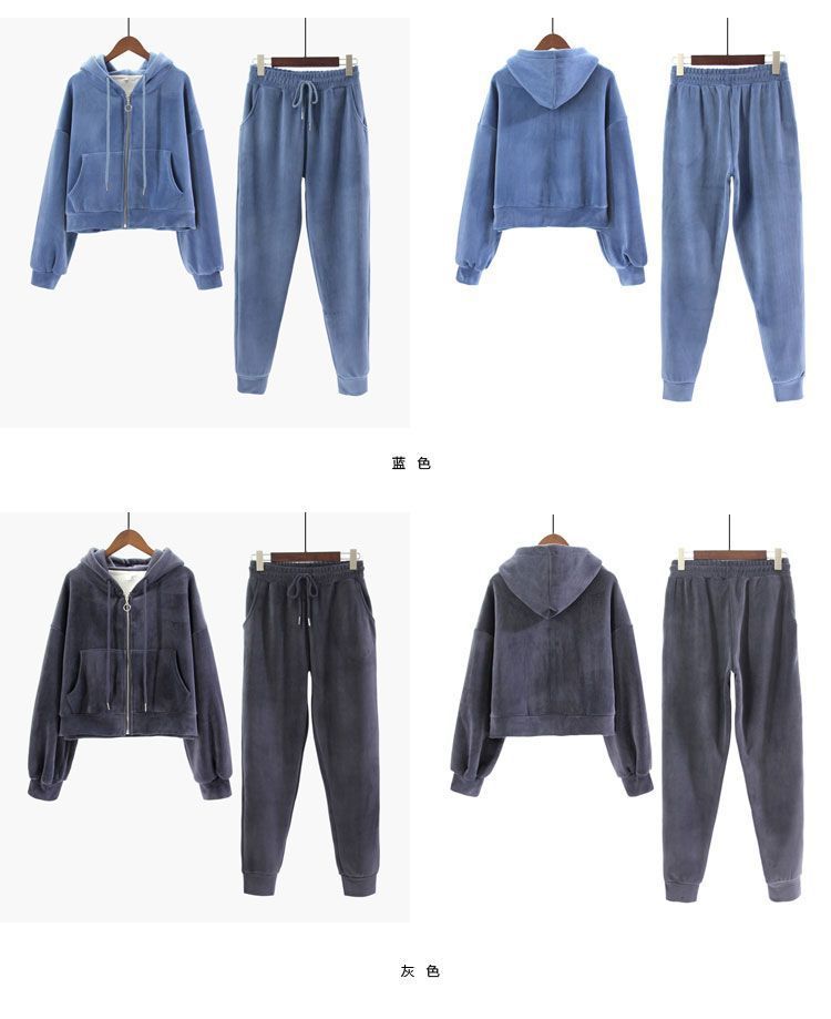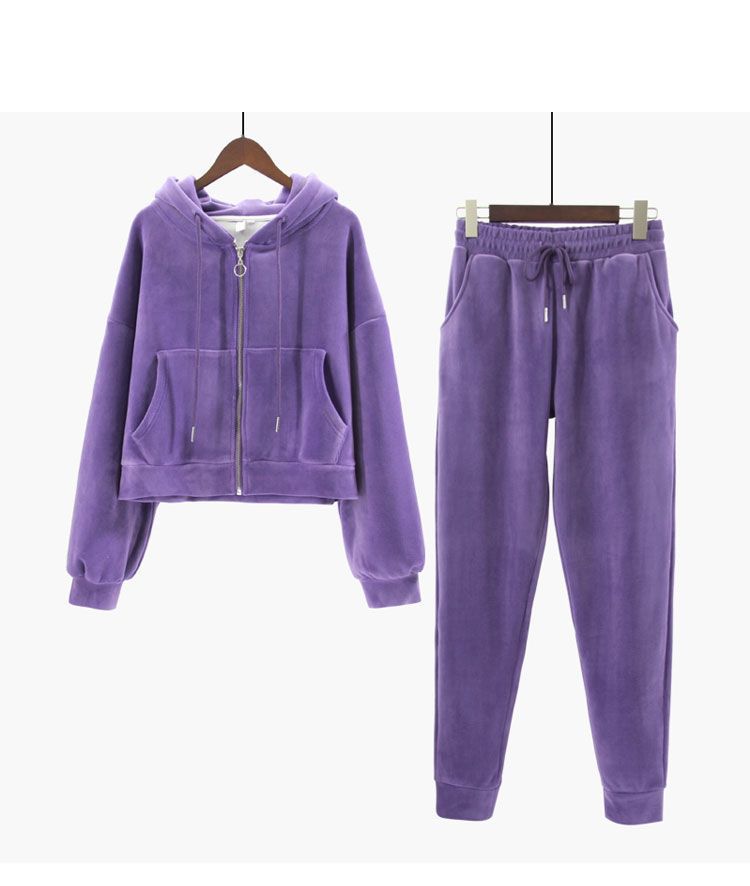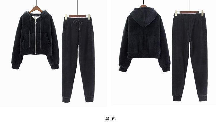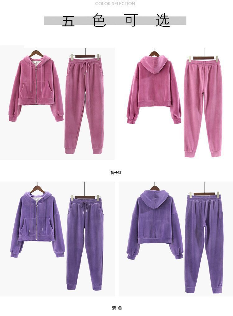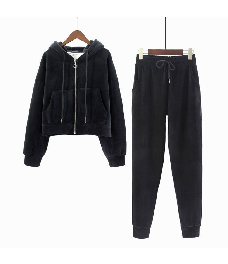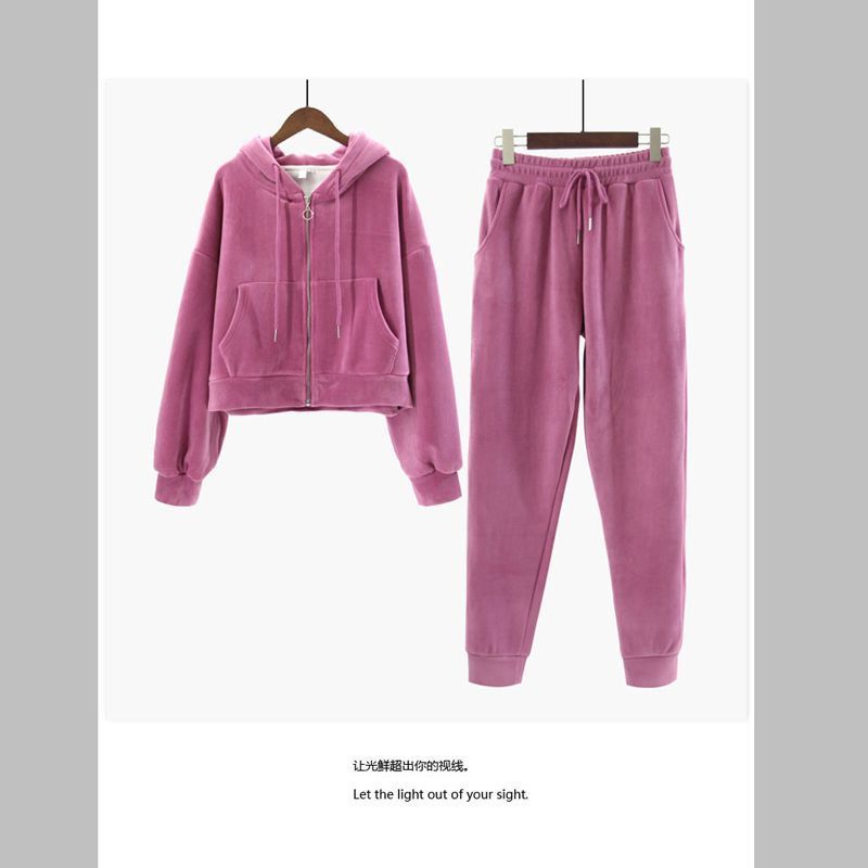골든 벨벳 후드 재킷 여자 세트 2024 기모 두꺼운 레저 스포츠 투피스 조수