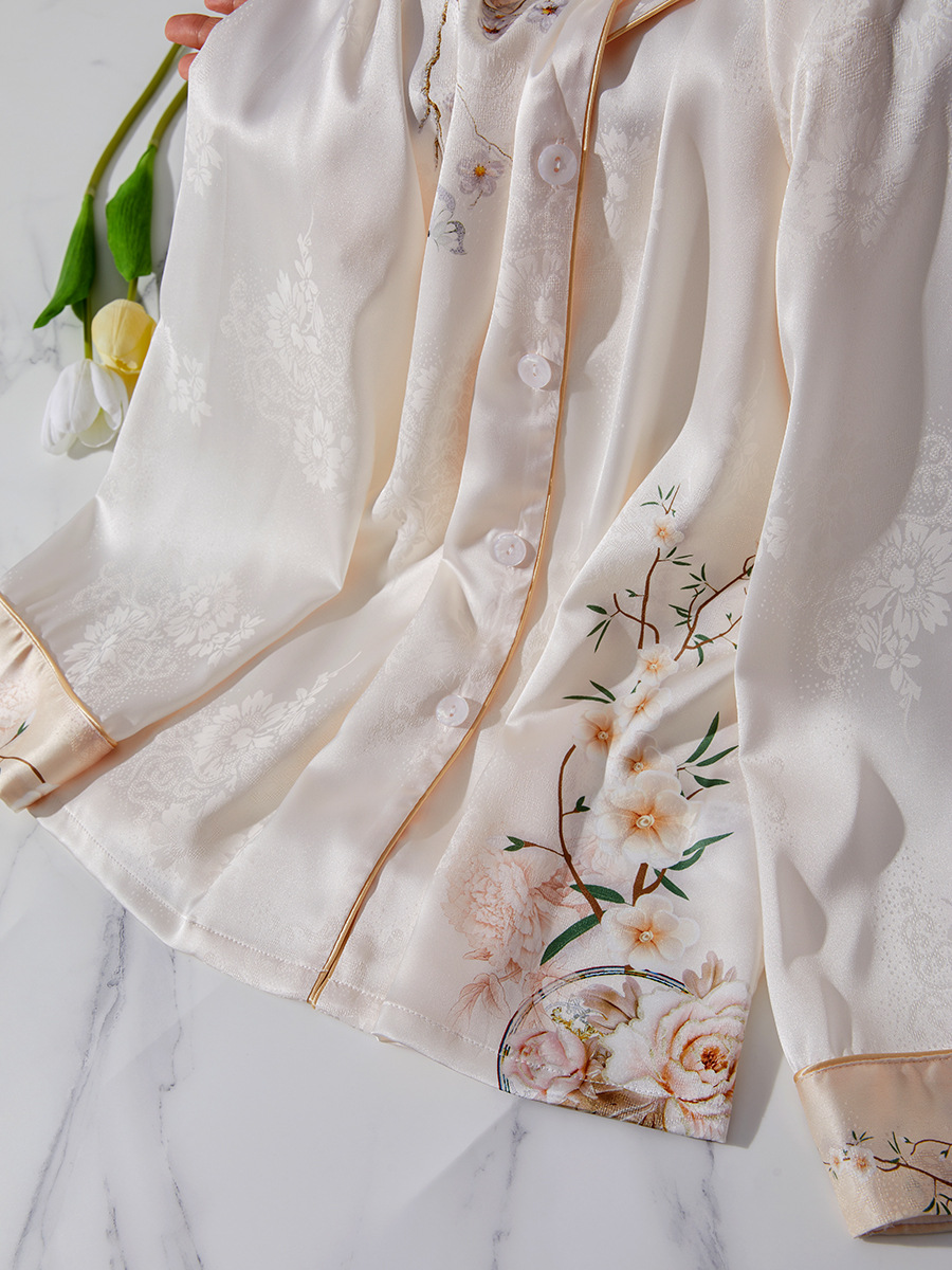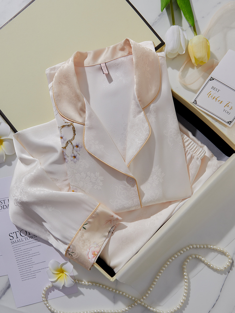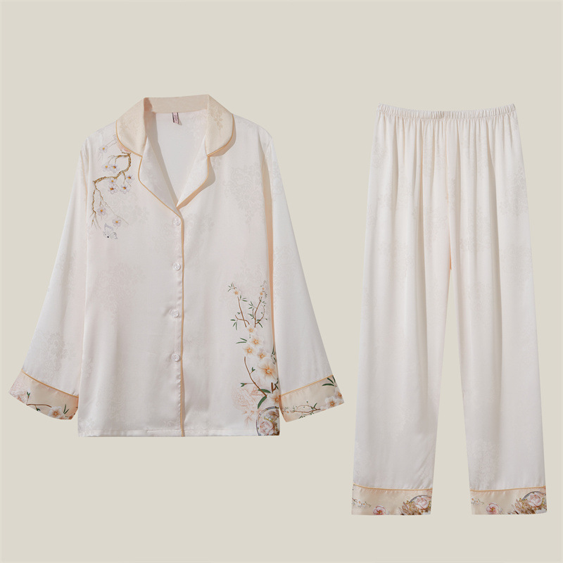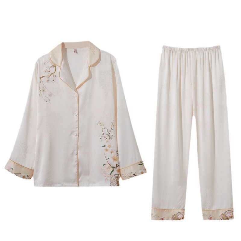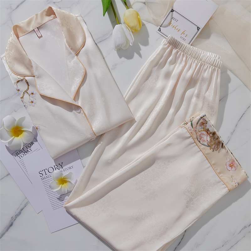 소스 공장 아이스 실크 잠옷 여성의 봄과 가을 하이 엔드 시뮬레이션 실크 홈 옷 투피스 2024 새로운 스타일