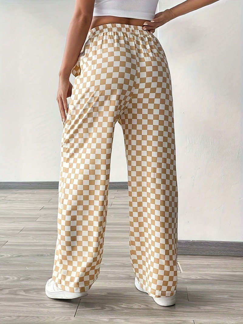 아마존 폭발성 유럽과 미국의 국경 간 여성 격자 무늬 인쇄 직선 다리 바지 새로운