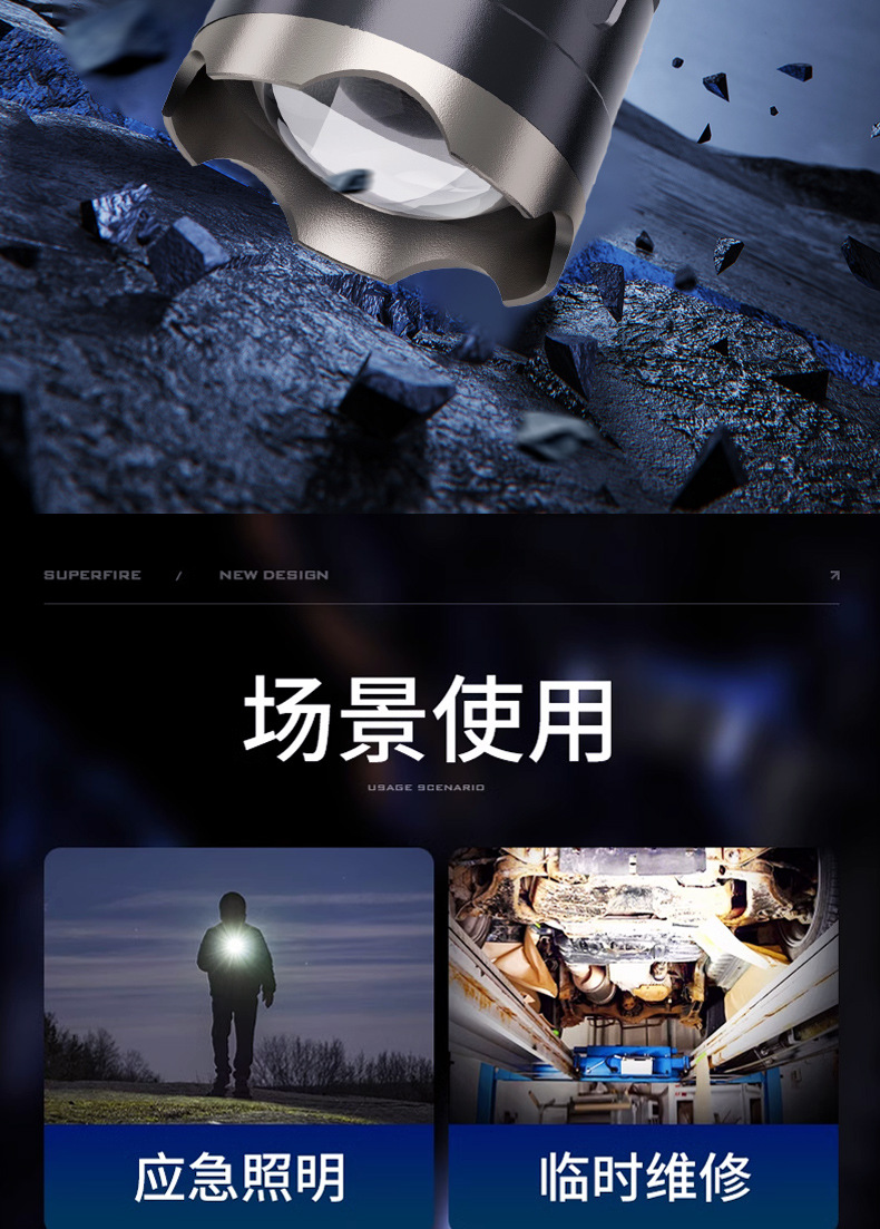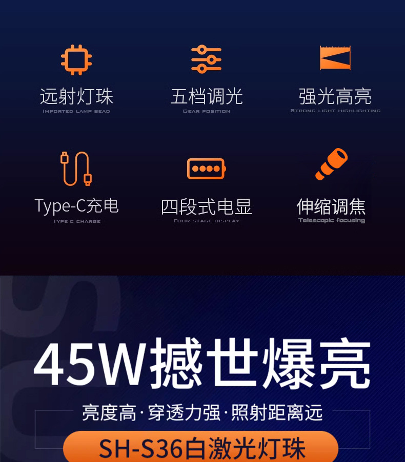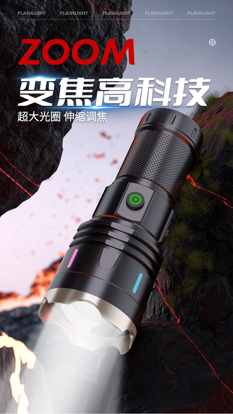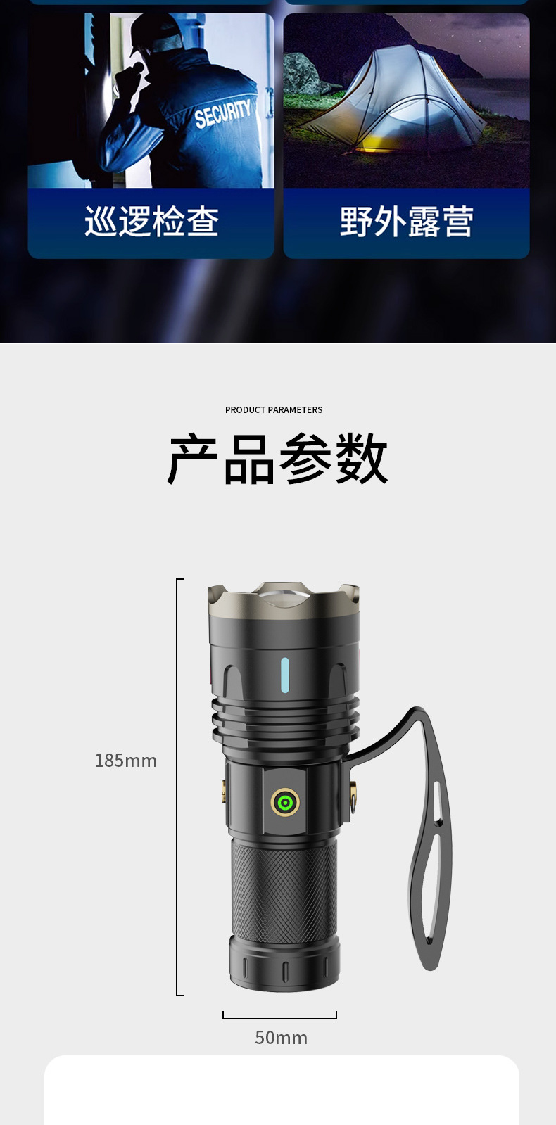 국경 간 새로운 야외 강한 빛 장거리 LED 탐조등 충전 긴 수명 조명 알루미늄 합금 휴대용 손전등