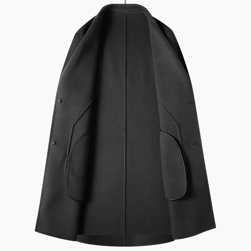 가을과 겨울 새로운 중간 길이의 양모 코트 남자 하이 엔드 원피스 칼라 솔리드 컬러 올 매치 양면 남자 코트