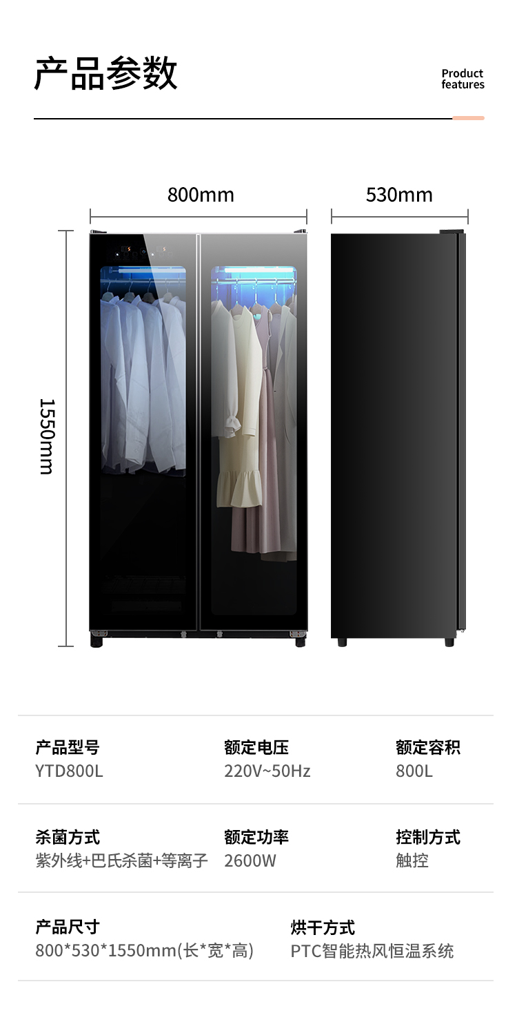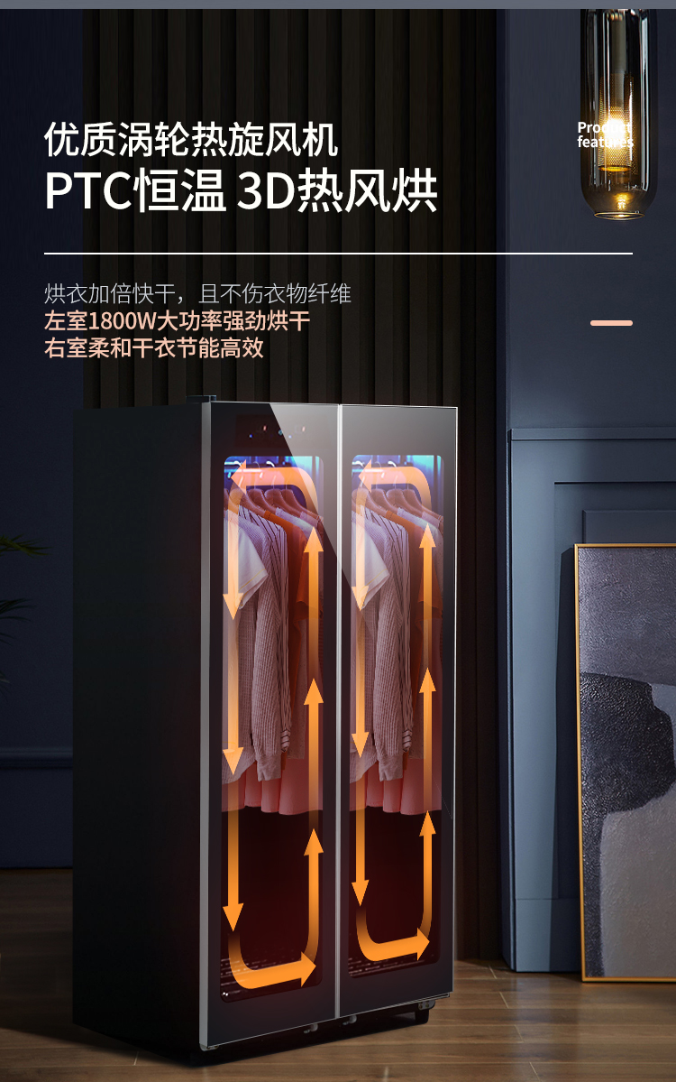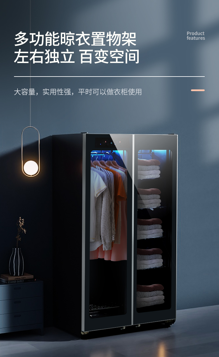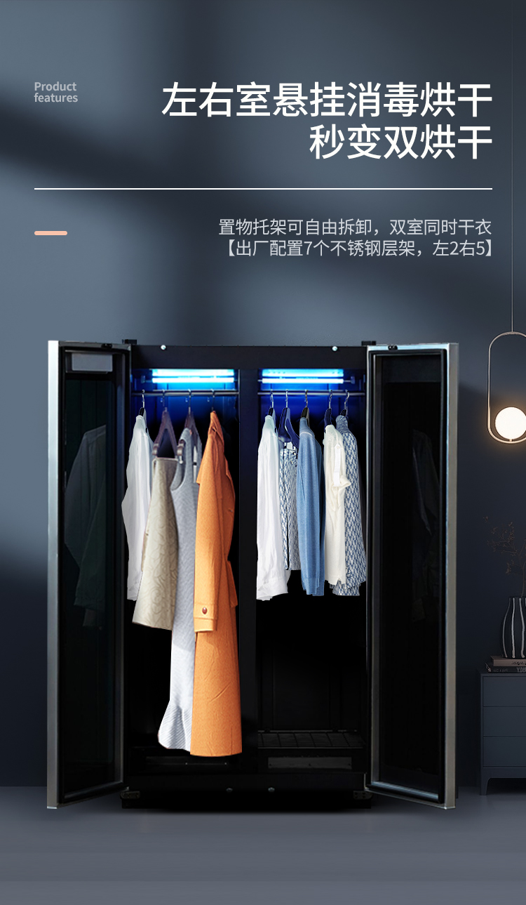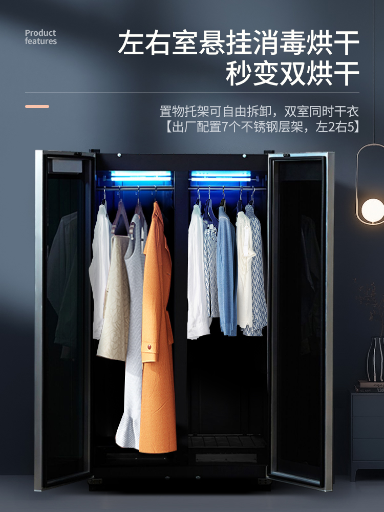 800L 양문 독립 하위 제어 [왼쪽 챔버 고속 건조/이중 소독 + 오른쪽 챔버 부드러운 가열 건조 + 이중 소독 + 플라즈마 냄새 정화]