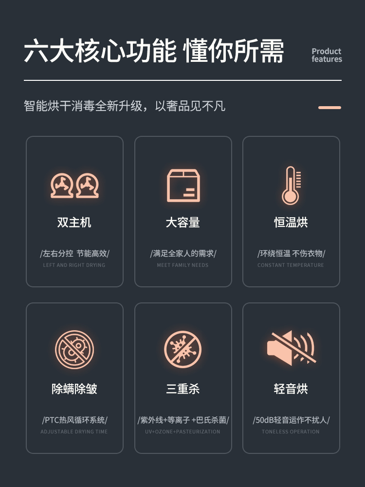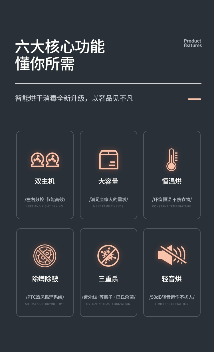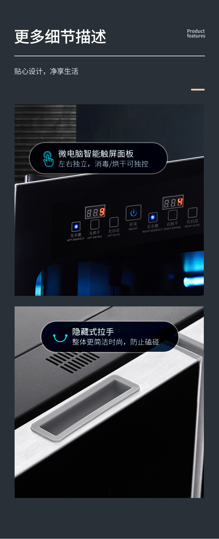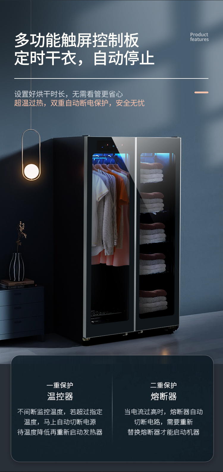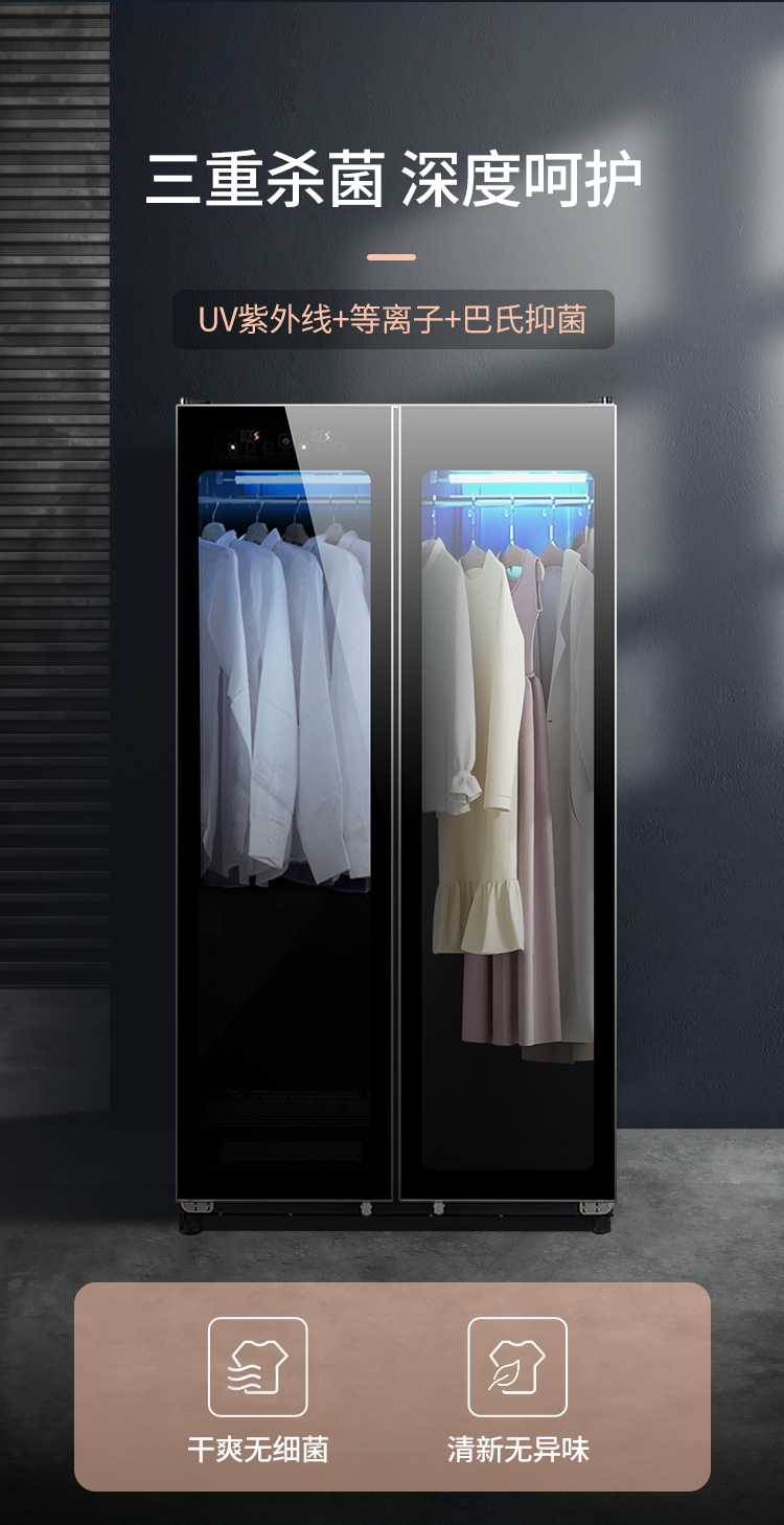 800L 양문 독립 하위 제어 [왼쪽 챔버 고속 건조/이중 소독 + 오른쪽 챔버 부드러운 가열 건조 + 이중 소독 + 플라즈마 냄새 정화]