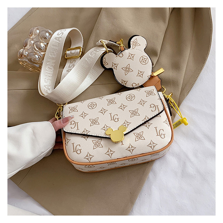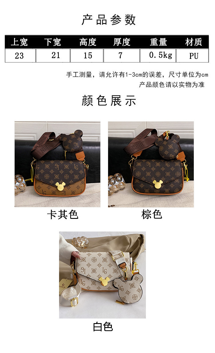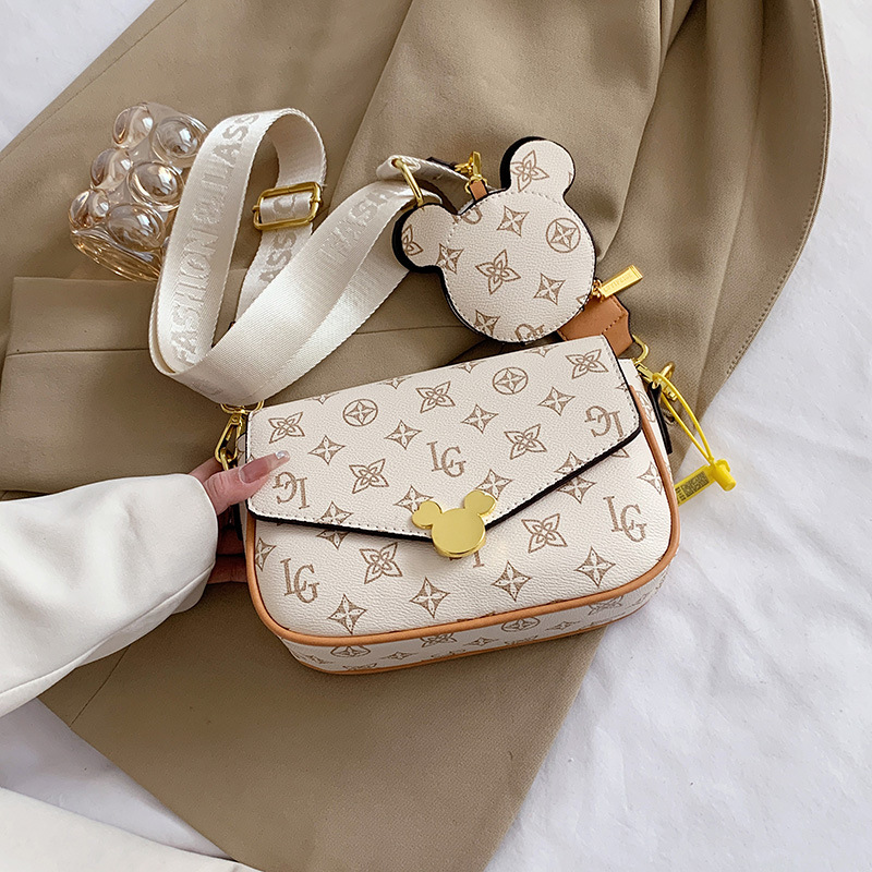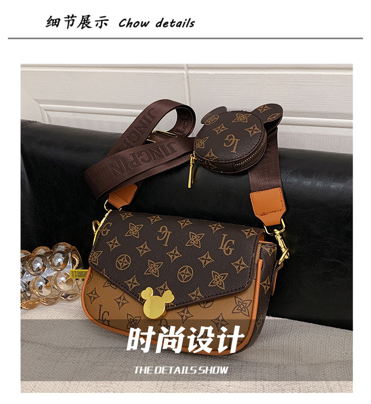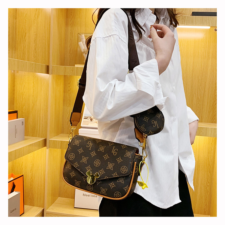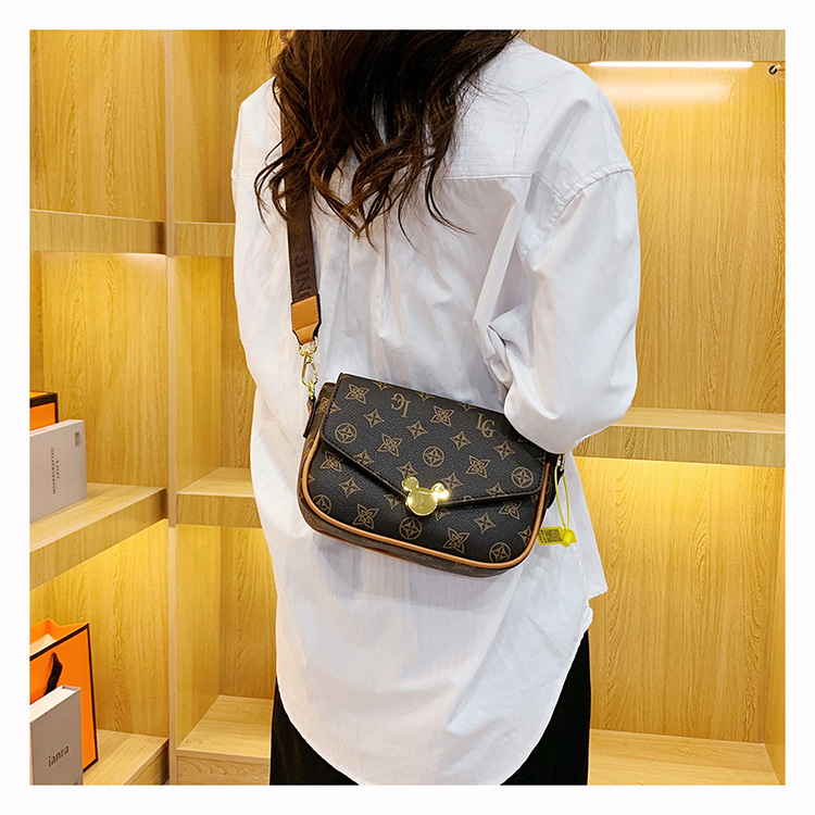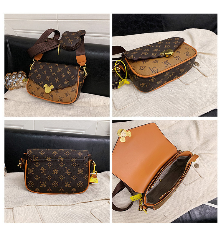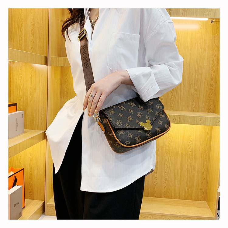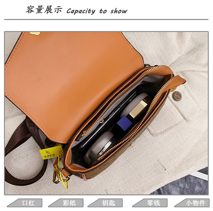 가방 여성의 2024 새로운 트렌디 한 레트로 패션 어깨 크로스 바디 백 인쇄 인터넷 인기있는 와이드 어깨 스트랩 동전 지갑 작은 광장 가방