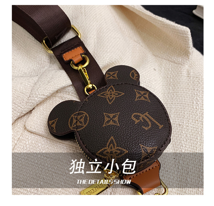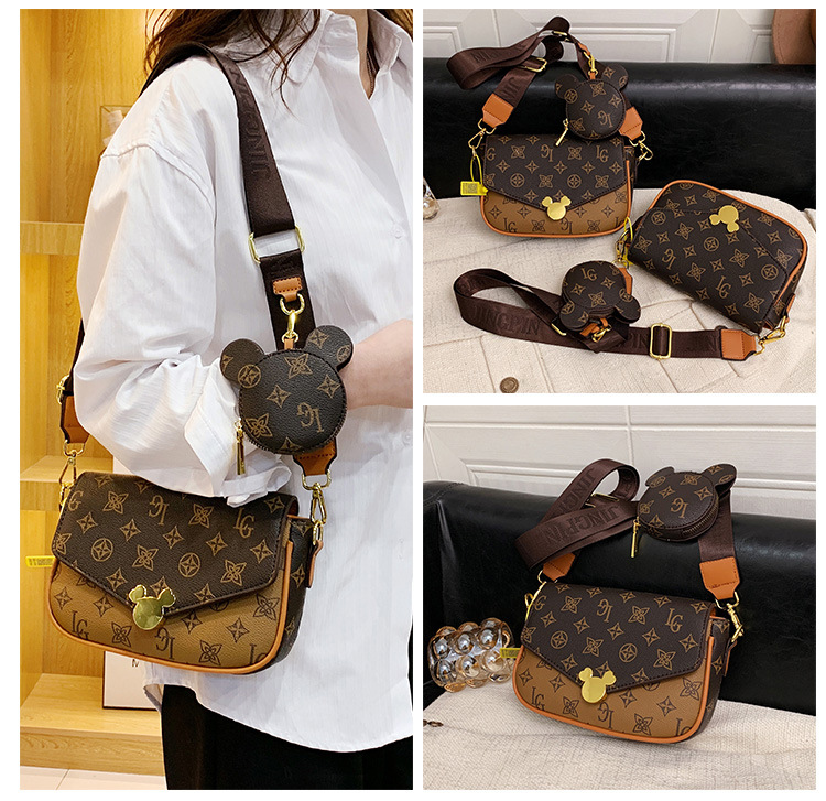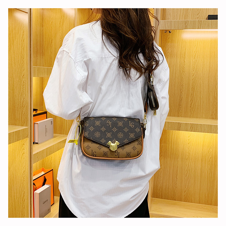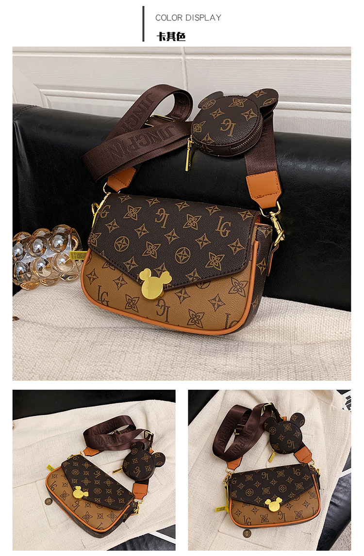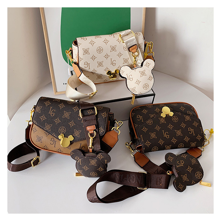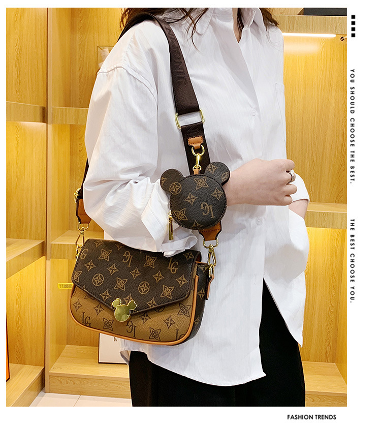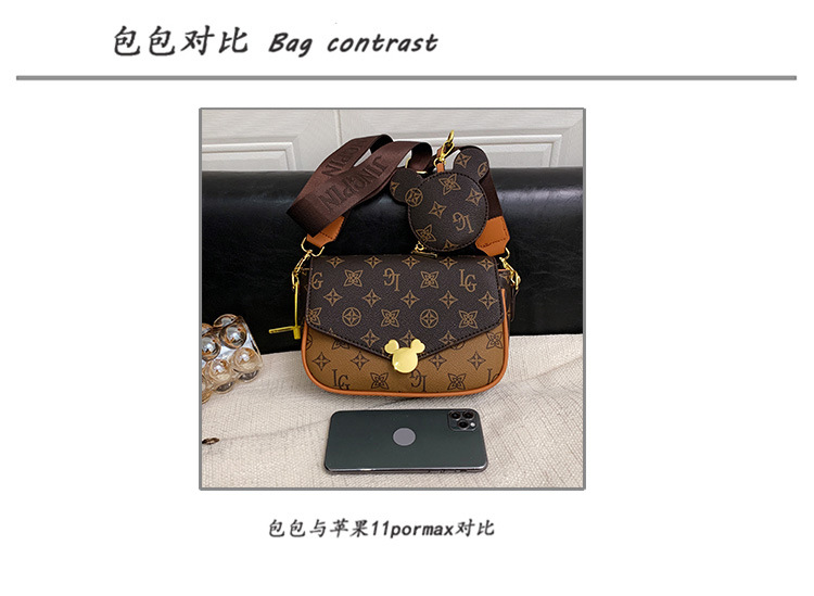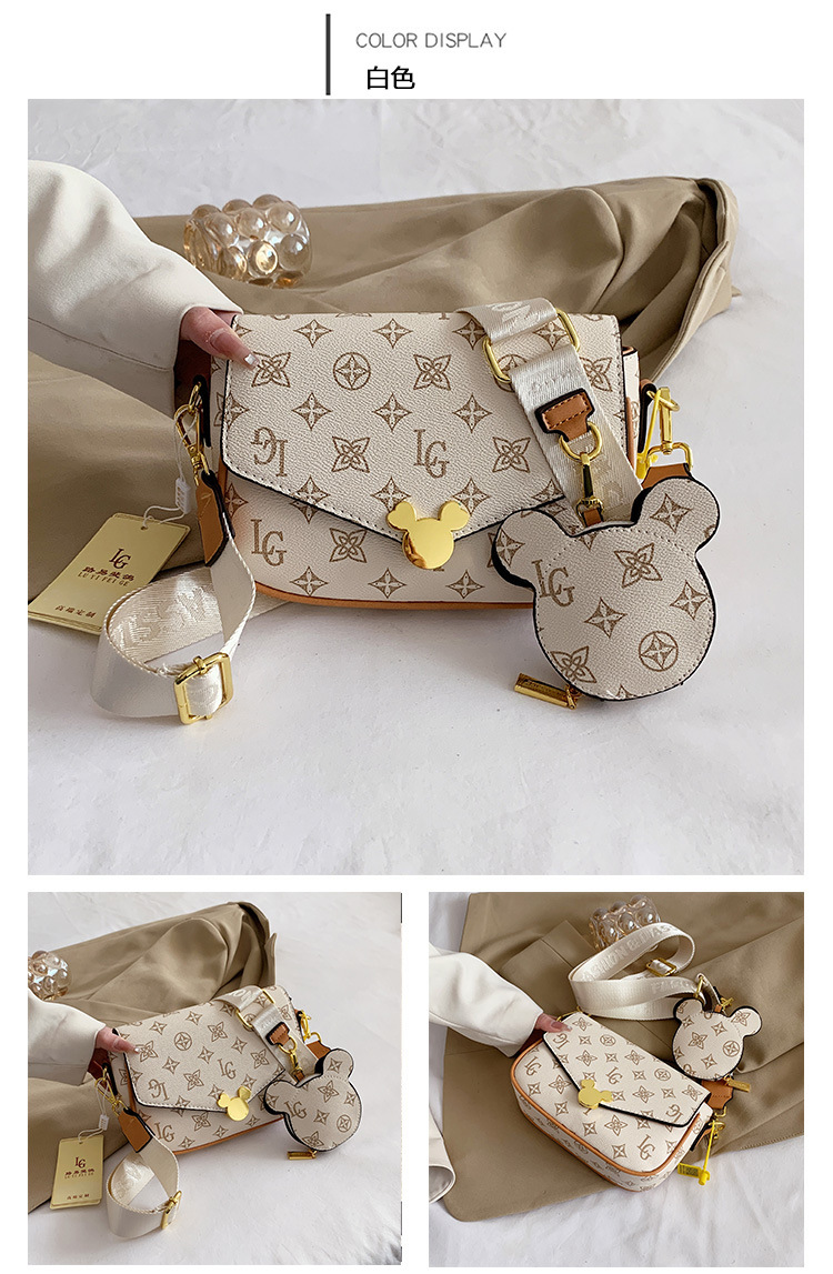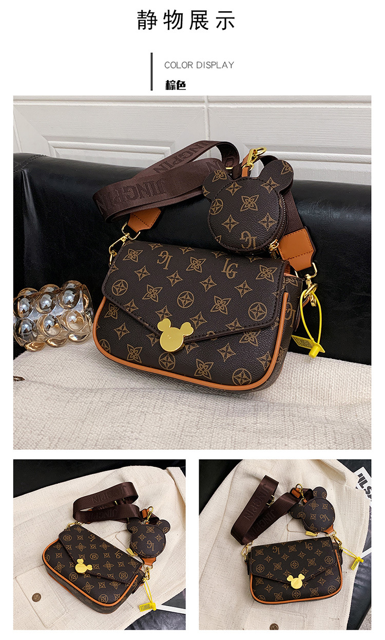 가방 여성의 2024 새로운 트렌디 한 레트로 패션 어깨 크로스 바디 백 인쇄 인터넷 인기있는 와이드 어깨 스트랩 동전 지갑 작은 광장 가방