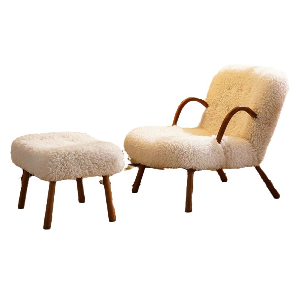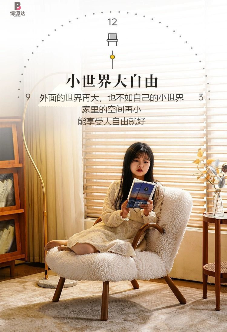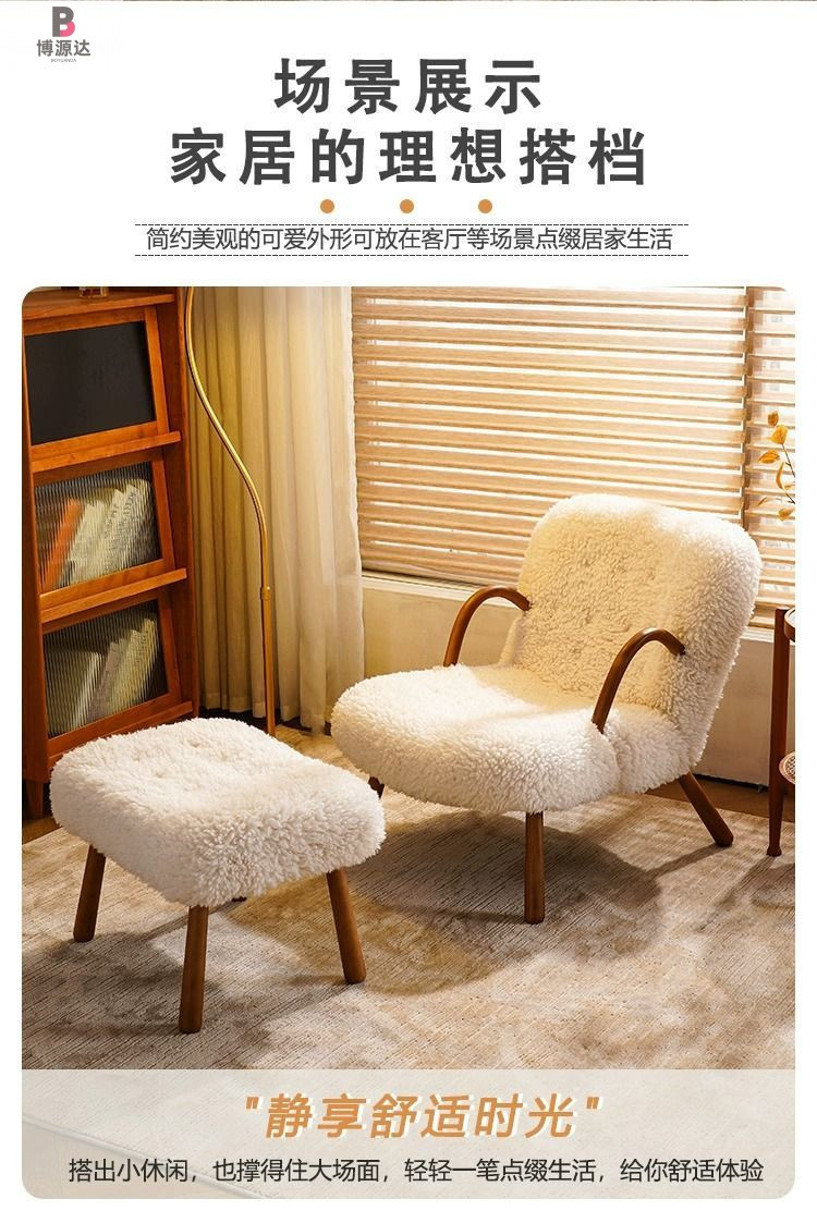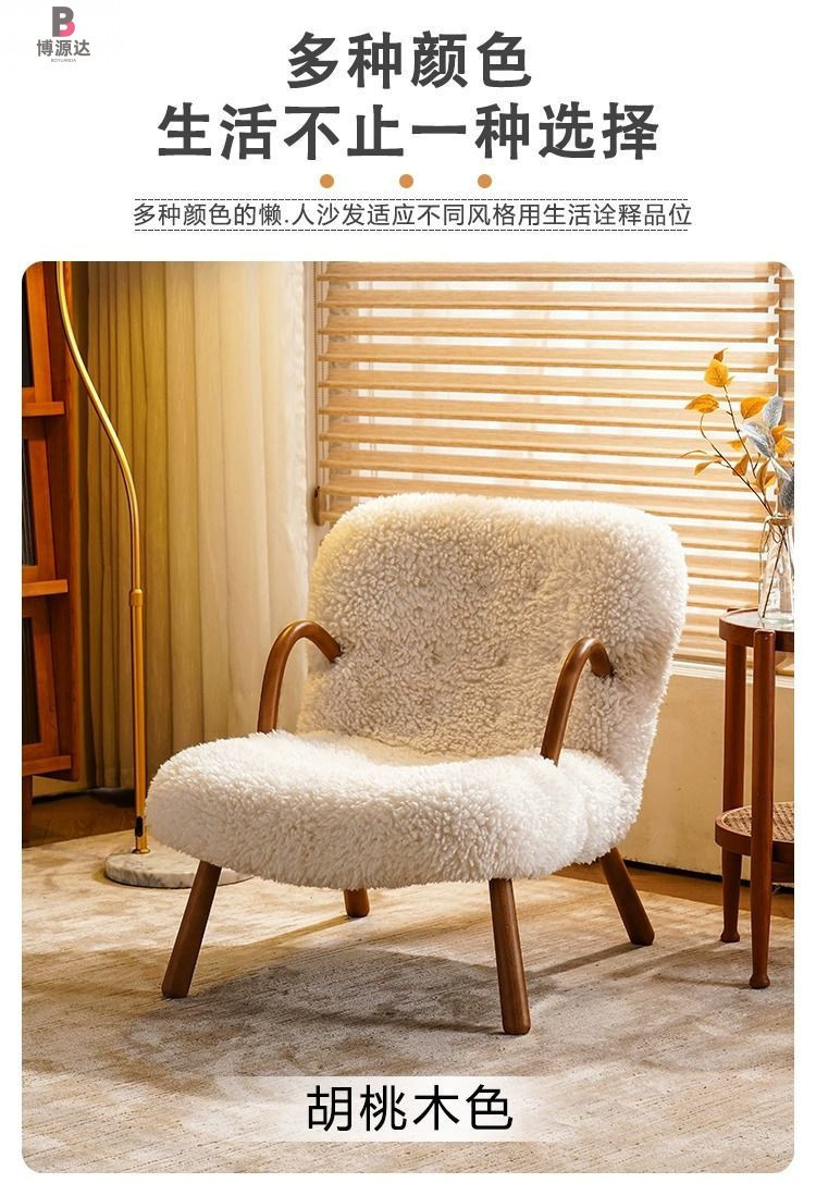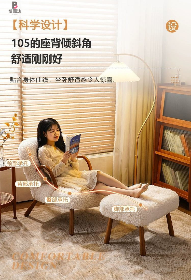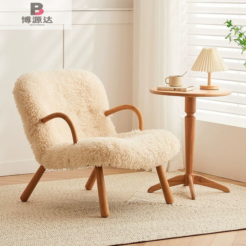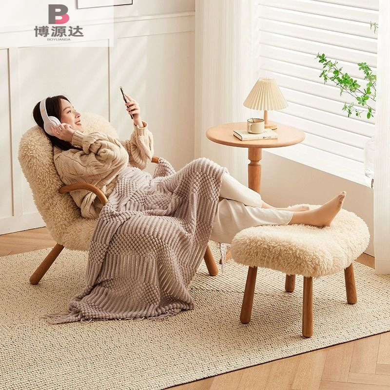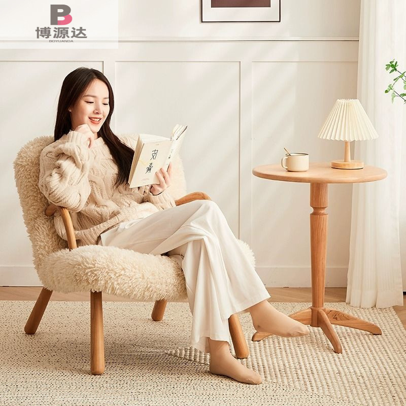 간단한 게으른 흔들 의자 작은 아파트 발코니 단단한 나무 사이버 유명한 양고기 양모 단일 흔들 의자 홈 캐주얼 리클리너