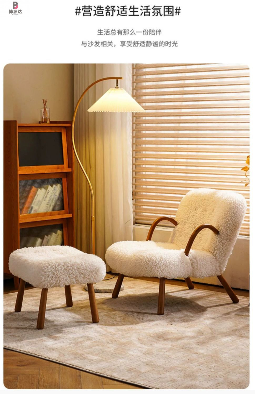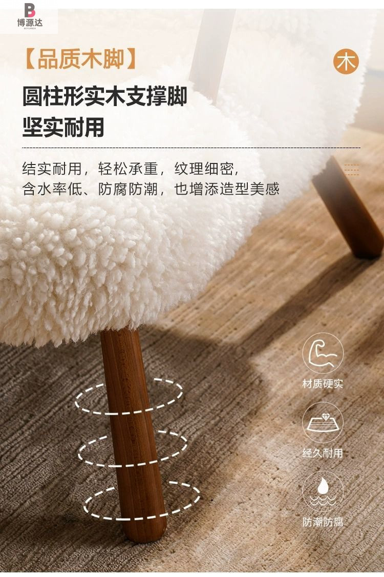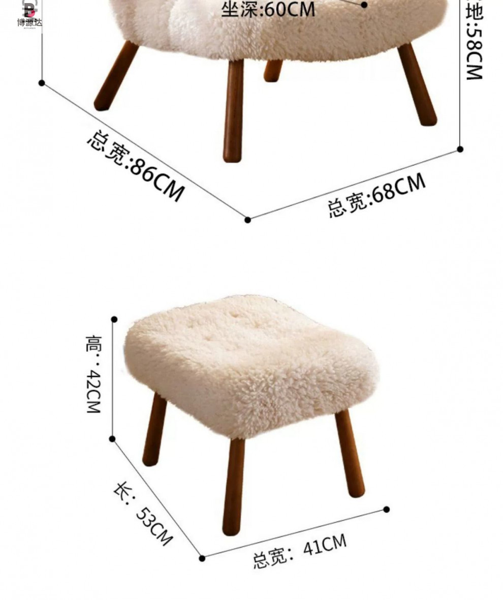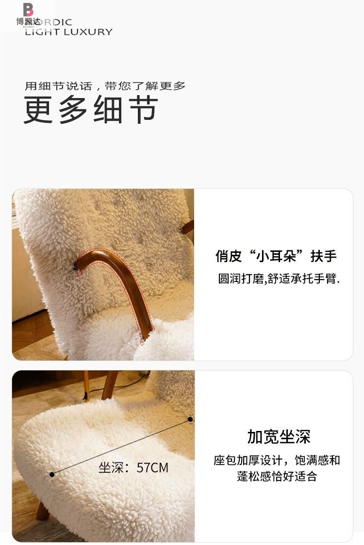 [다크월넛 손잡이] 오프화이트 양털-싱글체어 [탈부착 및 세탁 가능]