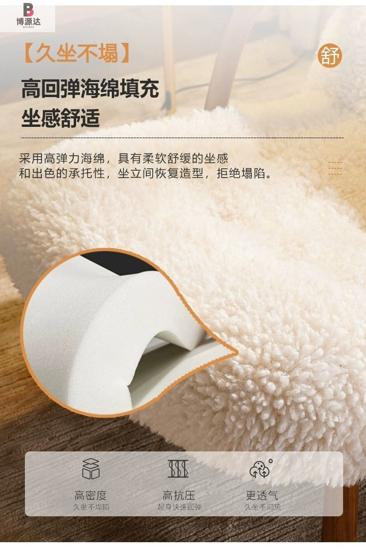 [체리색 손잡이] 오프화이트 양털-싱글체어 [탈부착 및 세탁 가능]