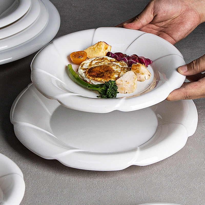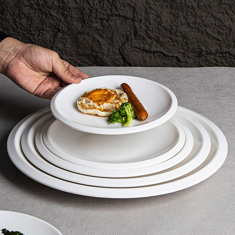 A8 도자기 같은 멜라민 식기 상용 디스크 뷔페 플레이트 호텔 아침 얕은 평판 레스토랑 볶음 접시 낙하 방지