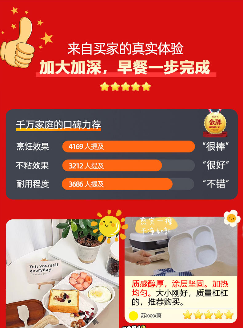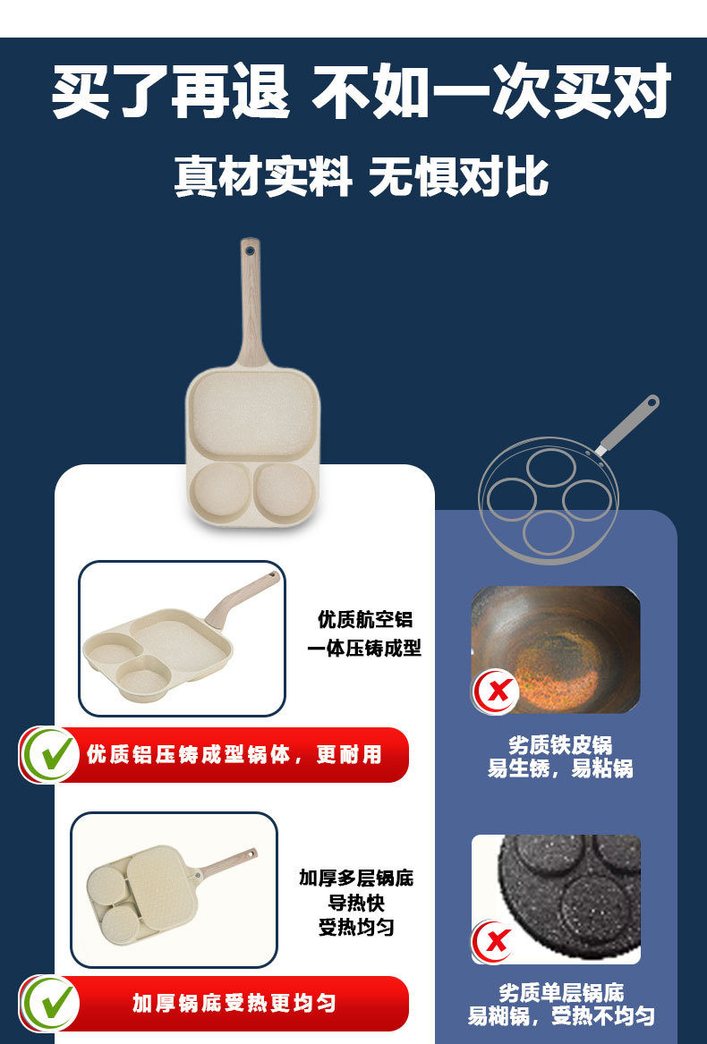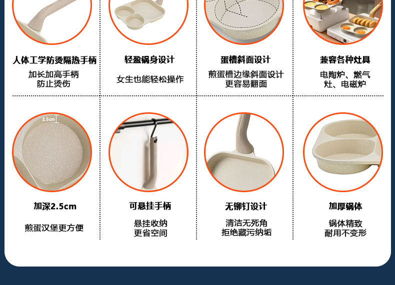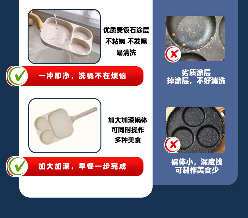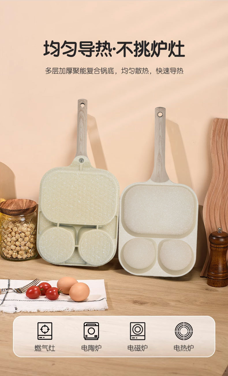 크로스보더 3-in-1 계란 버거 팬, 마이후스톤 계란 프라이팬, 이유식 조리용 소형 프라이팬, 논스틱 팬