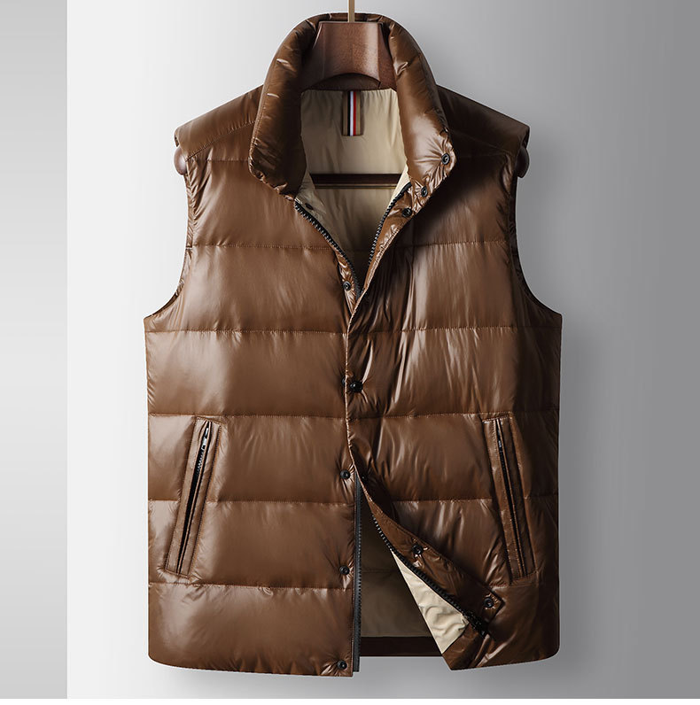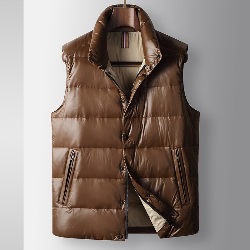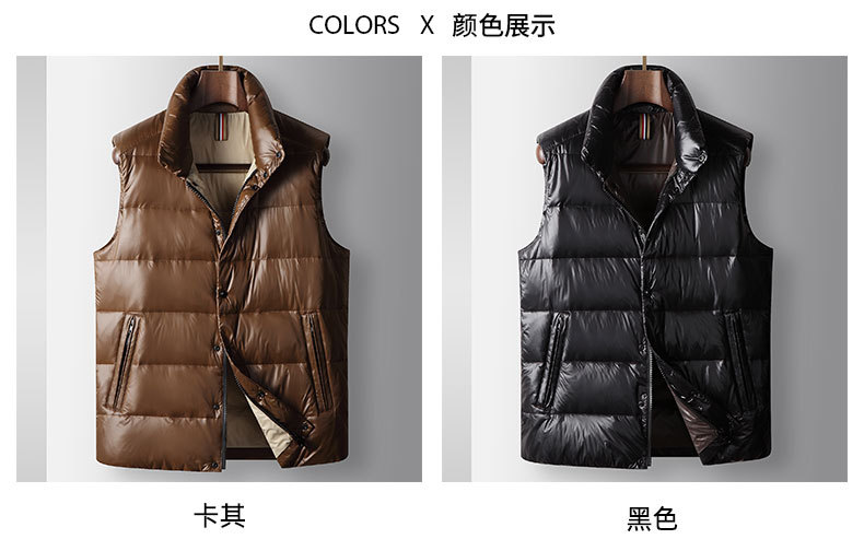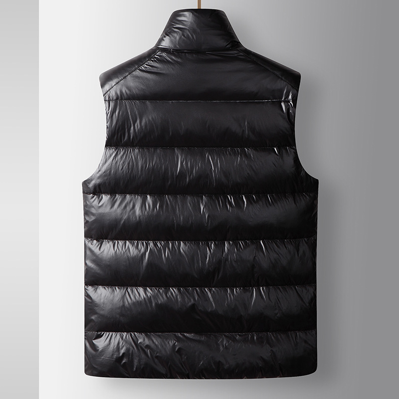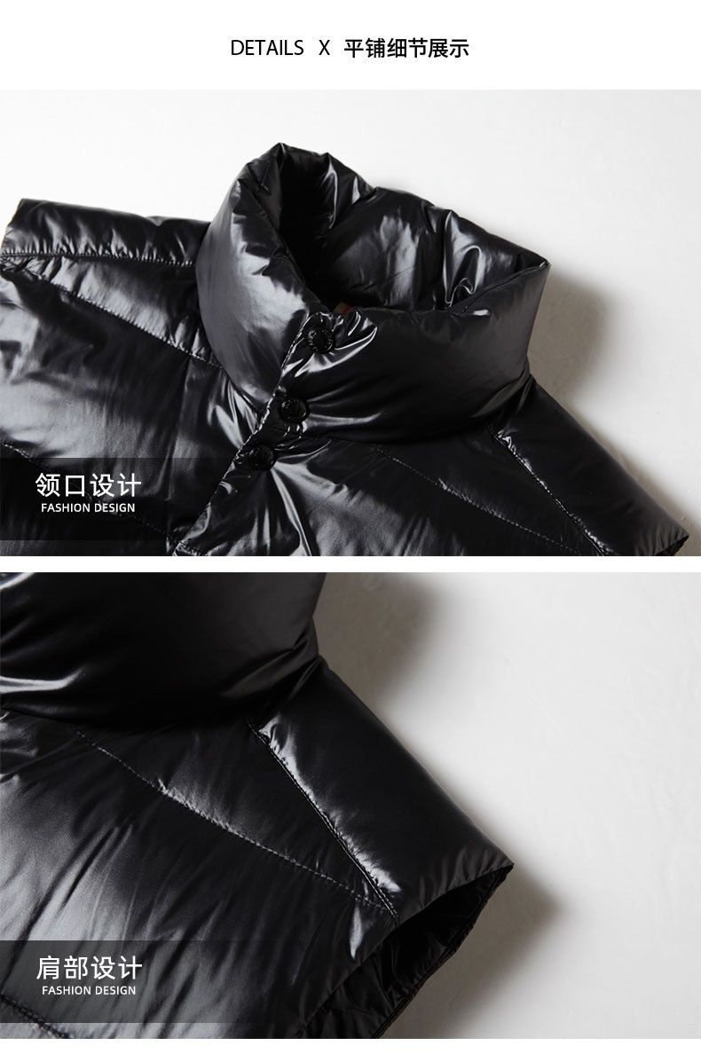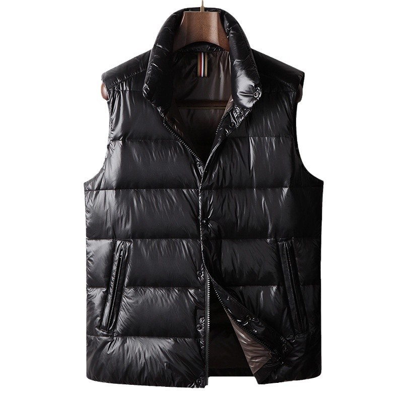 남자 다운 조끼 2024 가을과 겨울 블랙 골드 밝은 얼굴 칼라 오리 다운 따뜻한 청소년 캐주얼 두꺼운 재킷