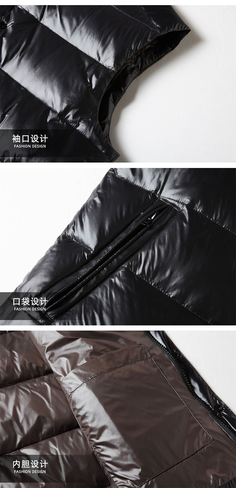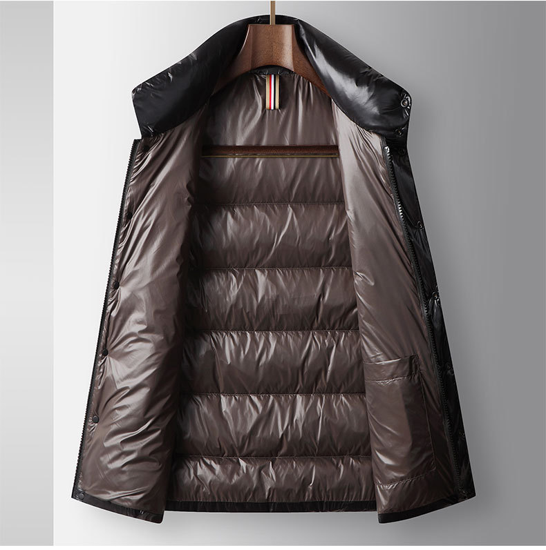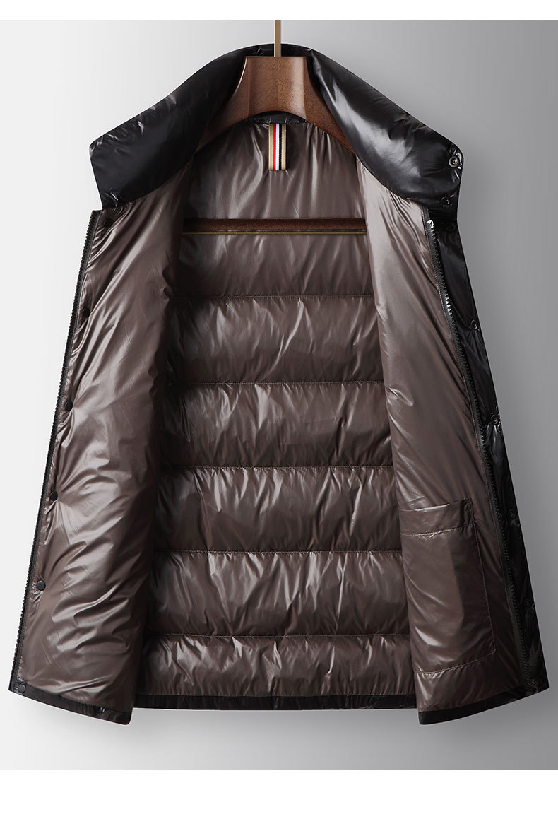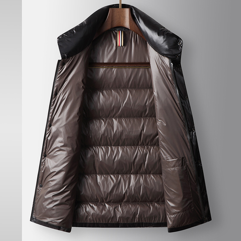 남자 다운 조끼 2024 가을과 겨울 블랙 골드 밝은 얼굴 칼라 오리 다운 따뜻한 청소년 캐주얼 두꺼운 재킷