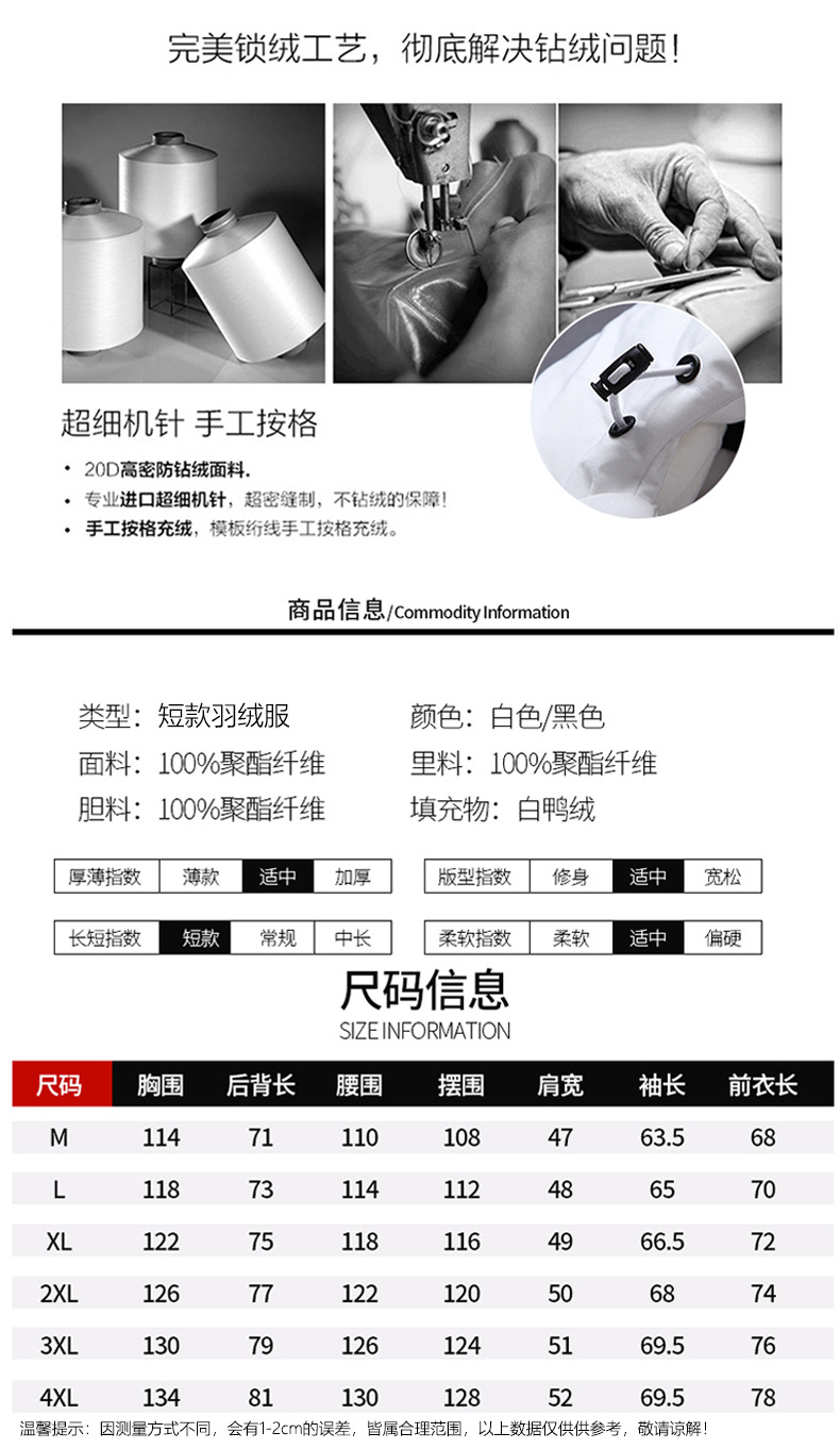 폭발 겨울 새 다운 재킷 짧은 청소년 후드 스티칭 따뜻한 코트 흰 오리 방한복