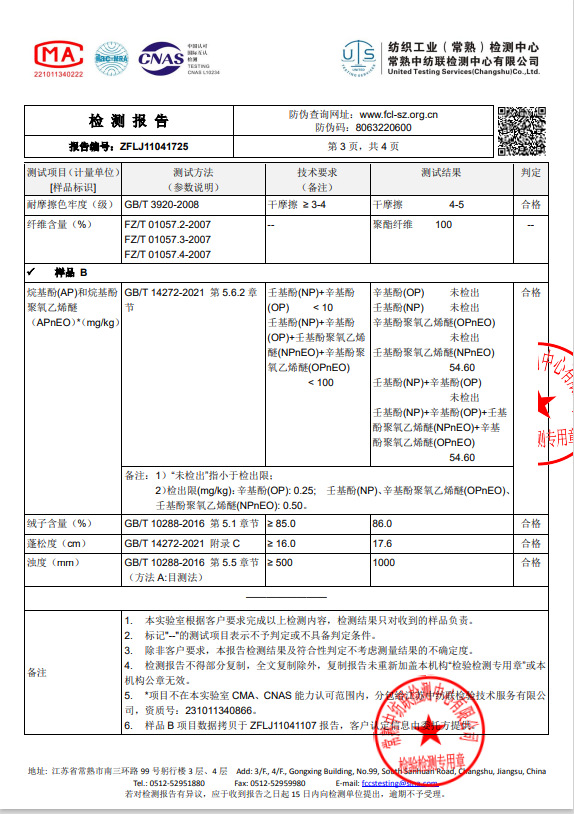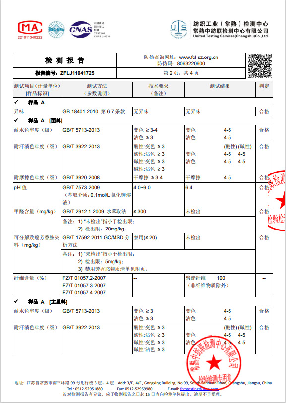 주요 원단 성분 함량