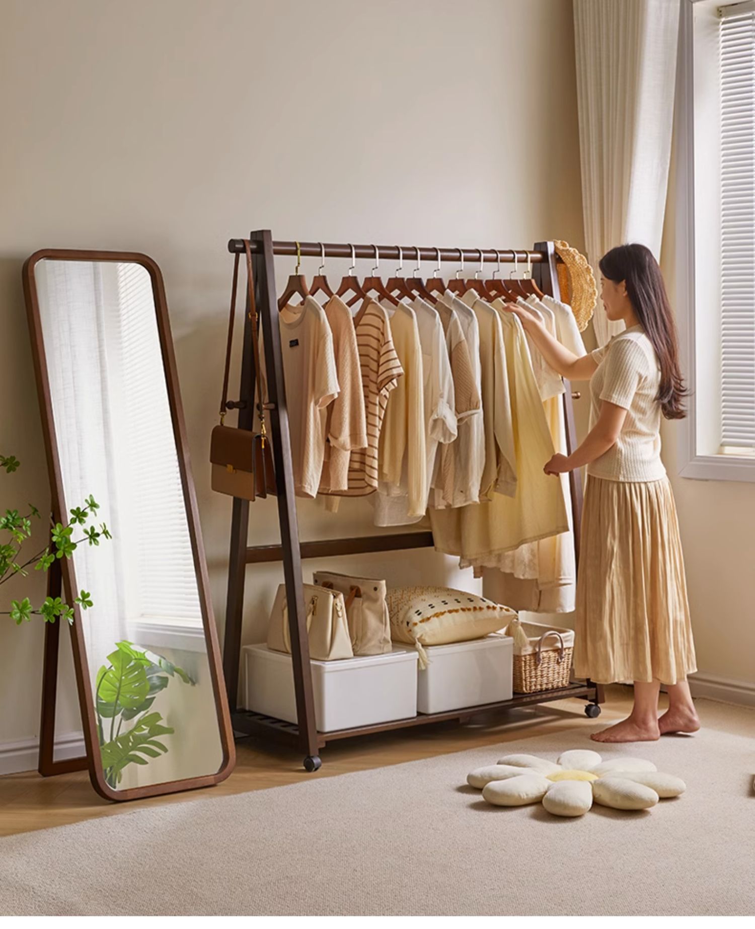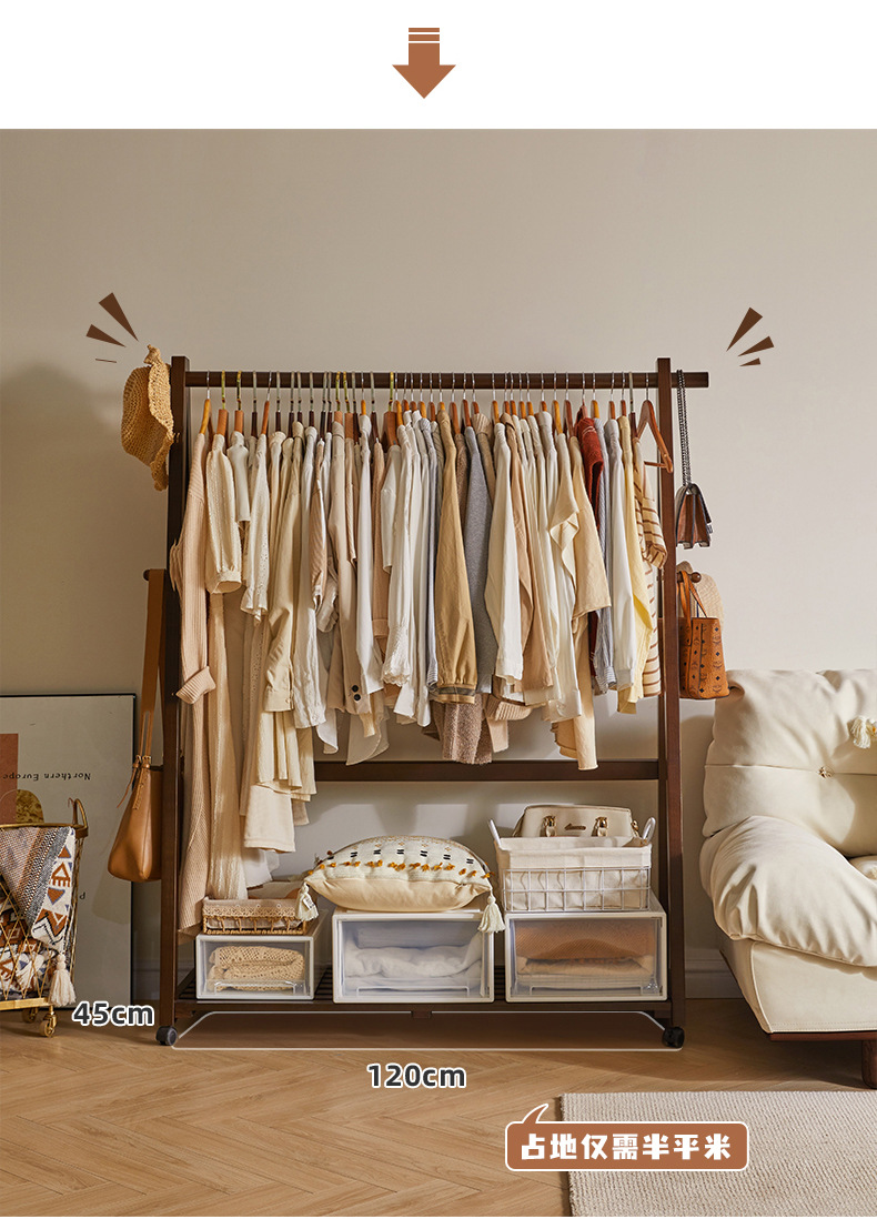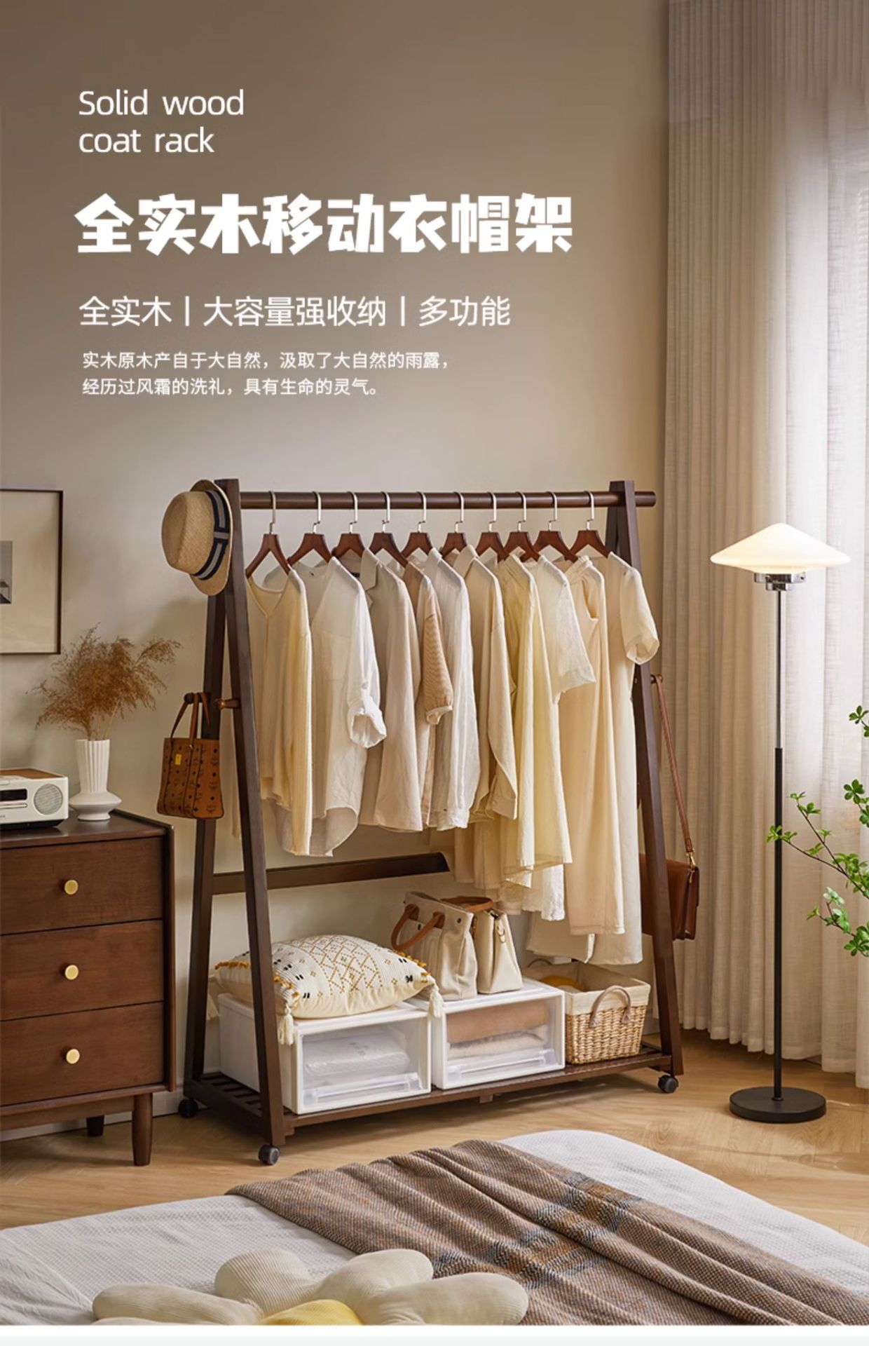 가정용 옷걸이, 원목 옷걸이, 바닥형 침실용 간편 옷걸이, 심플하고 모던한 옷걸이, 이동식 가정용 옷걸이