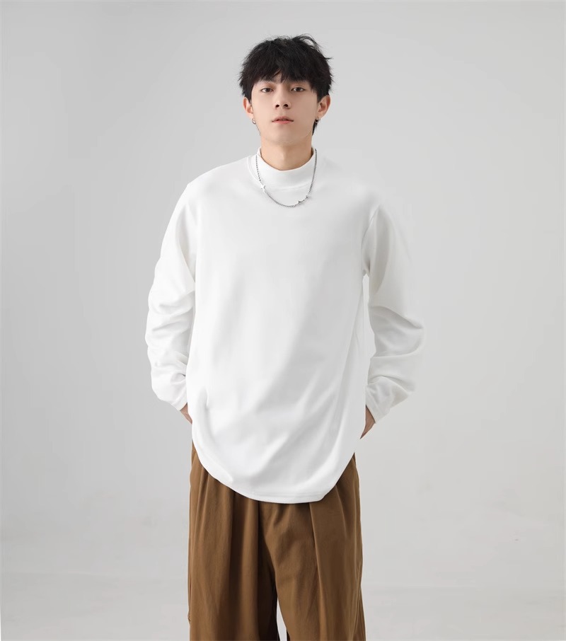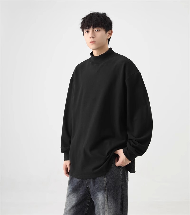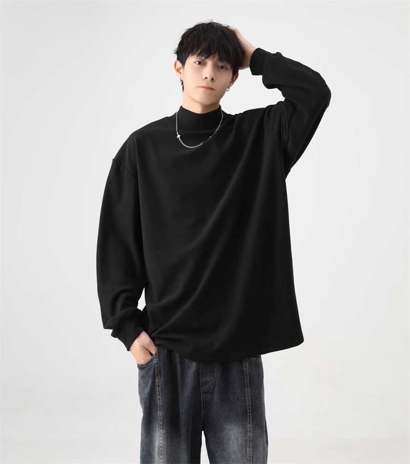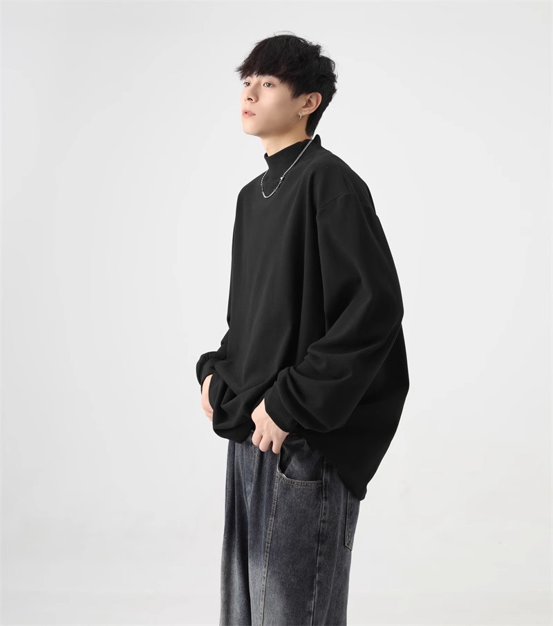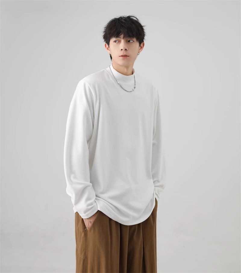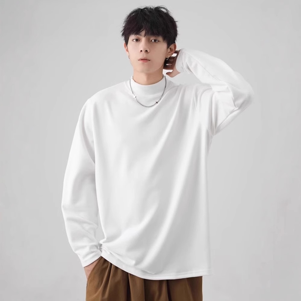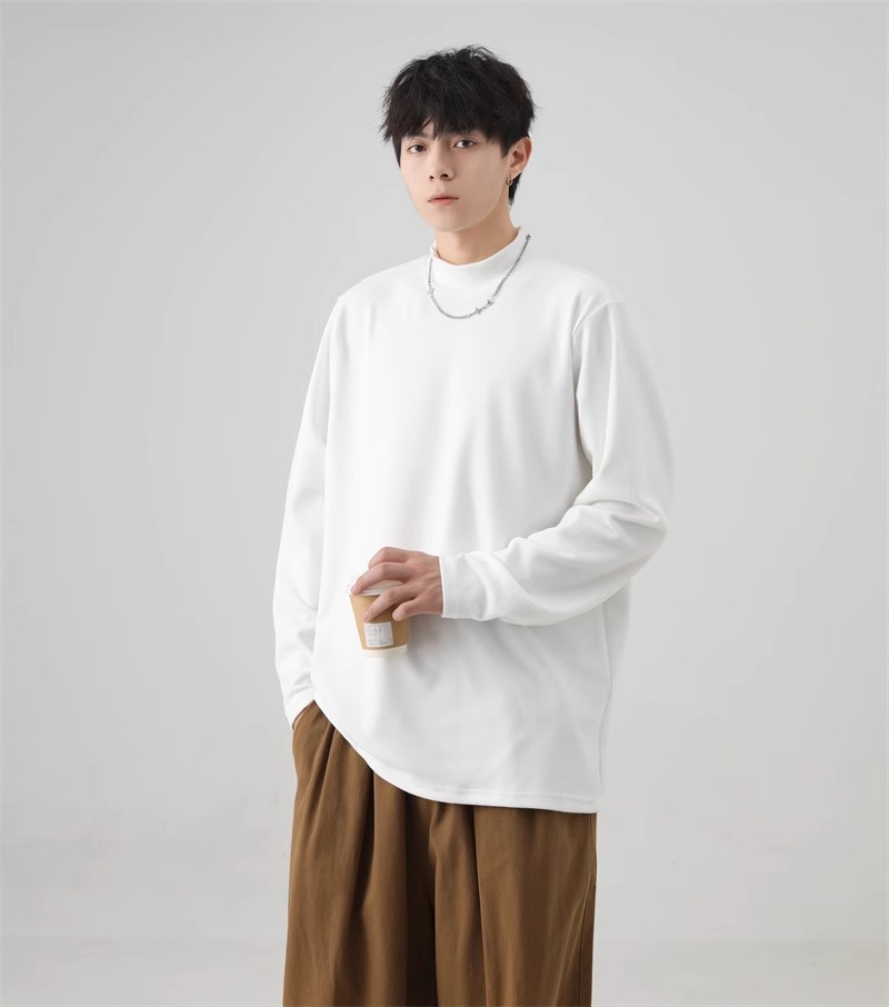 가을과 겨울 새로운 따뜻한 긴팔 티셔츠 남자 내복 가을 패션 단색 패션 반 높은 칼라베이스 셔츠 탑