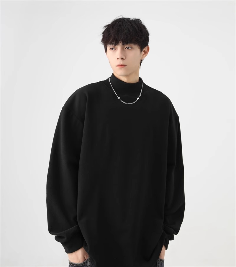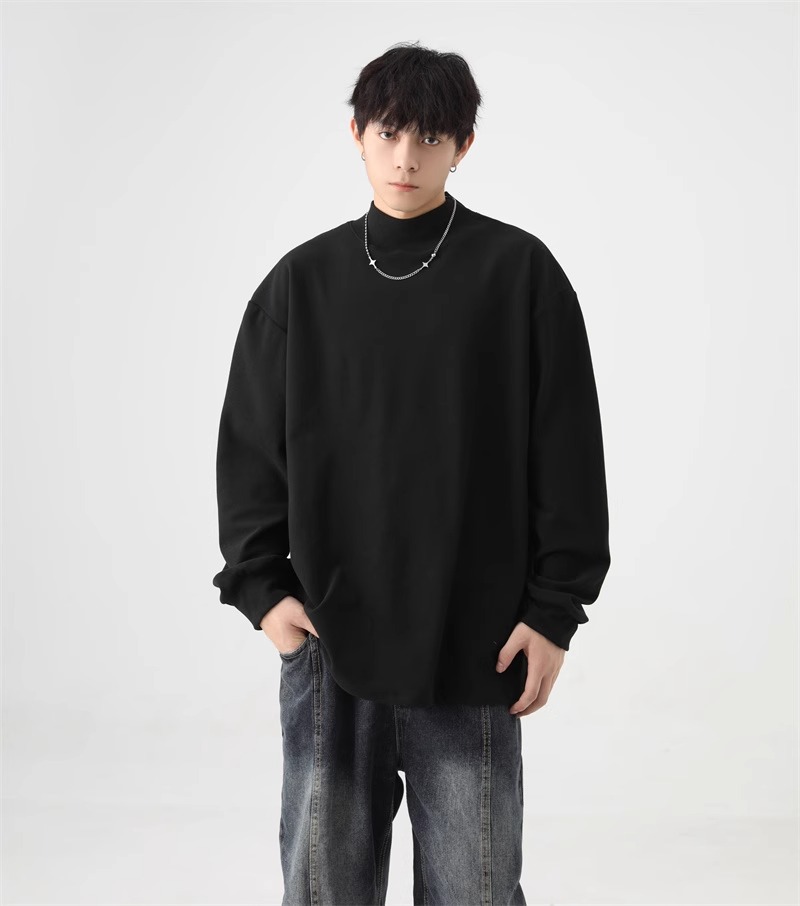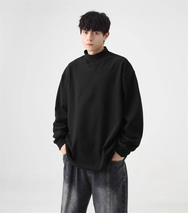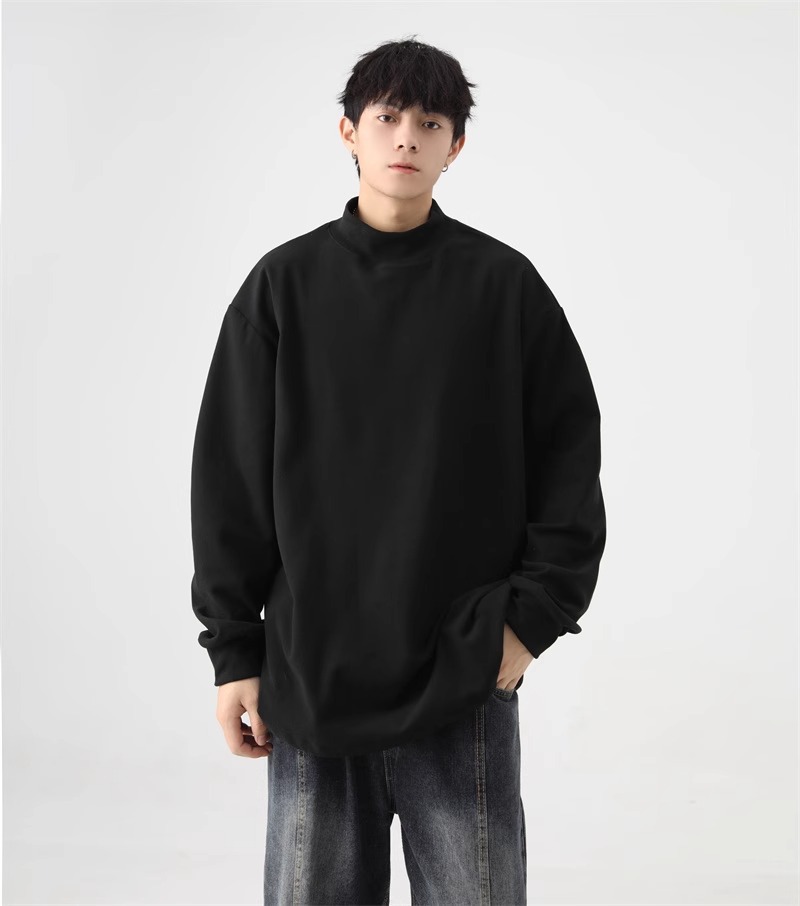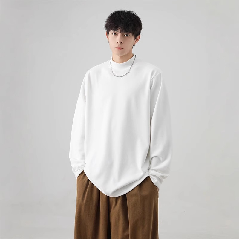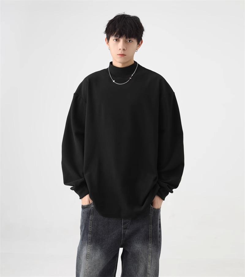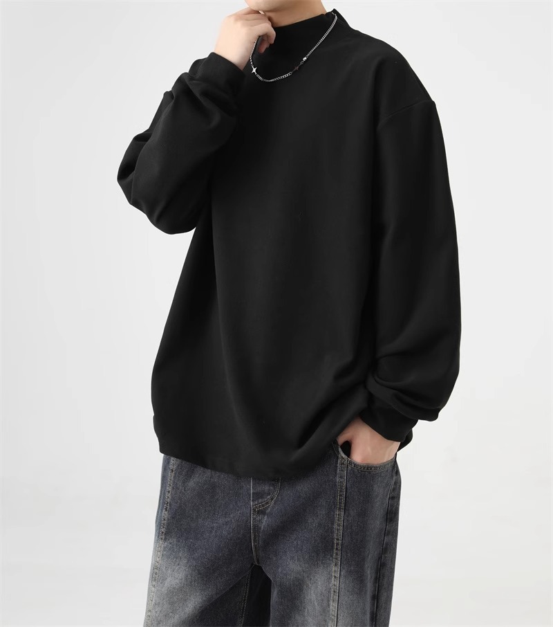 가을과 겨울 새로운 따뜻한 긴팔 티셔츠 남자 내복 가을 패션 단색 패션 반 높은 칼라베이스 셔츠 탑