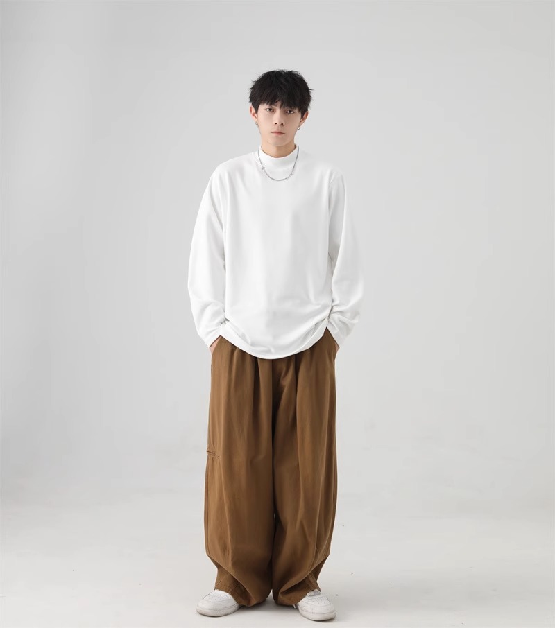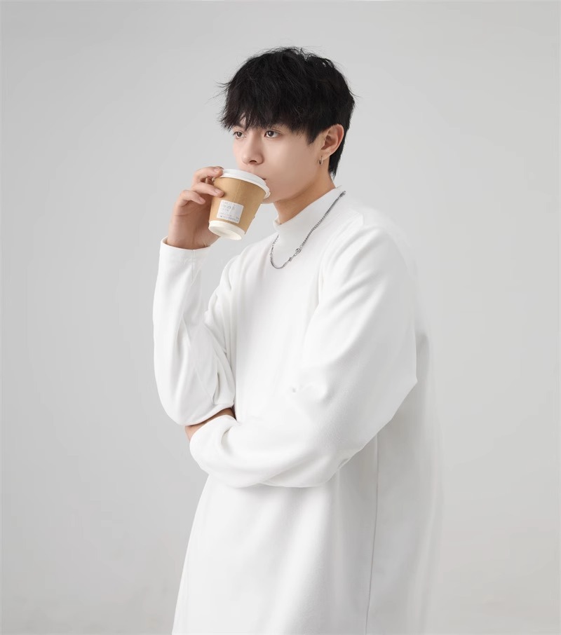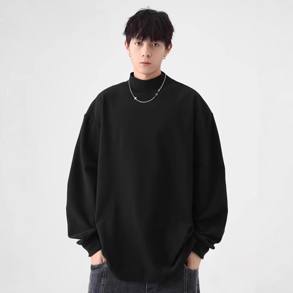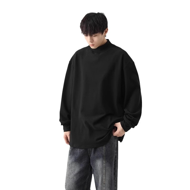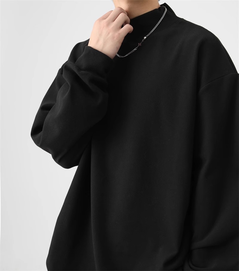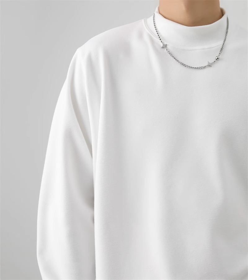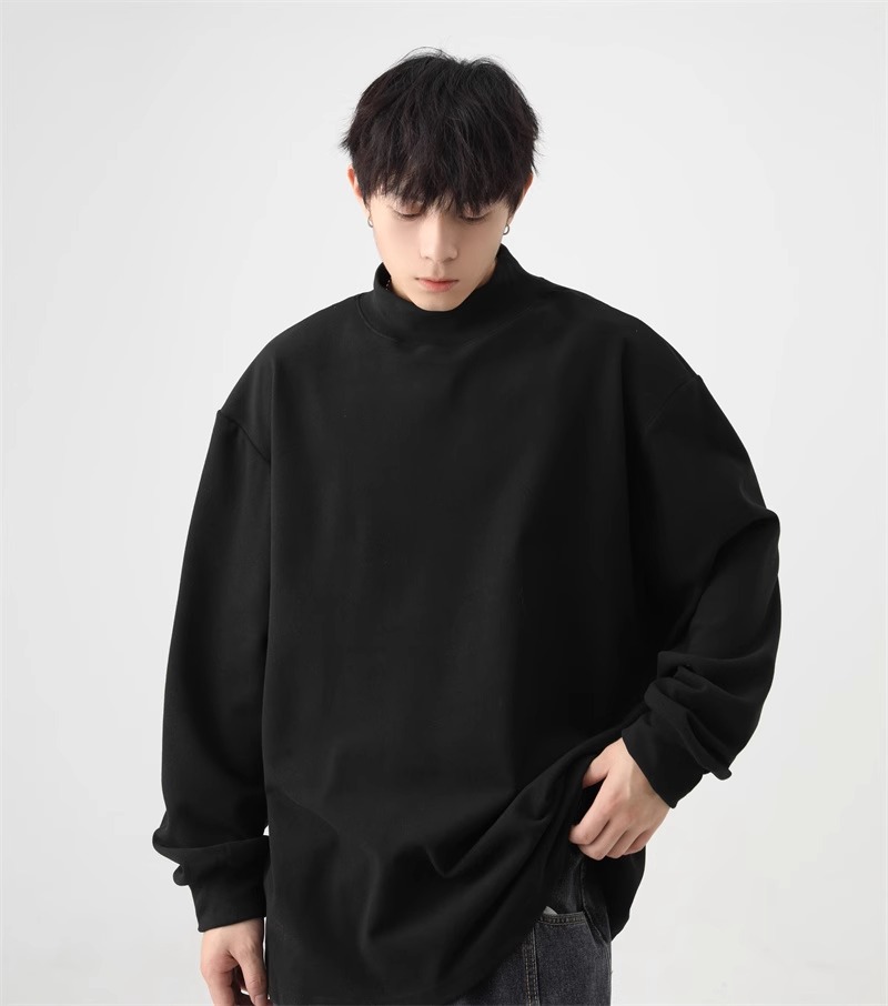 가을과 겨울 새로운 따뜻한 긴팔 티셔츠 남자 내복 가을 패션 단색 패션 반 높은 칼라베이스 셔츠 탑