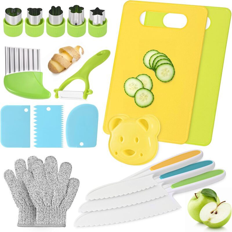 아마존 17종 어린이 과일칼 세트, 손이 아프지 않은 유아용 주방 도구, 빵/토스트칼