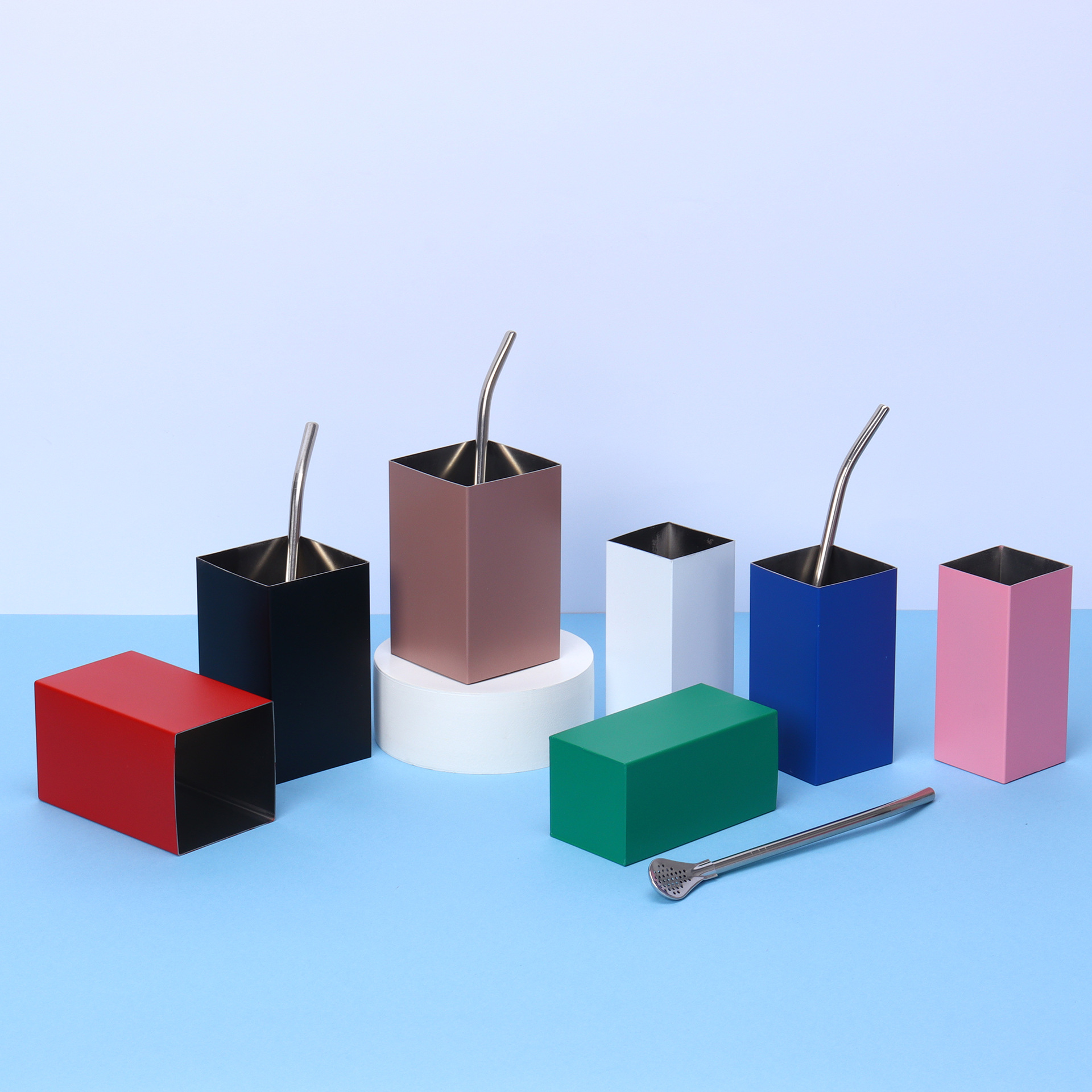 국경 304 스테인레스 스틸 보온병 컵 작은 용량 손 컵 사각형 인형 컵 소쿠리 밀짚 커피 컵