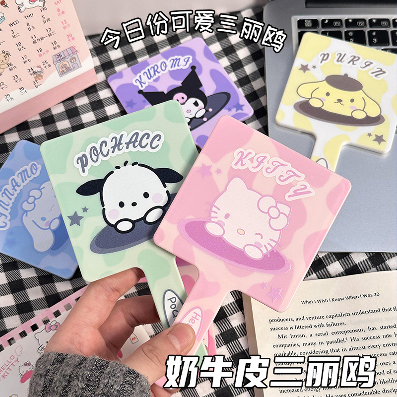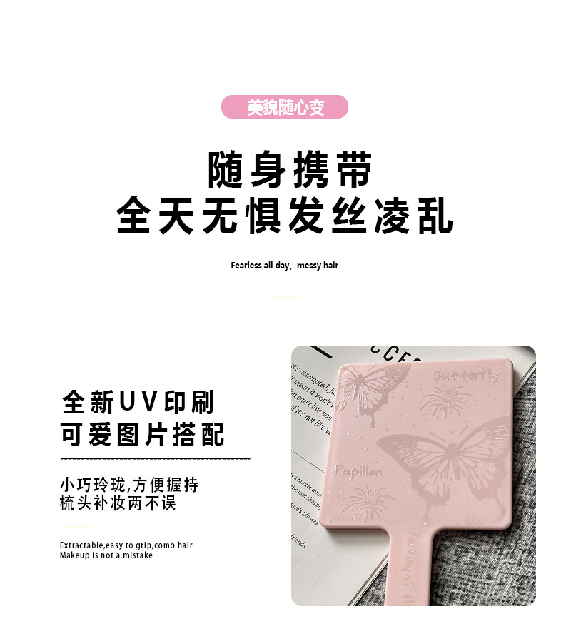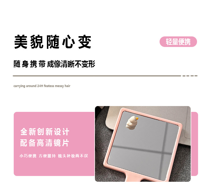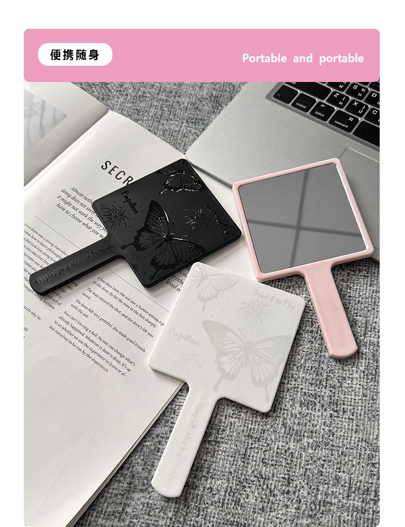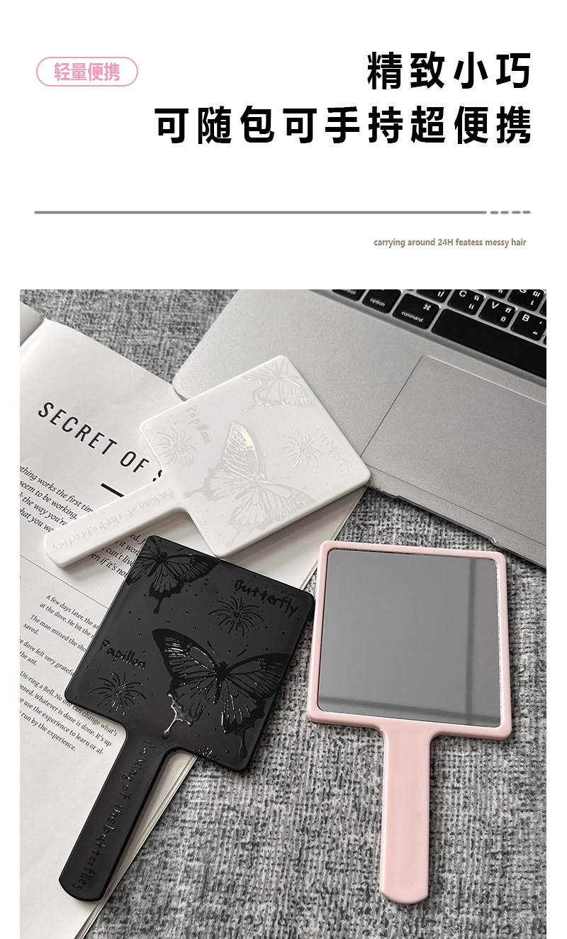 한국 인 스타일 간단한 핸들 미러 고급 및 편리한 메이크업 미러 소녀의 심장 작은 거울 휴대용 메이크업 미러