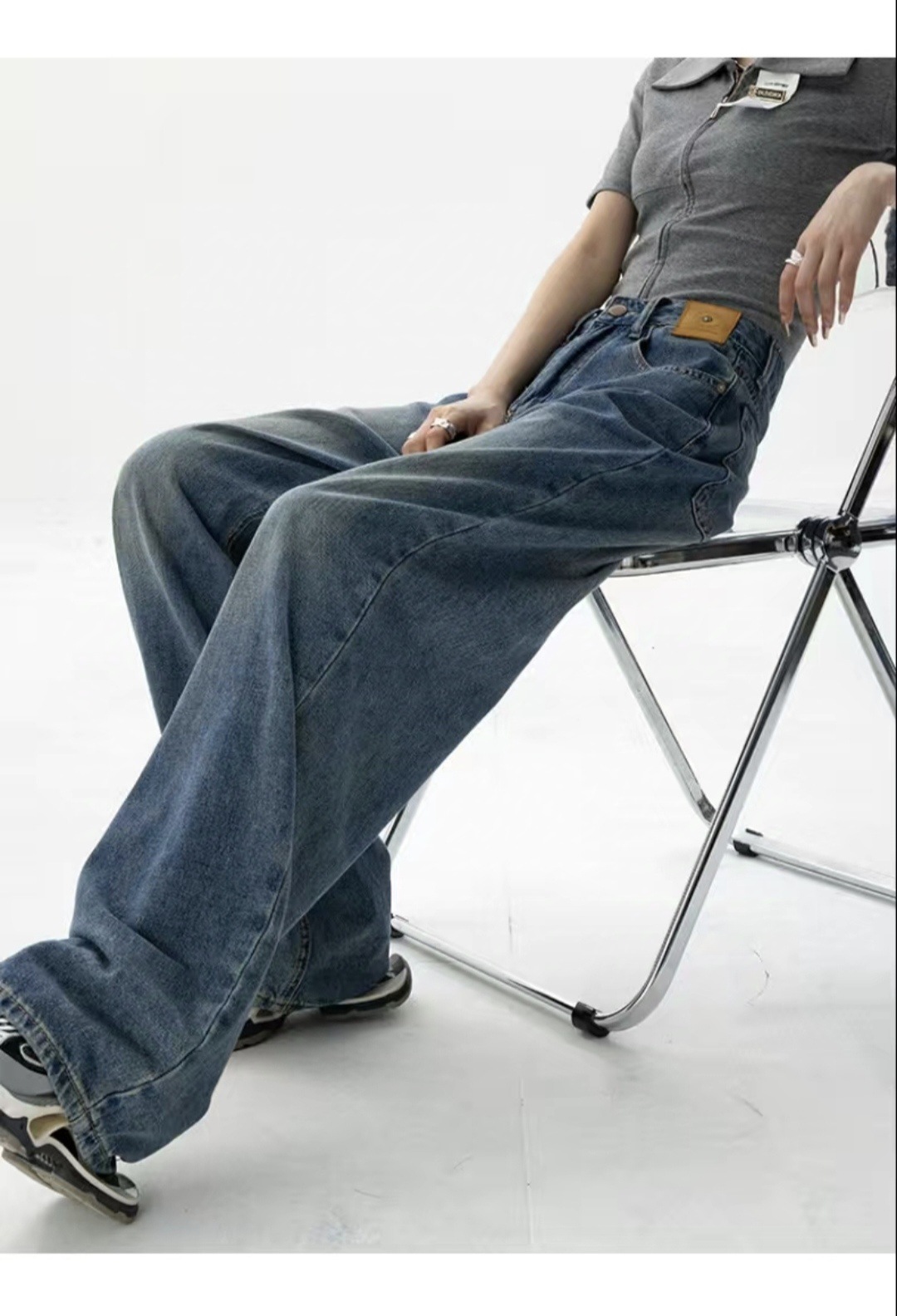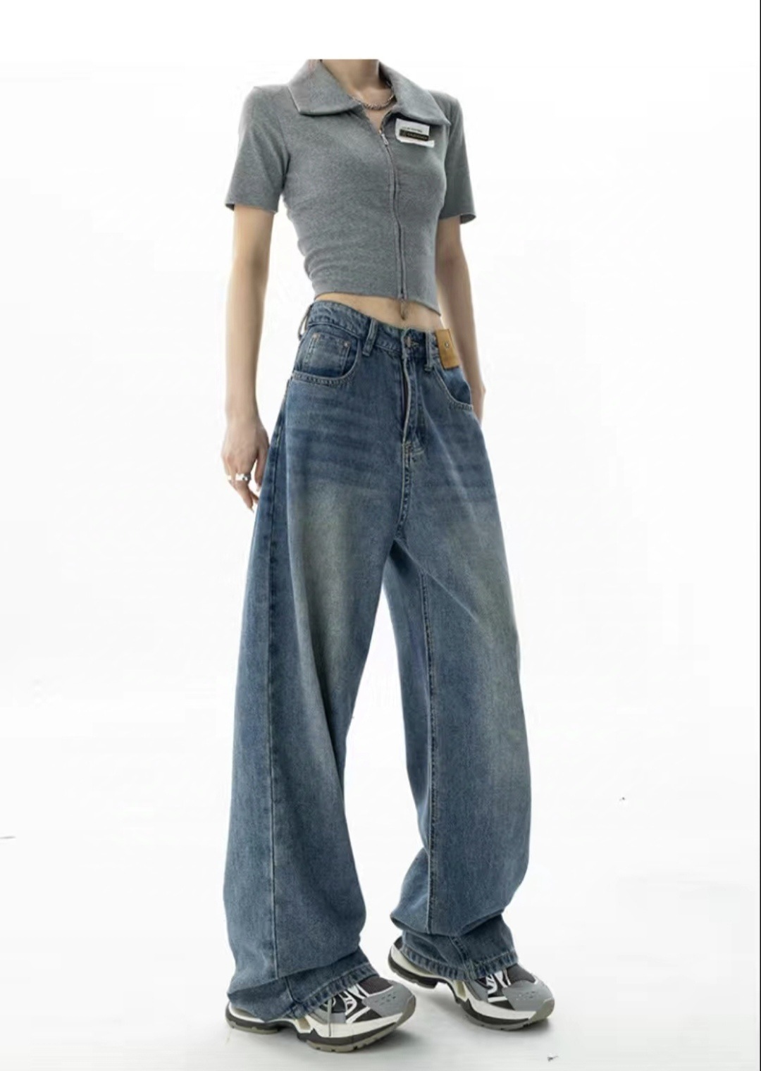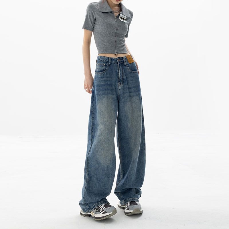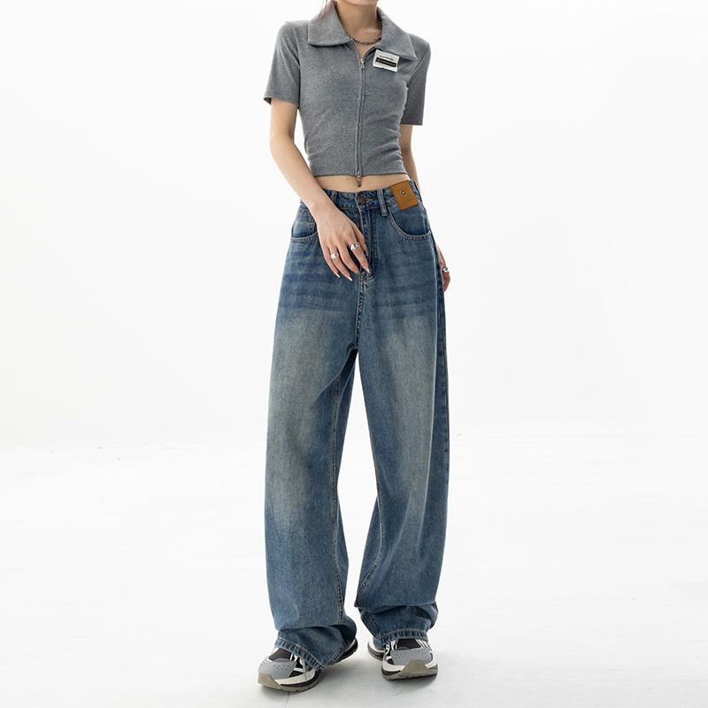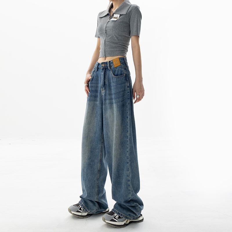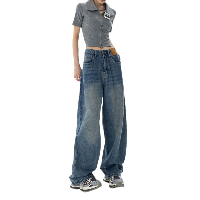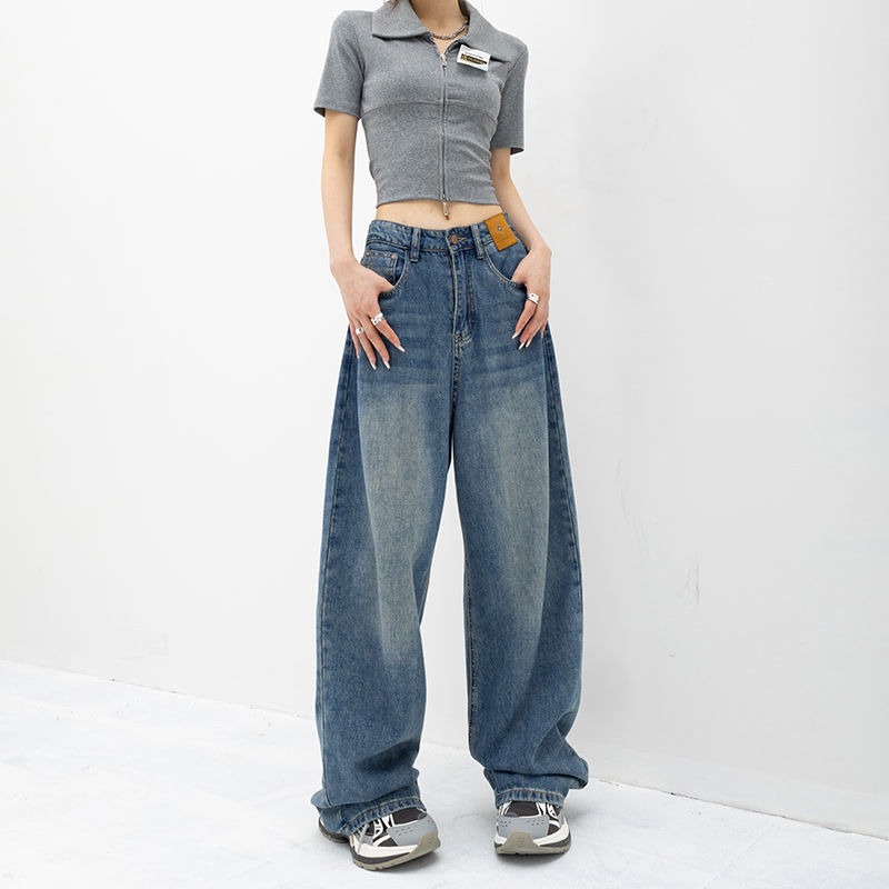 블루 하이웨이스트 스트레이트 루즈핏 여성 청바지 2026년 봄 여름 신상 슬림핏 블랙 와이드 레그 롱 팬츠