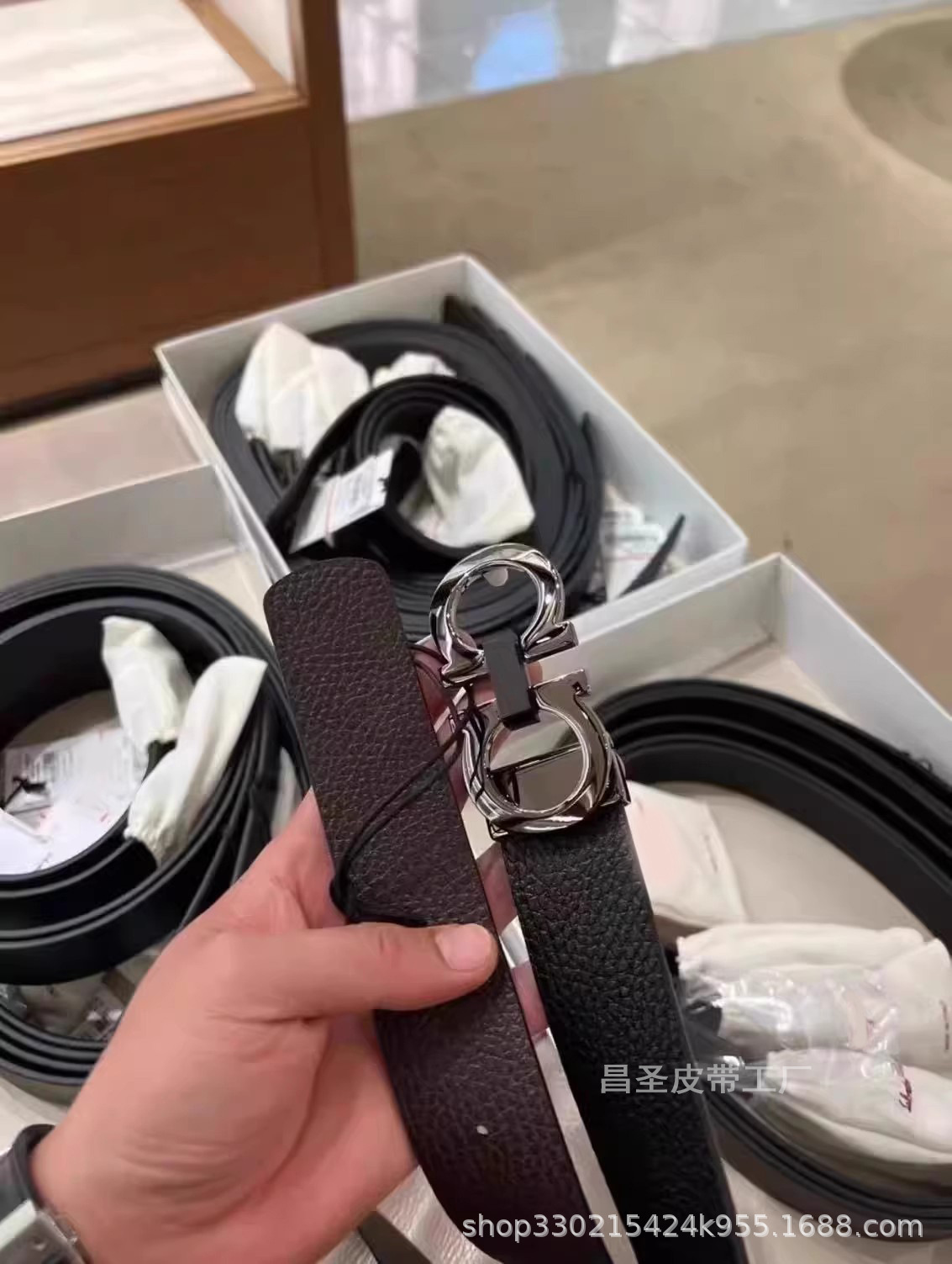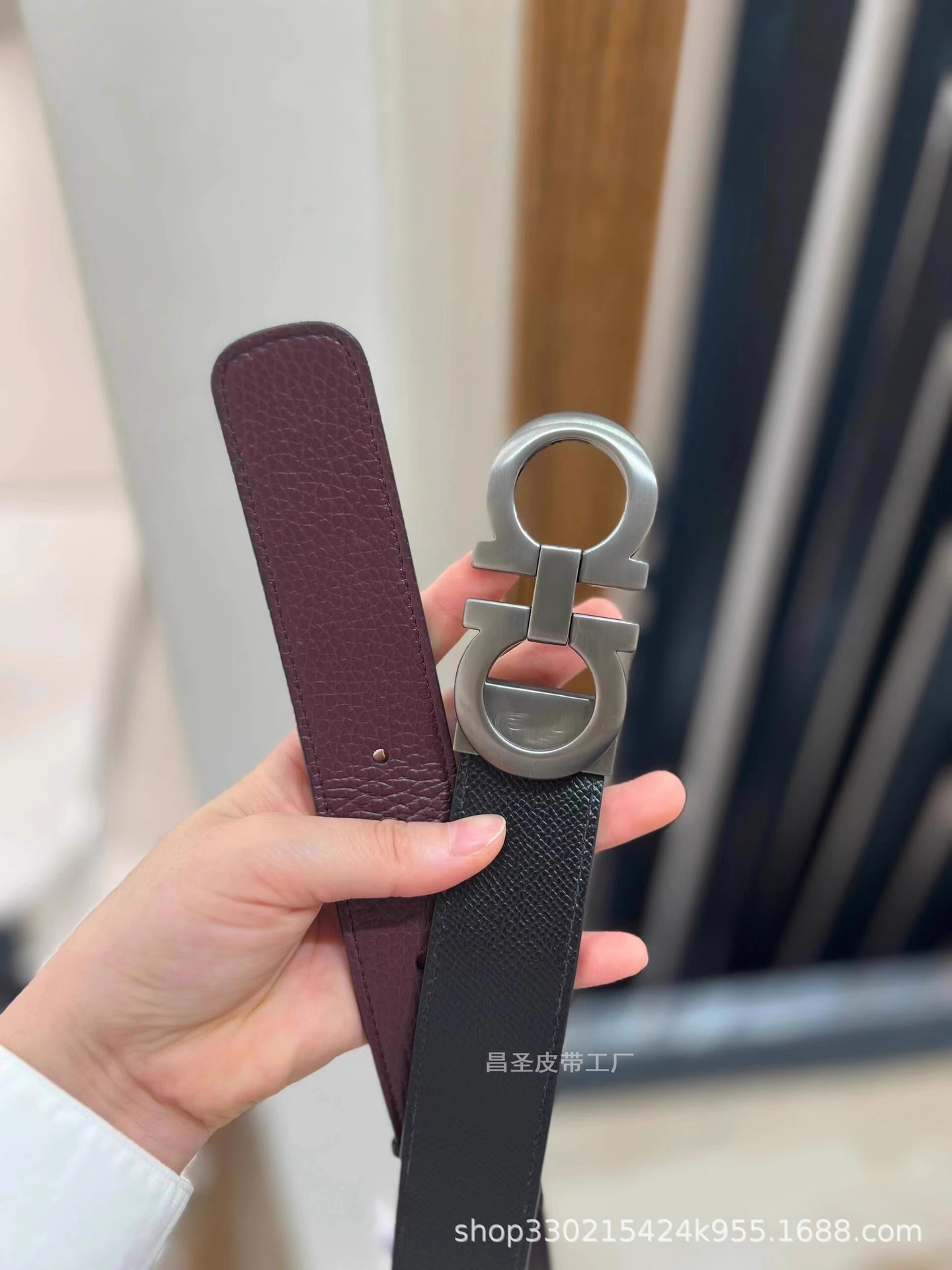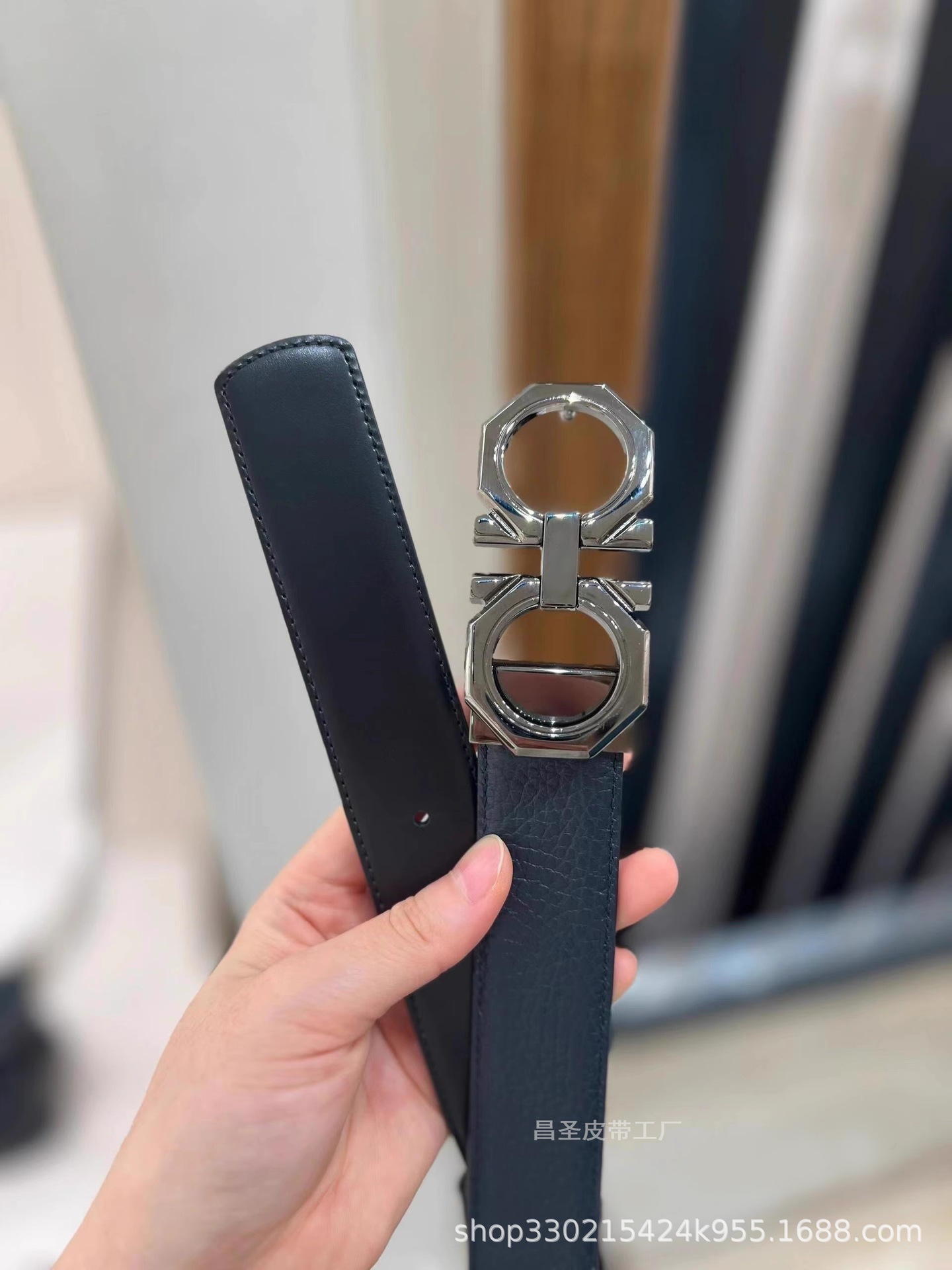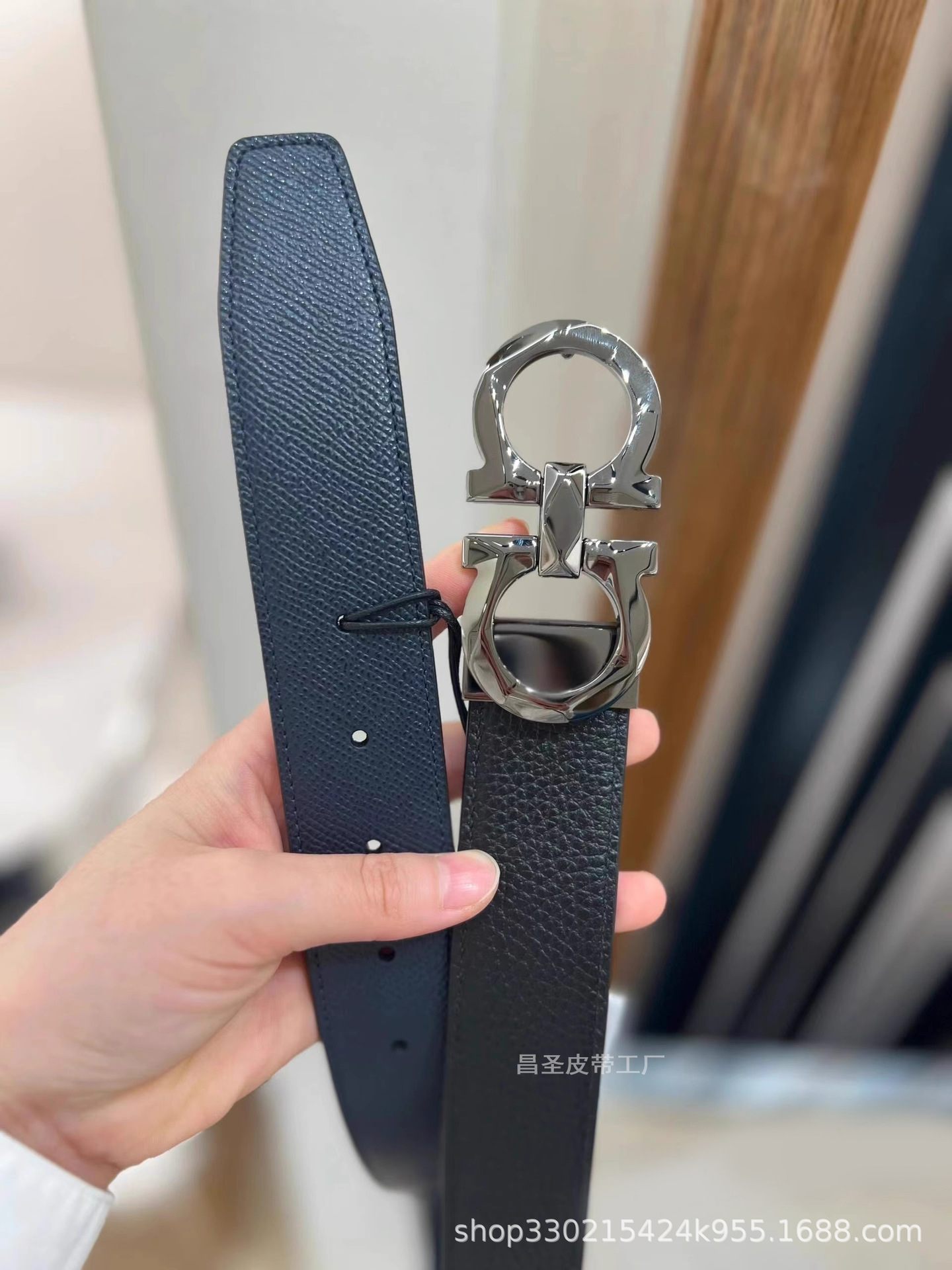 20. 광택 총 버클 + 말굽 패턴 벨트