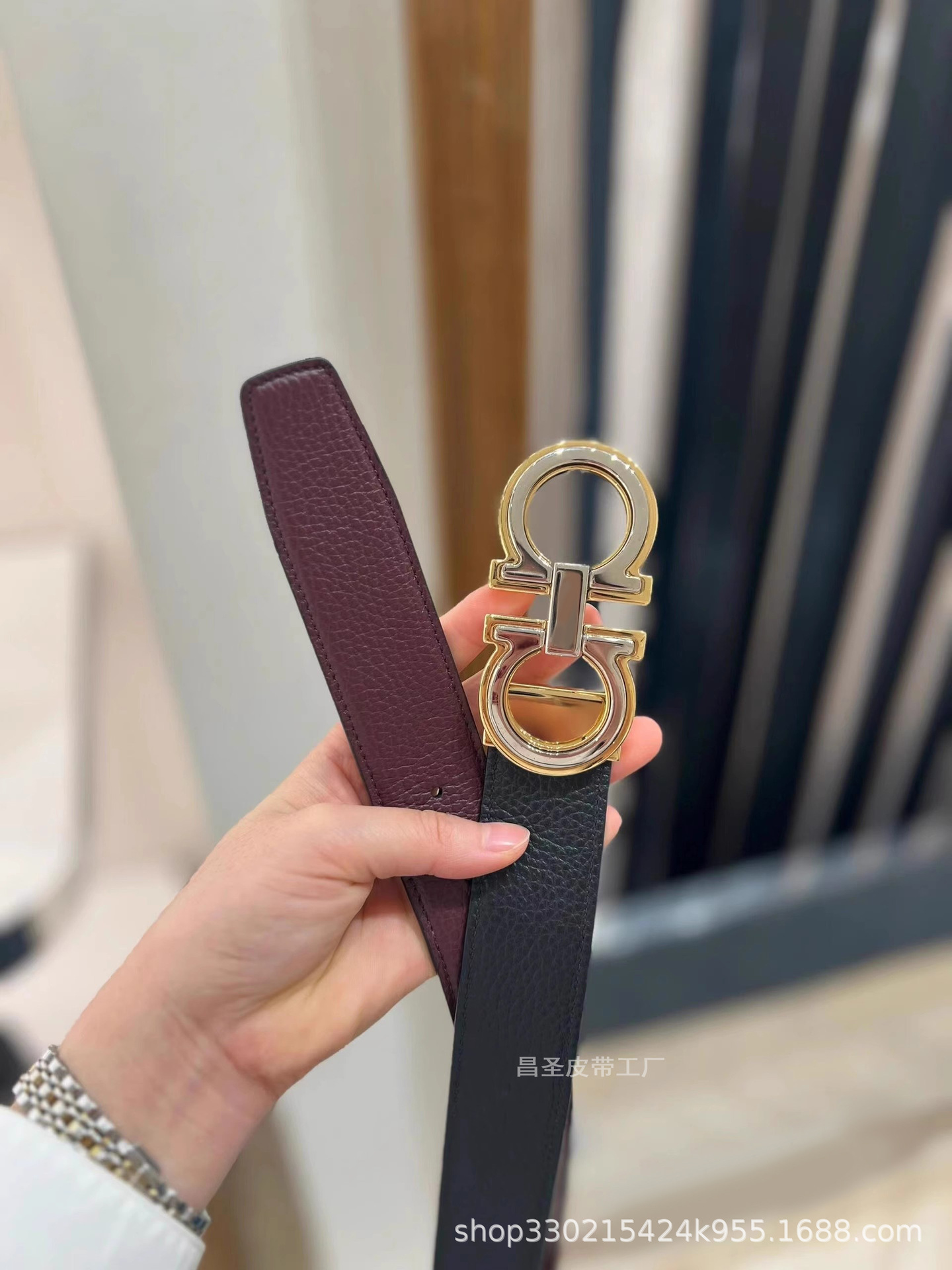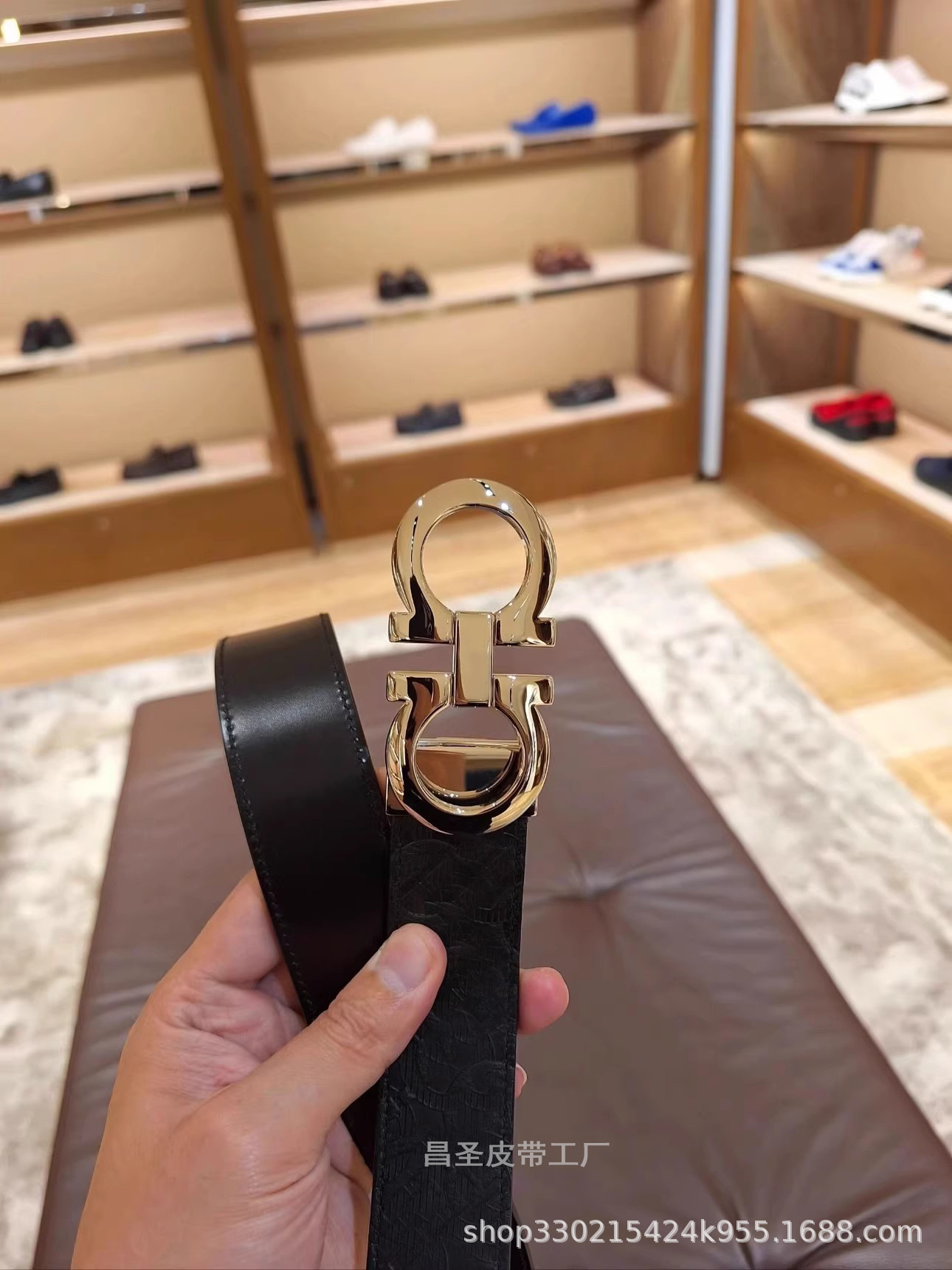 7. 글로시 골드 버클 + 블랙 브라운 (광택)