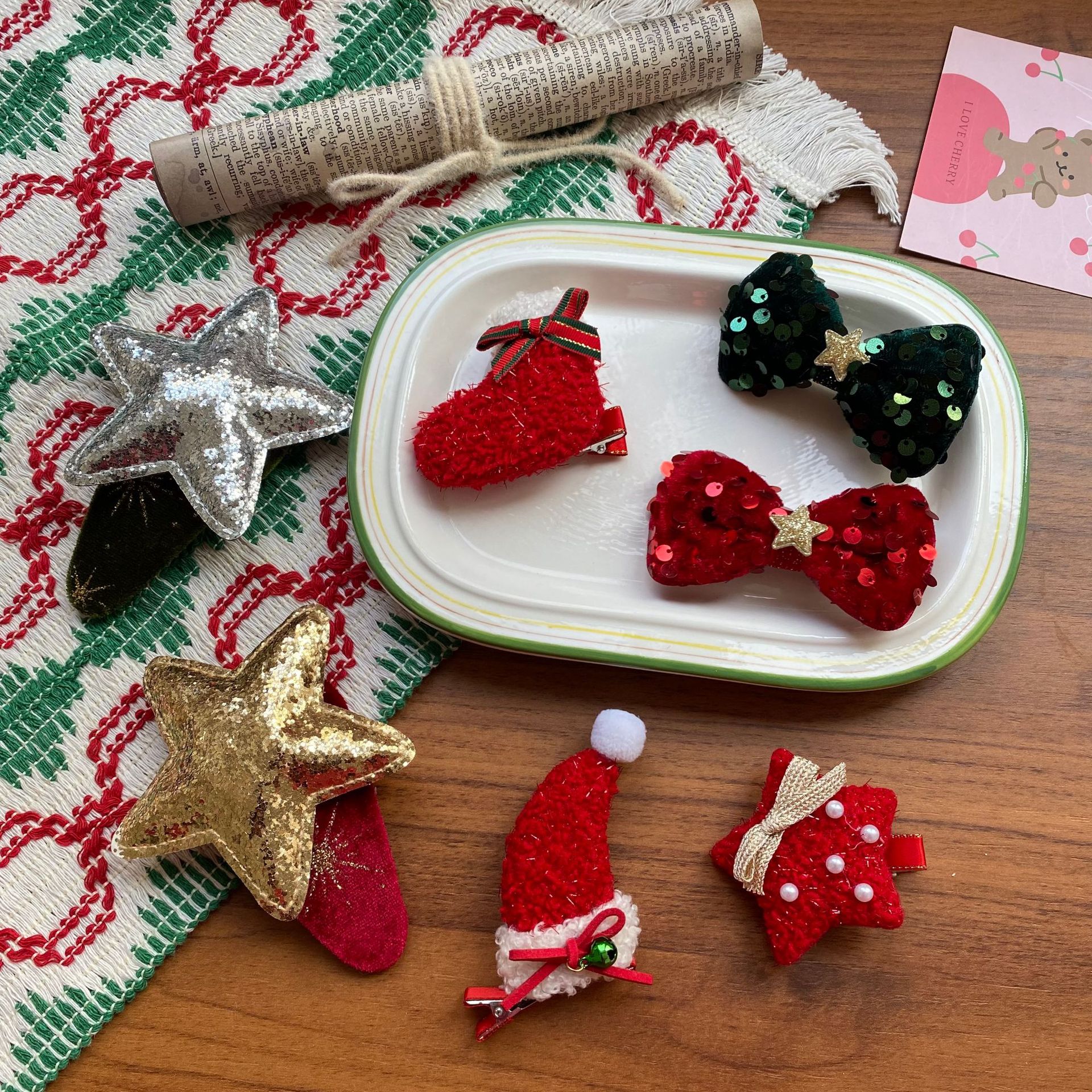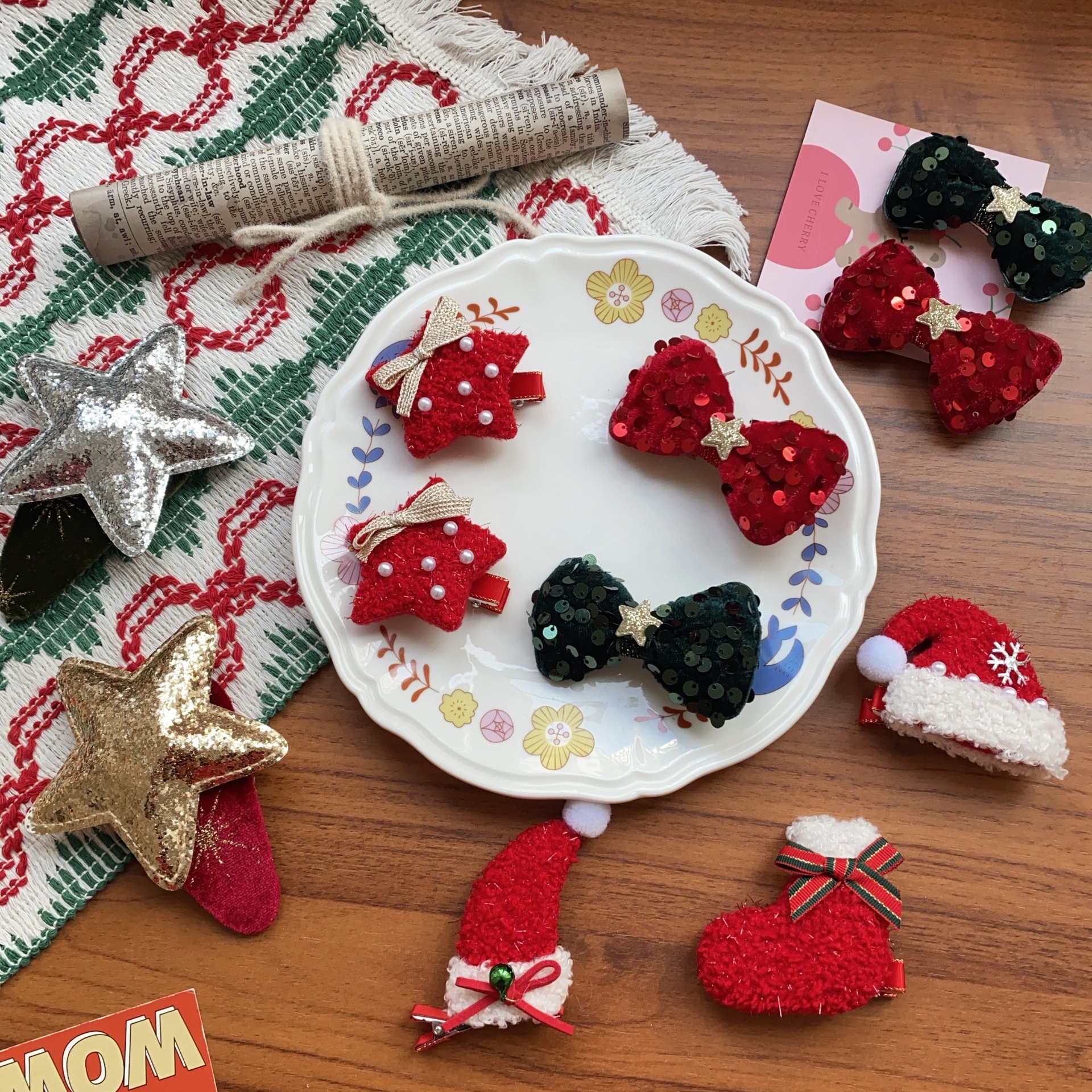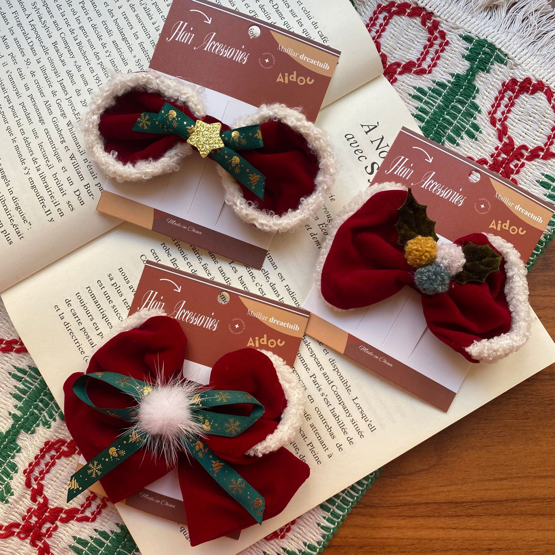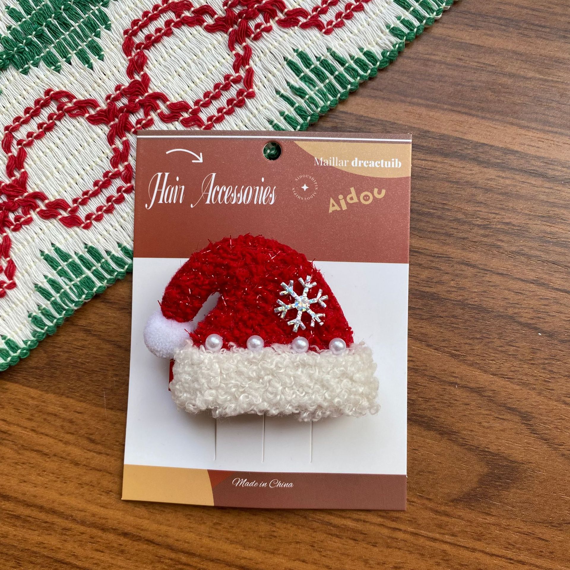 한국 크리스마스 머리핀 여성의 새로운 귀여운 진주 조각 나비 반 넥타이 헤어핀 양고기 양모 높은 크랜얼 탑 헤어 액세서리