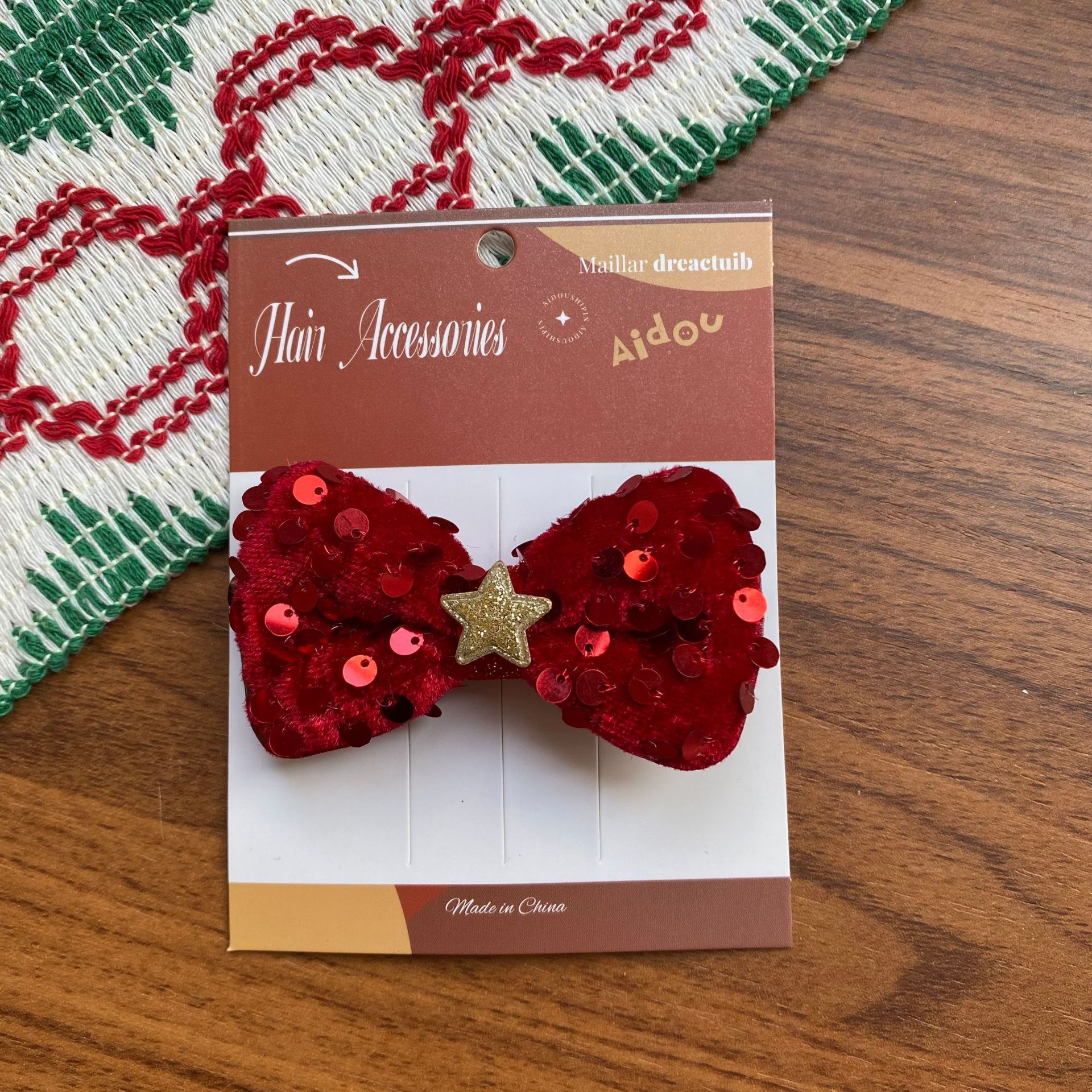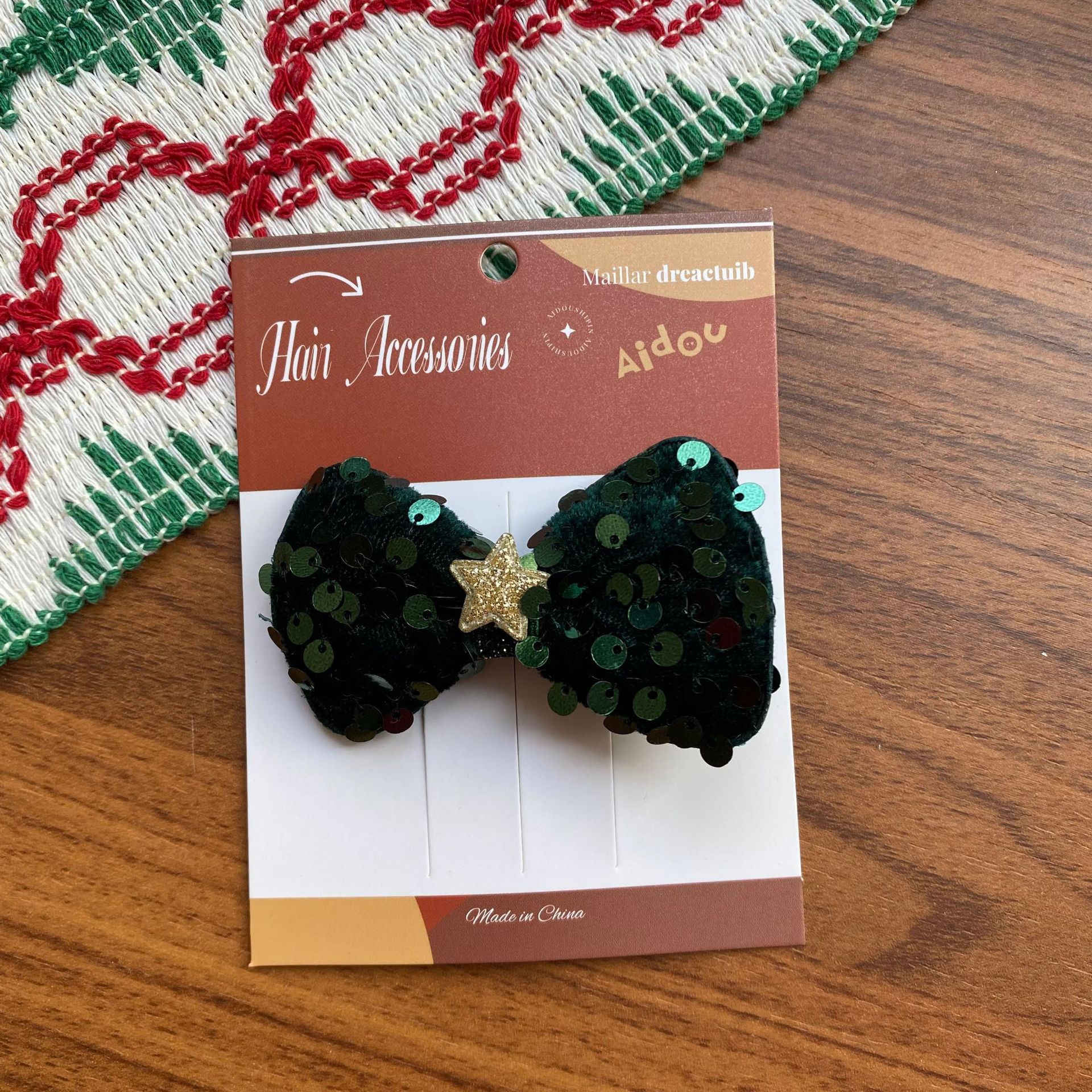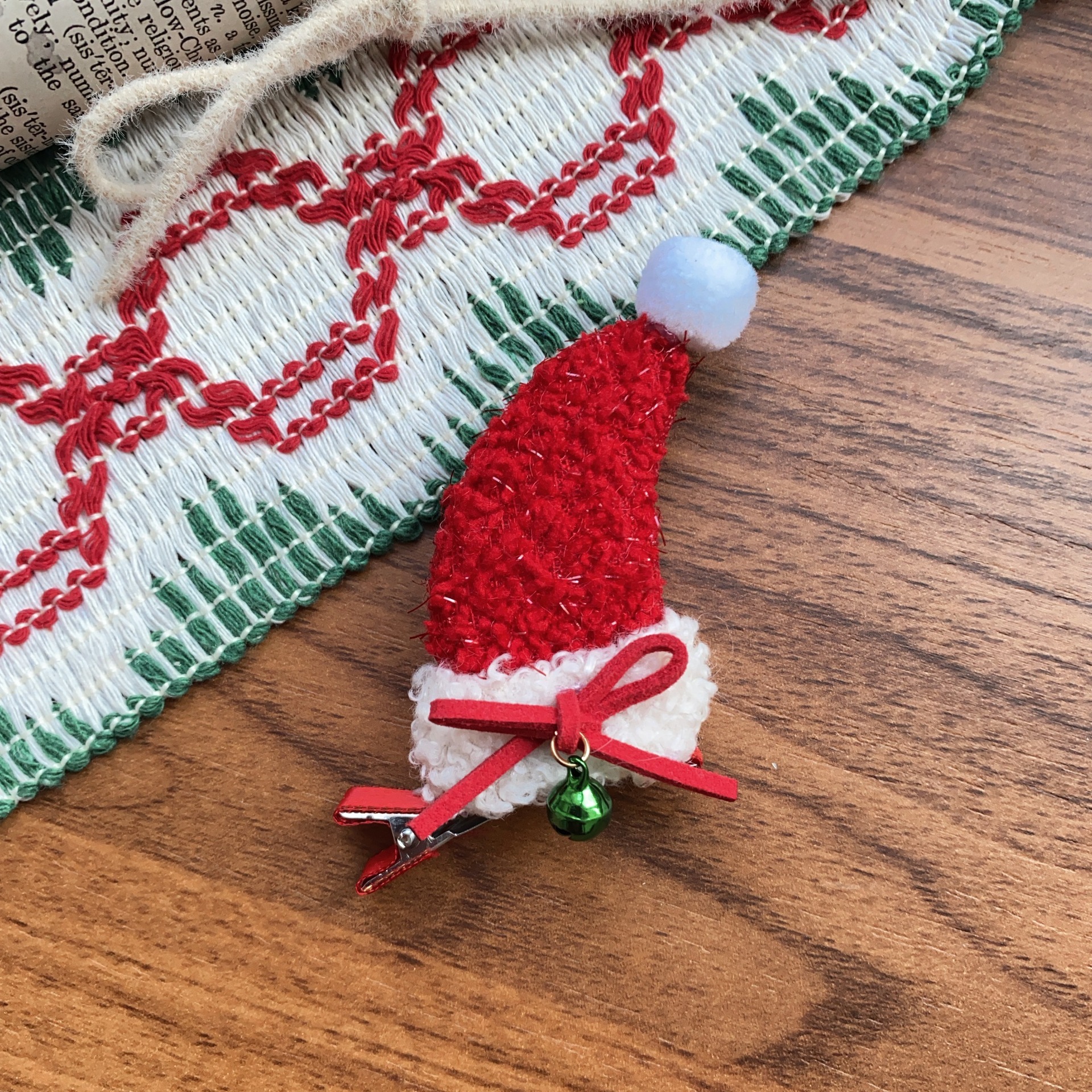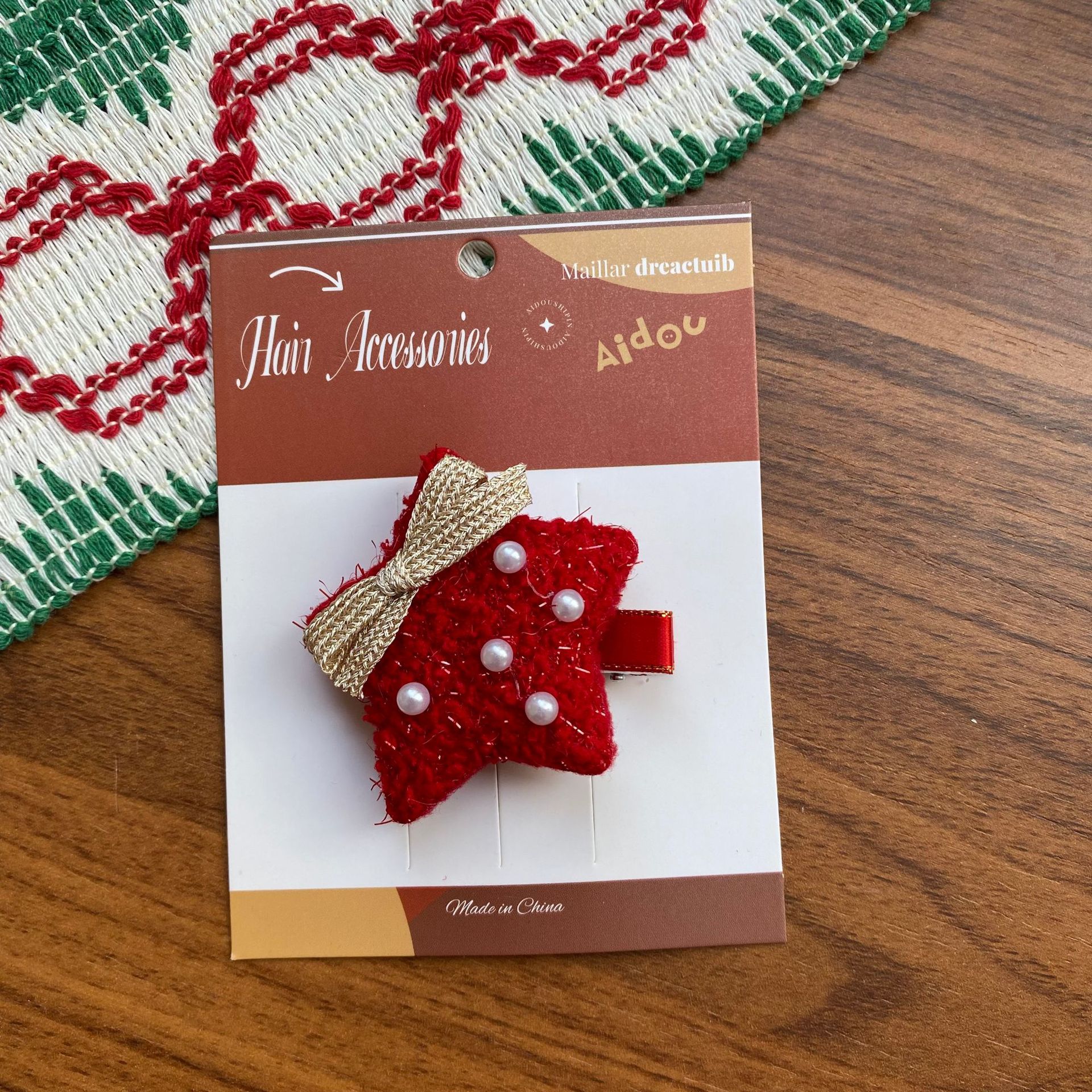 한국 크리스마스 머리핀 여성의 새로운 귀여운 진주 조각 나비 반 넥타이 헤어핀 양고기 양모 높은 크랜얼 탑 헤어 액세서리