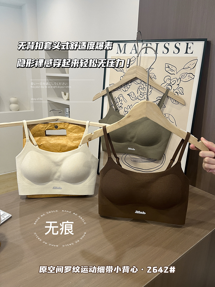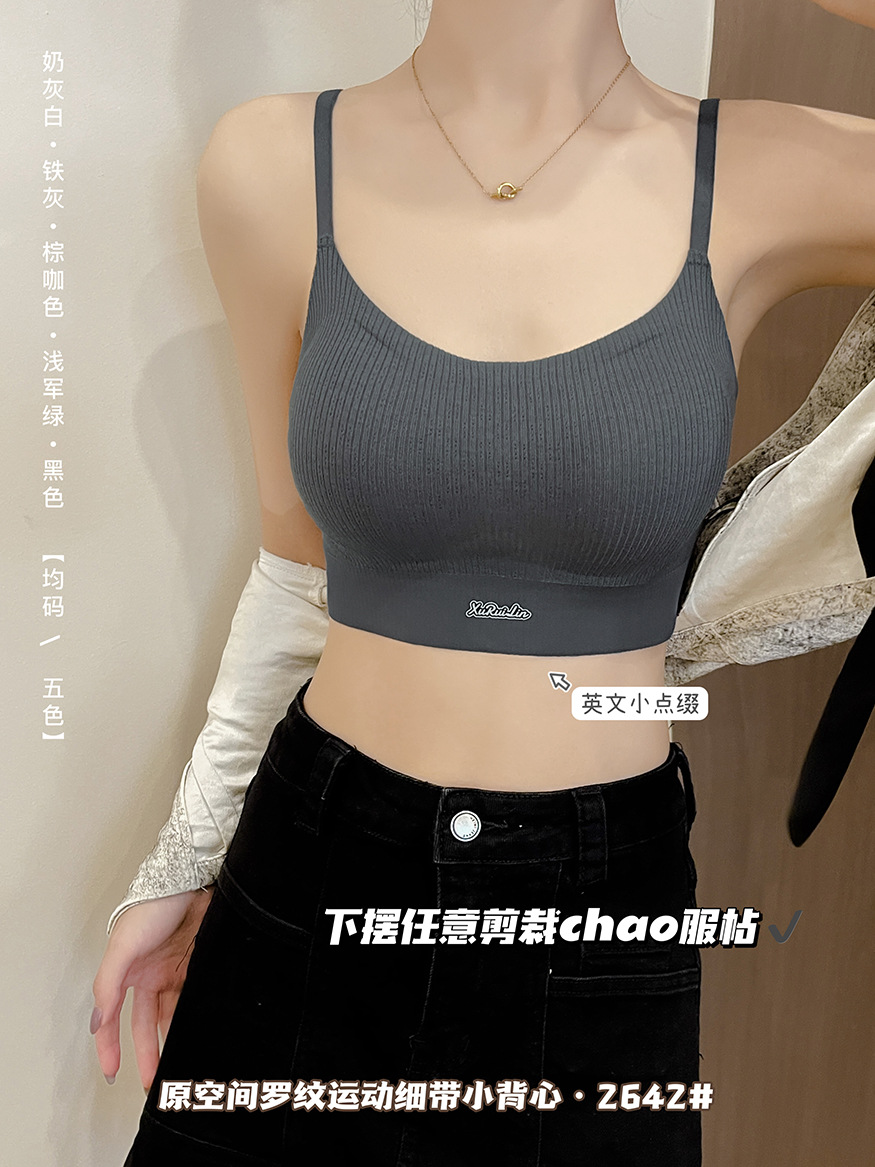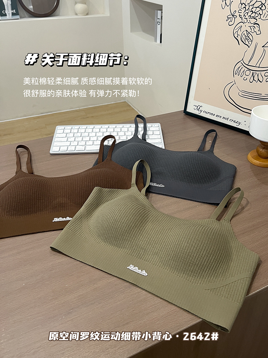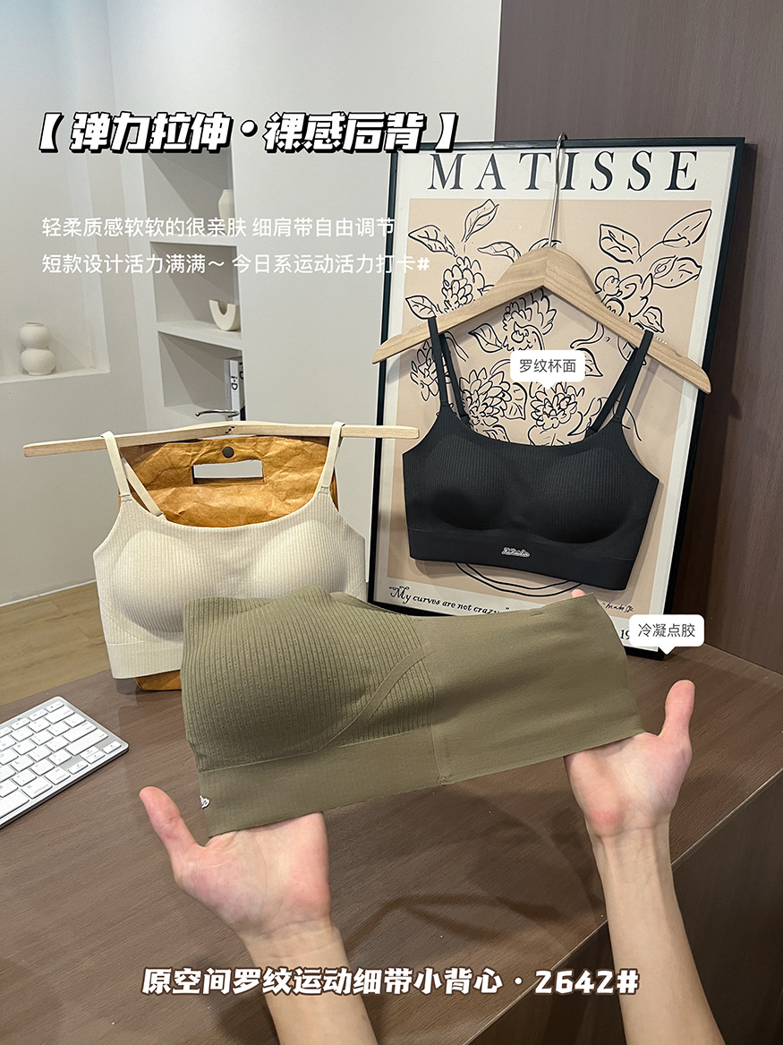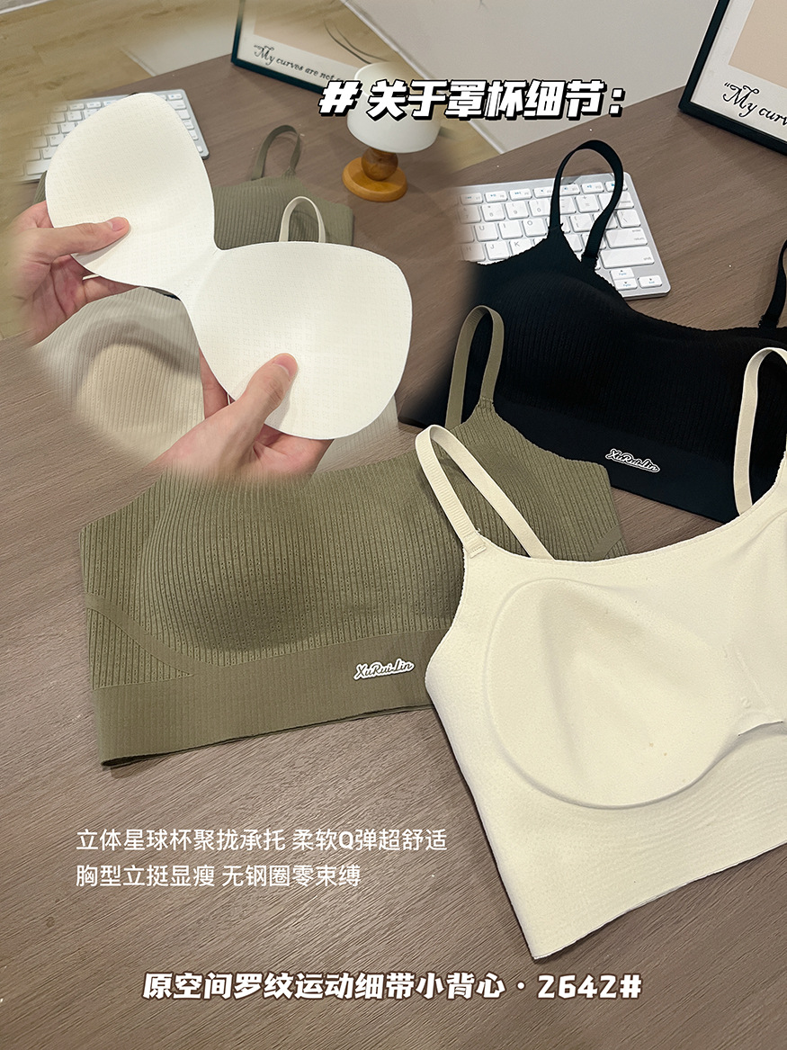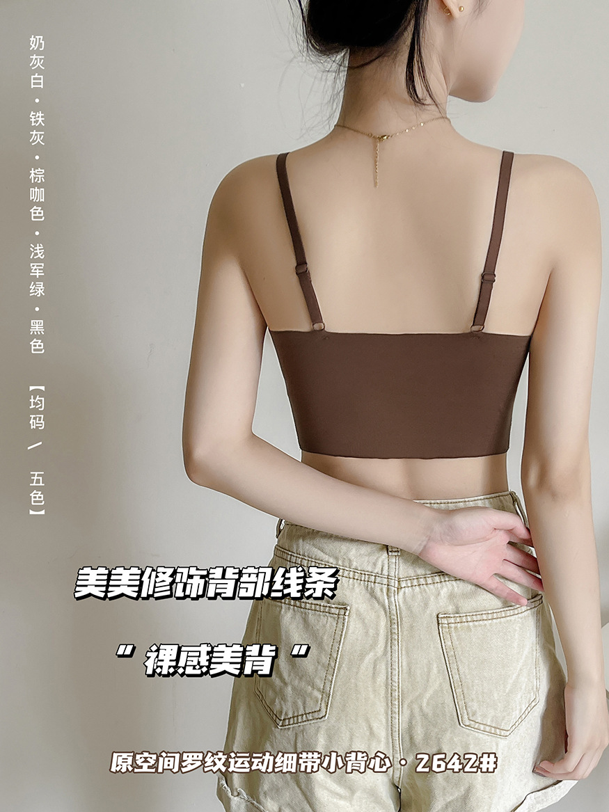 2642 원활한 뷰티 백 고정 컵 마이크로 샌딩 가슴 패드 조끼 내부 스포츠 브래지어 속옷 여성 국경