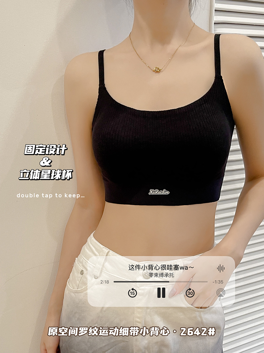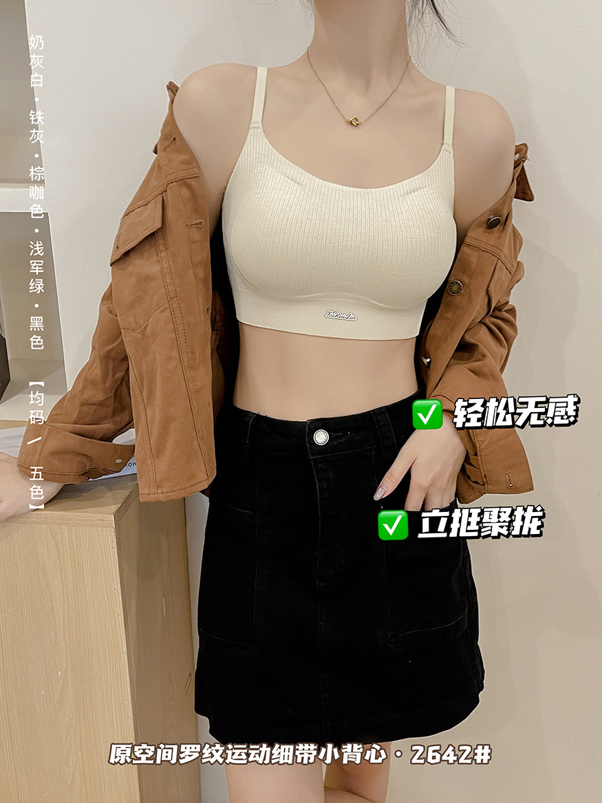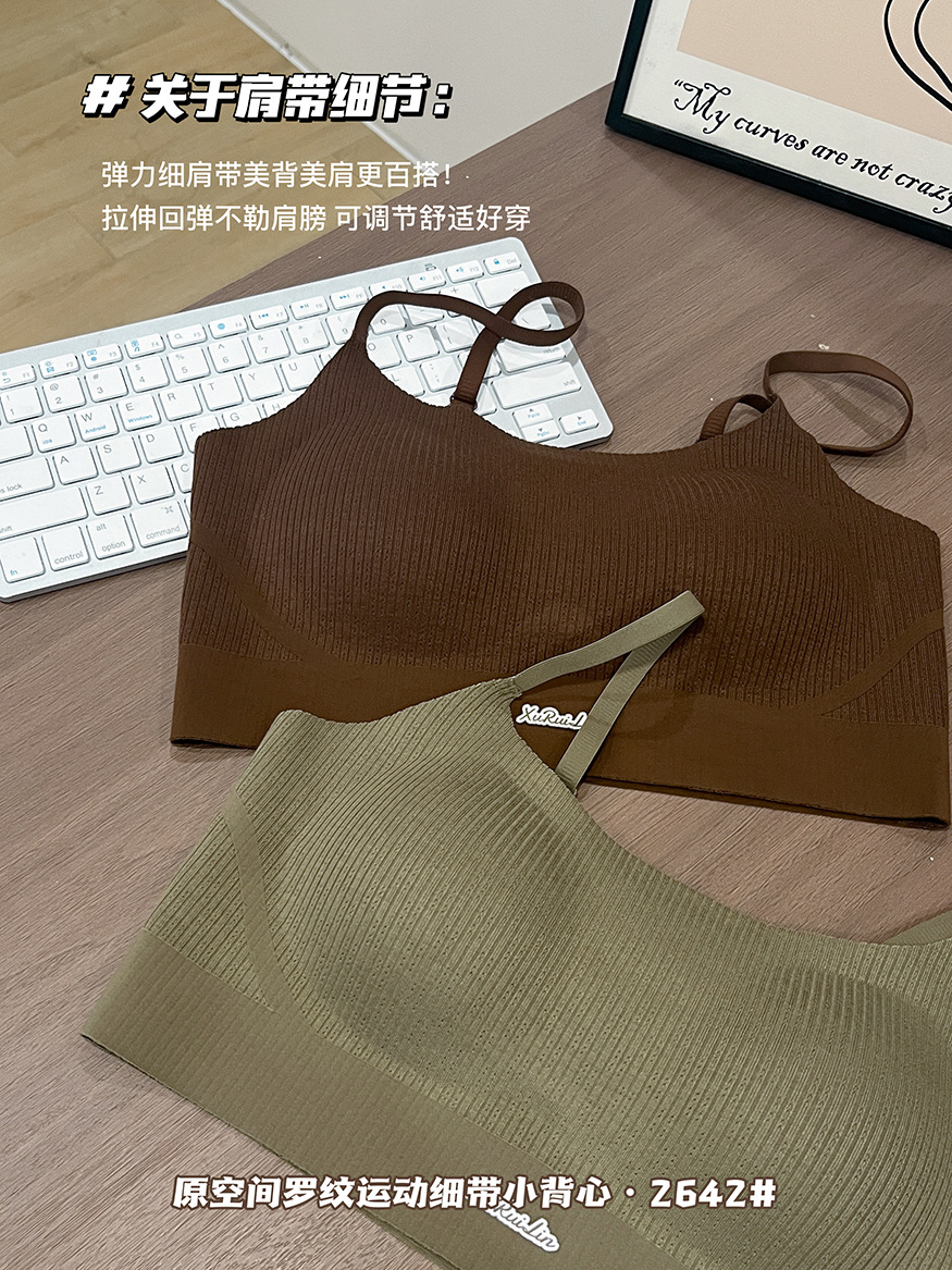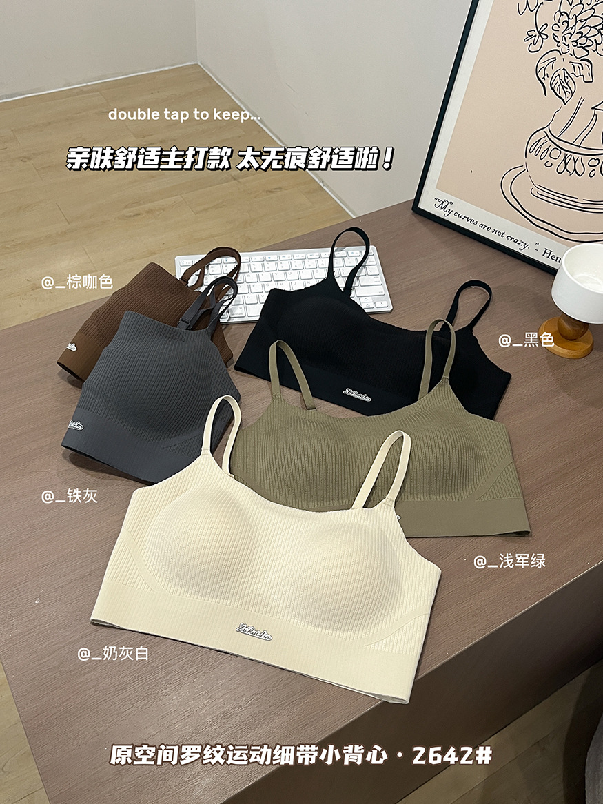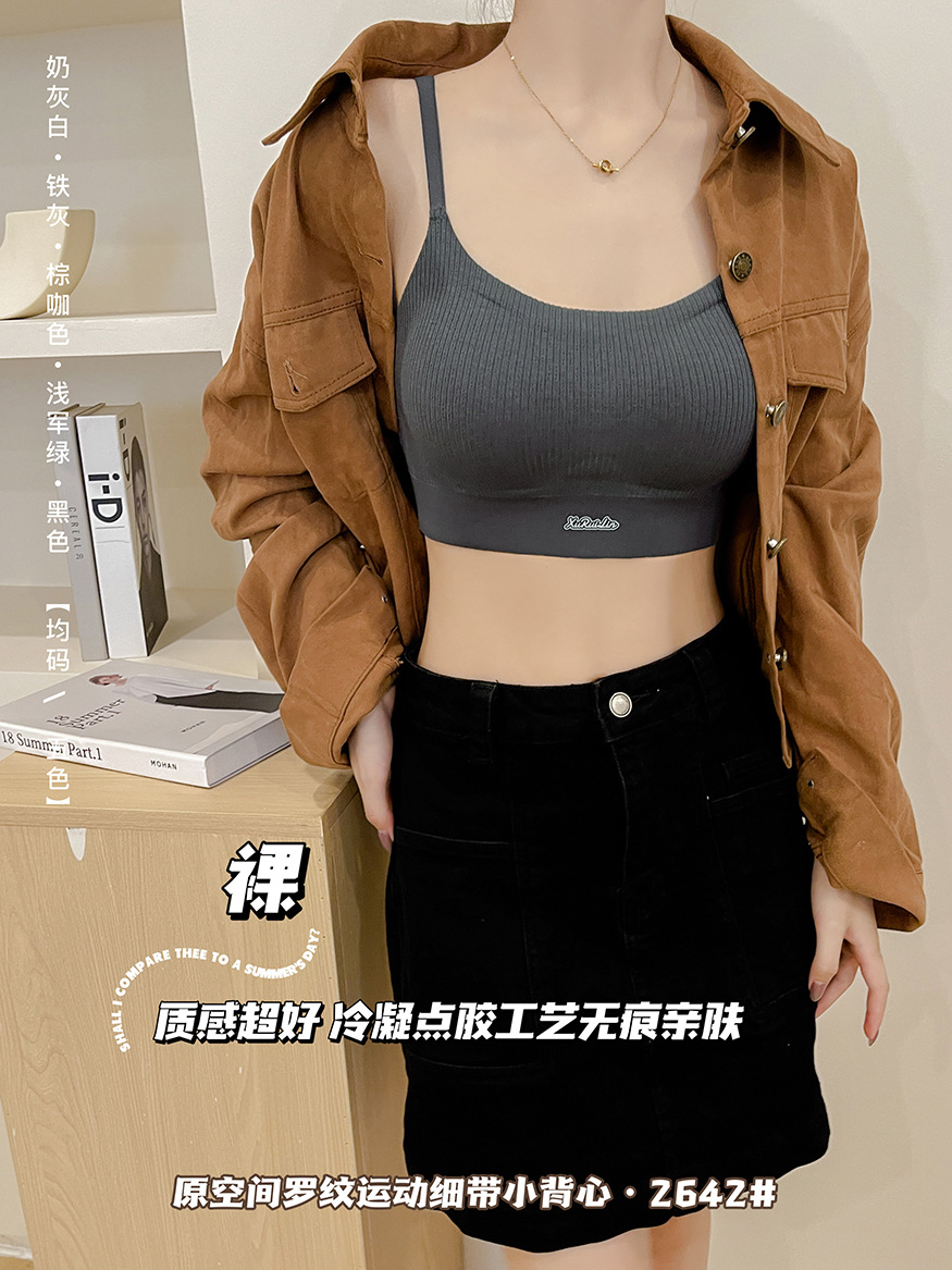 2642 원활한 뷰티 백 고정 컵 마이크로 샌딩 가슴 패드 조끼 내부 스포츠 브래지어 속옷 여성 국경