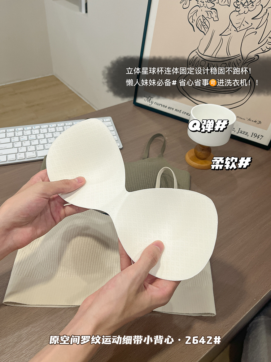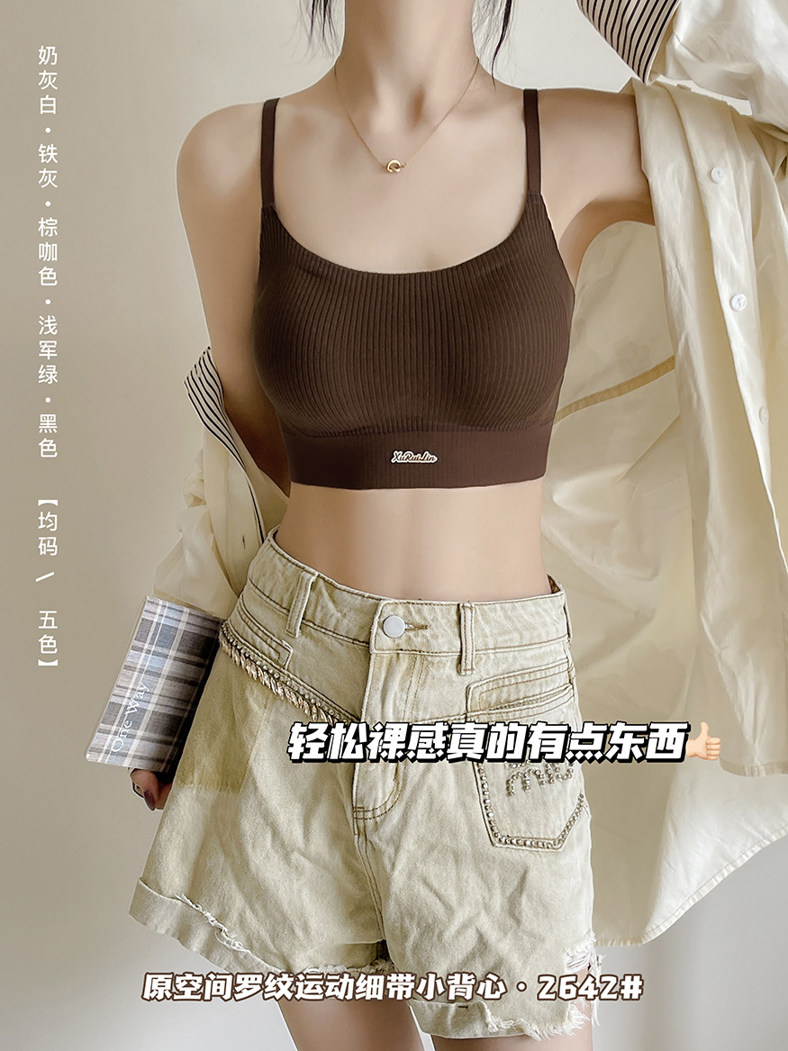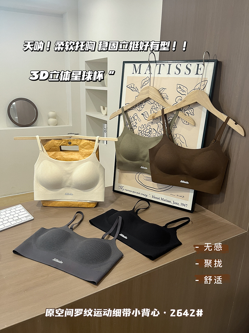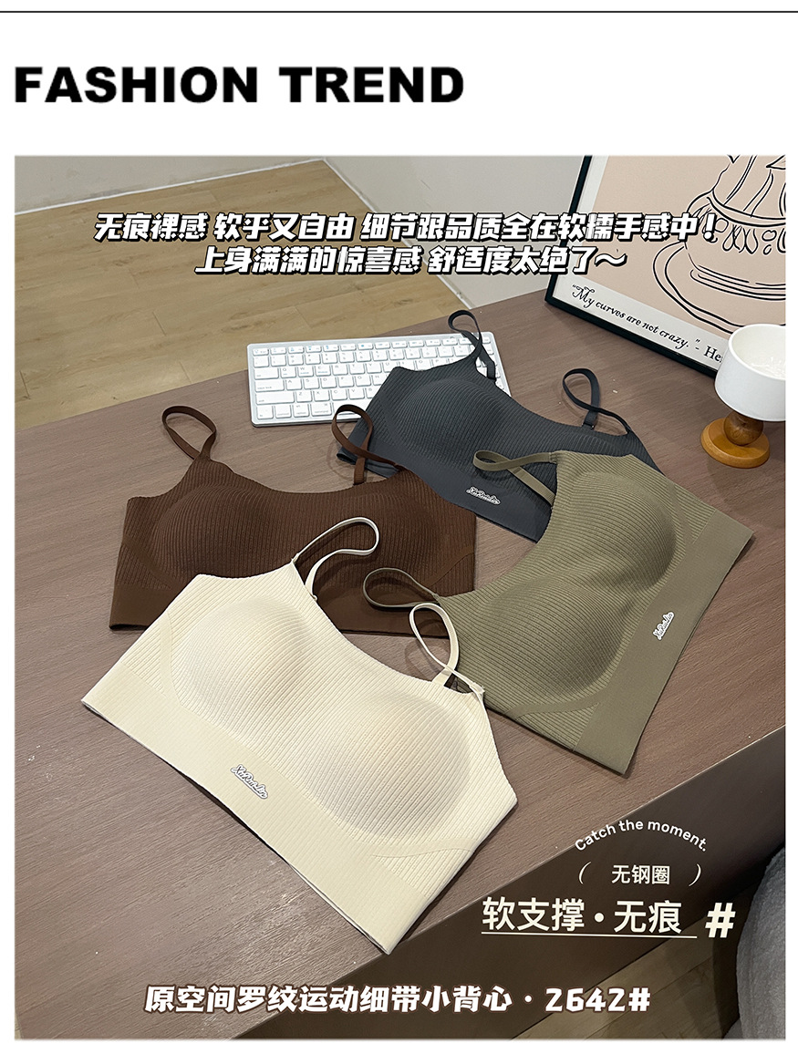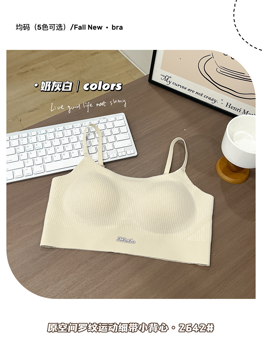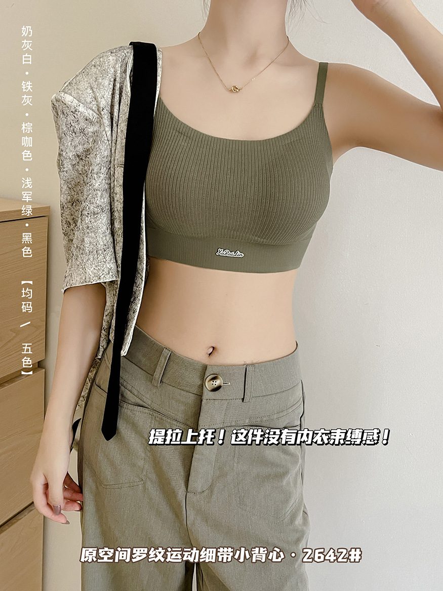 2642 원활한 뷰티 백 고정 컵 마이크로 샌딩 가슴 패드 조끼 내부 스포츠 브래지어 속옷 여성 국경
