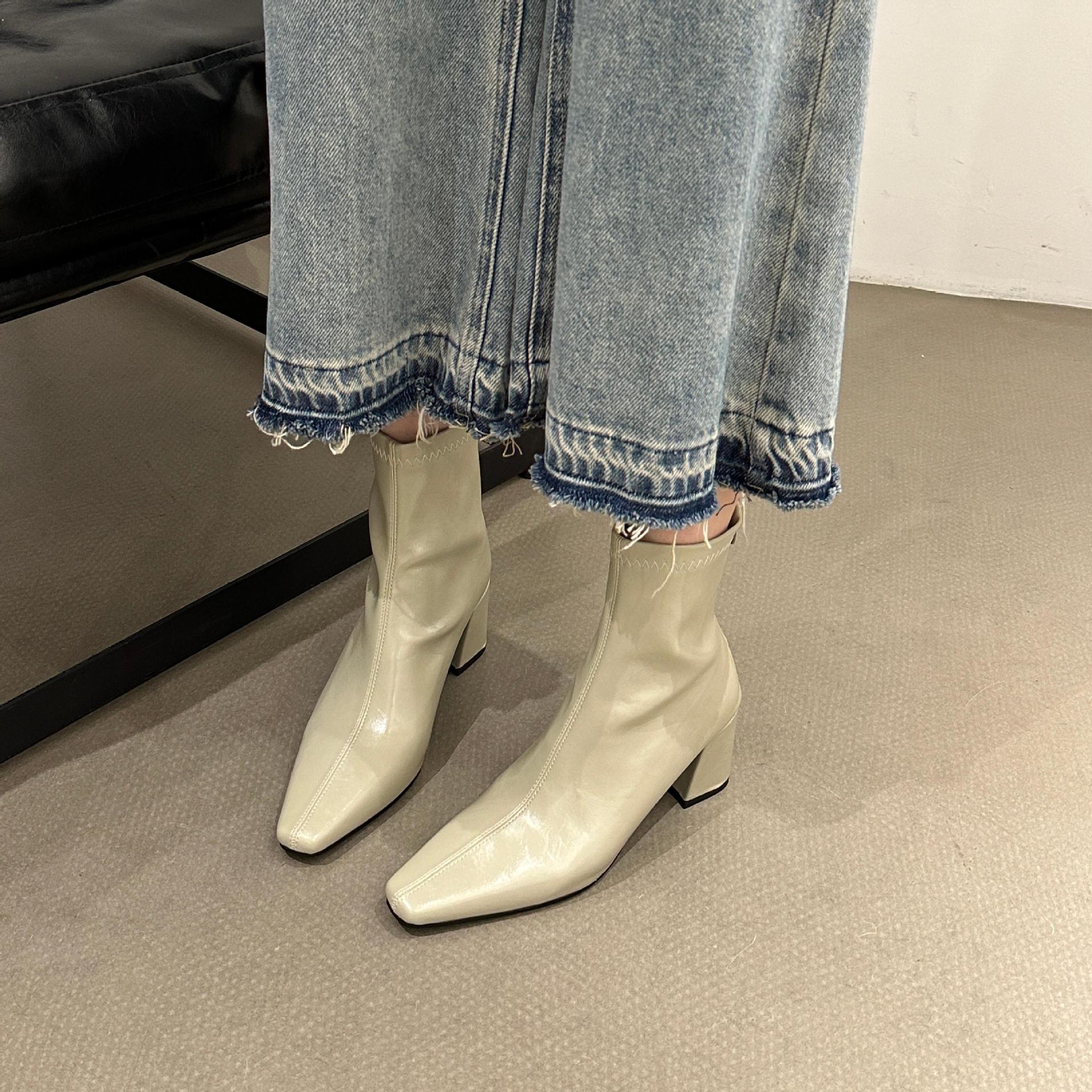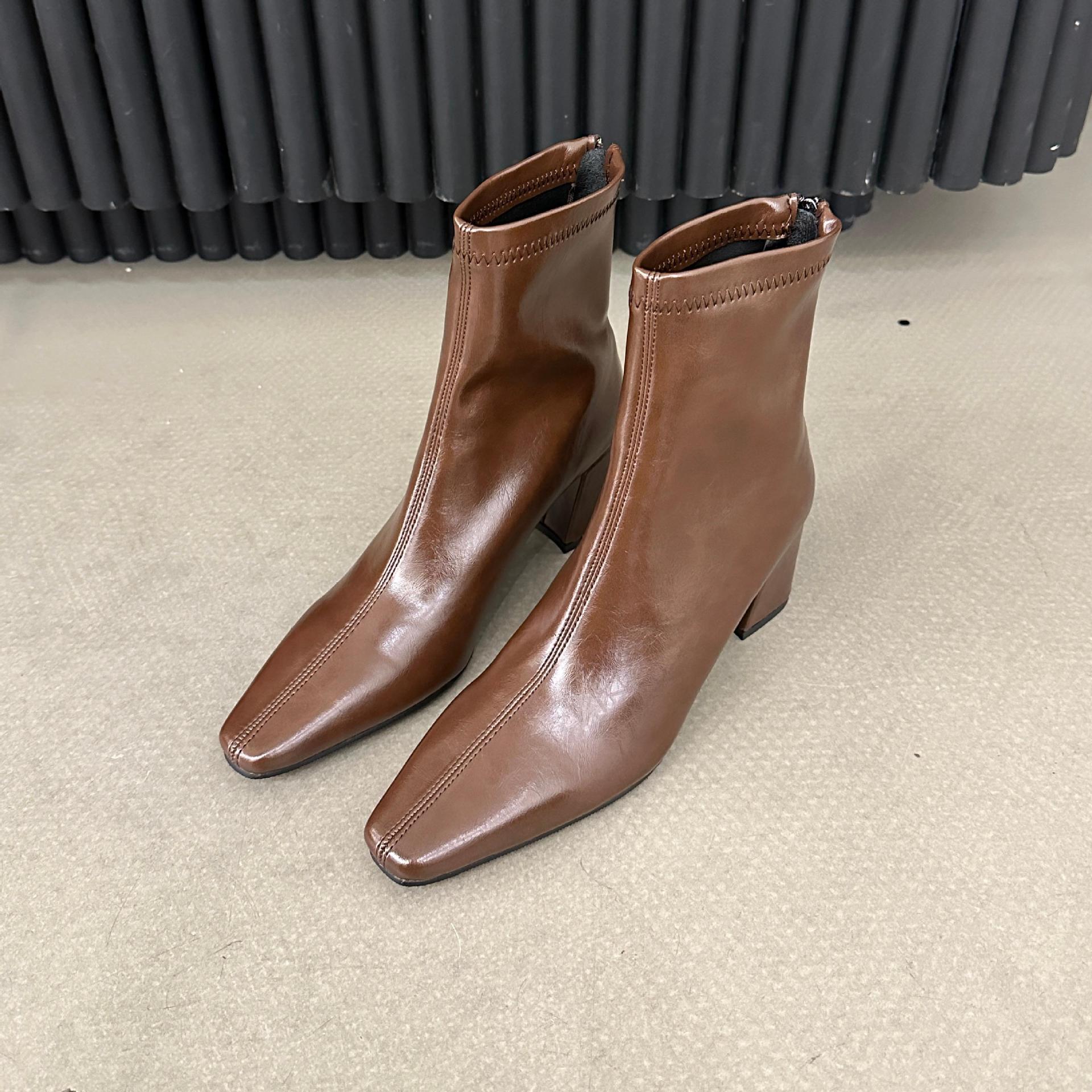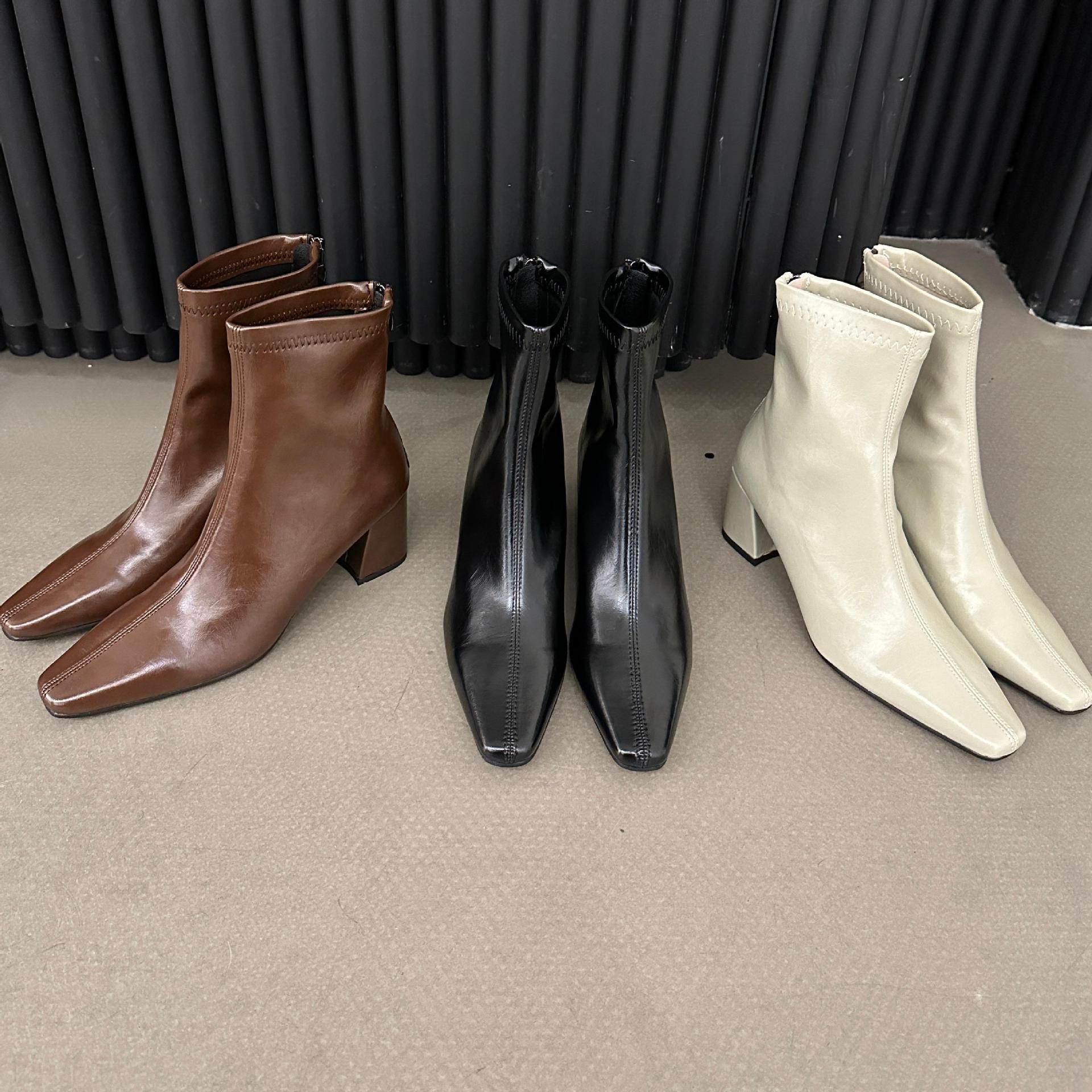 2025 가을 겨울 신상 유럽 및 미국 스타일 사각코 심플 슬림 부츠 두꺼운 굽 하이힐 뒷지퍼 마틴 부츠 숏부츠 여성용