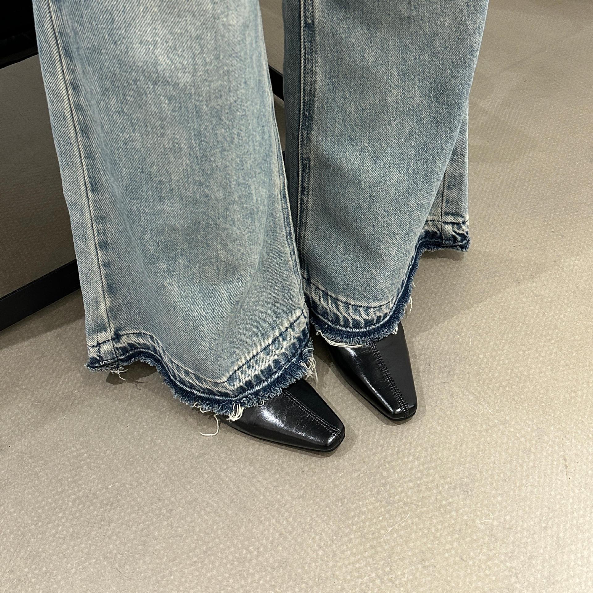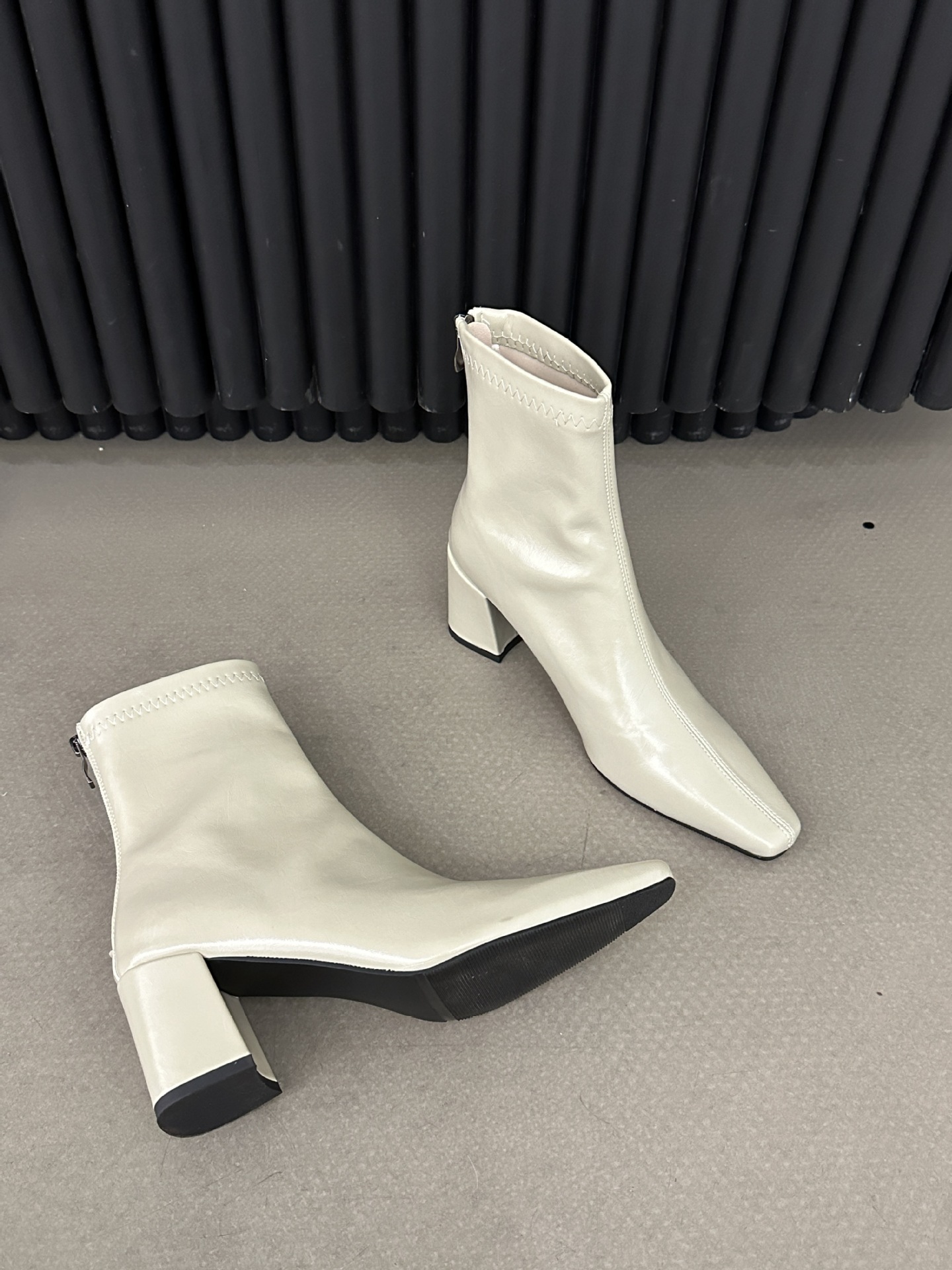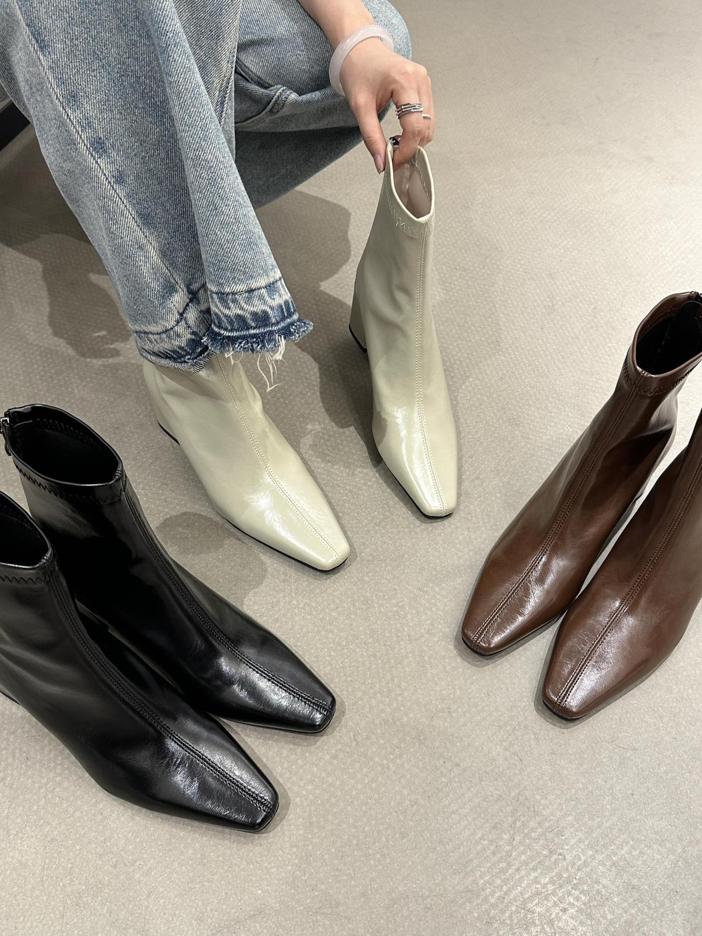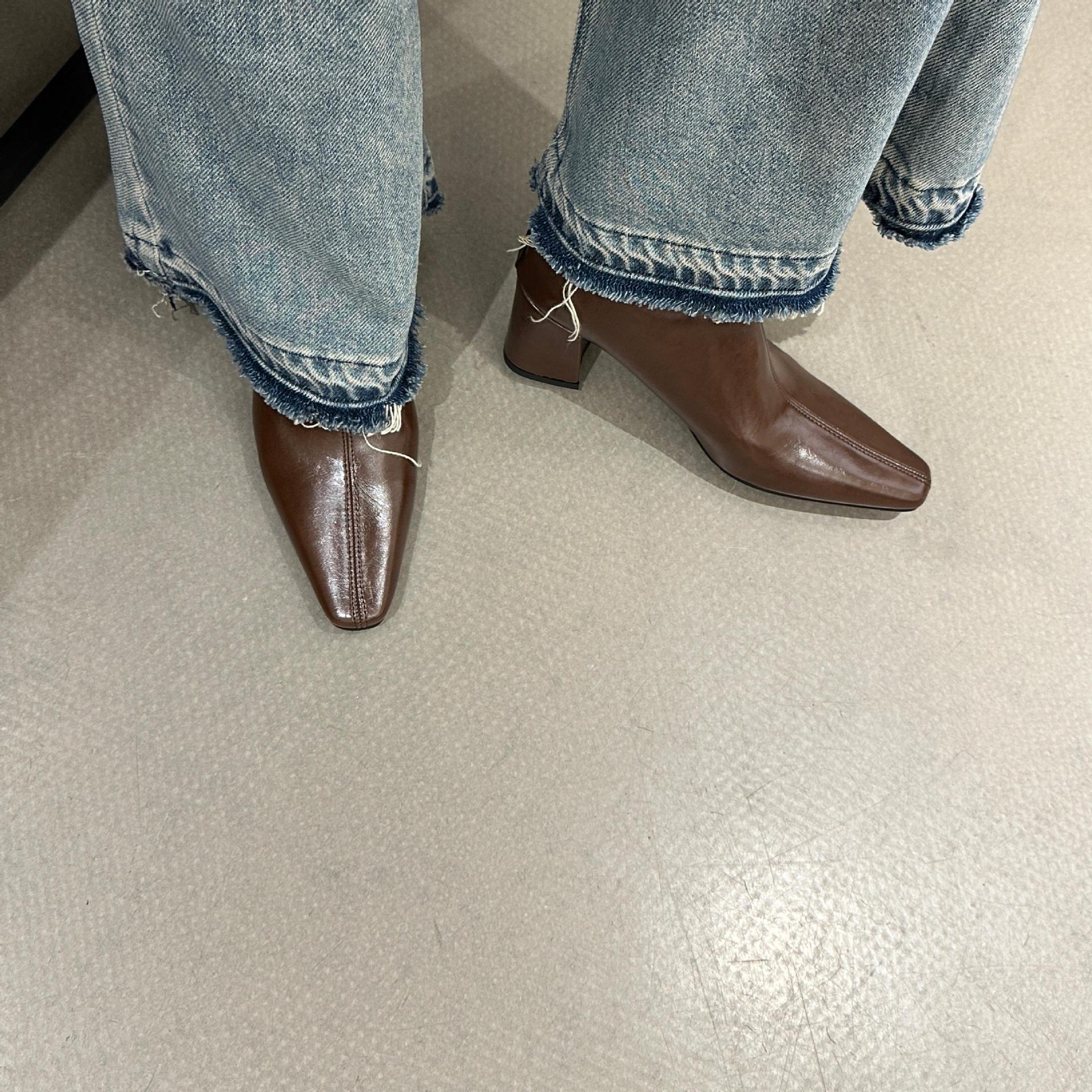 2025 가을 겨울 신상 유럽 및 미국 스타일 사각코 심플 슬림 부츠 두꺼운 굽 하이힐 뒷지퍼 마틴 부츠 숏부츠 여성용