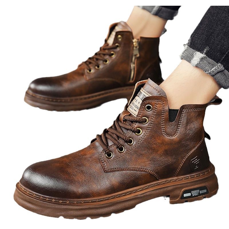 가을과 겨울 2024 새 시즌 마틴 부츠 작업복 부츠 레트로 영국 남성 하이 톱 남성 기모 패션 캐주얼 신발
