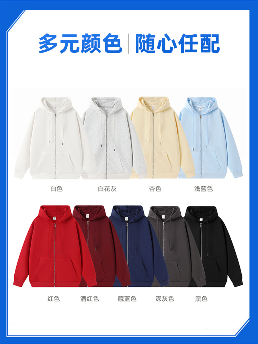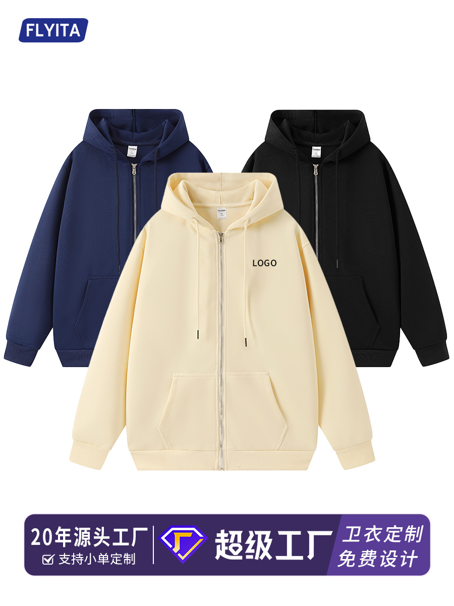 330g7A 항균 헤비급 트렌디 코튼 루즈 지퍼 후드 스웨트셔츠 맞춤형 유럽 및 미국 남성 카디건 두꺼운 재킷