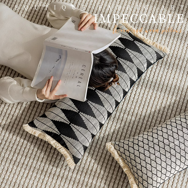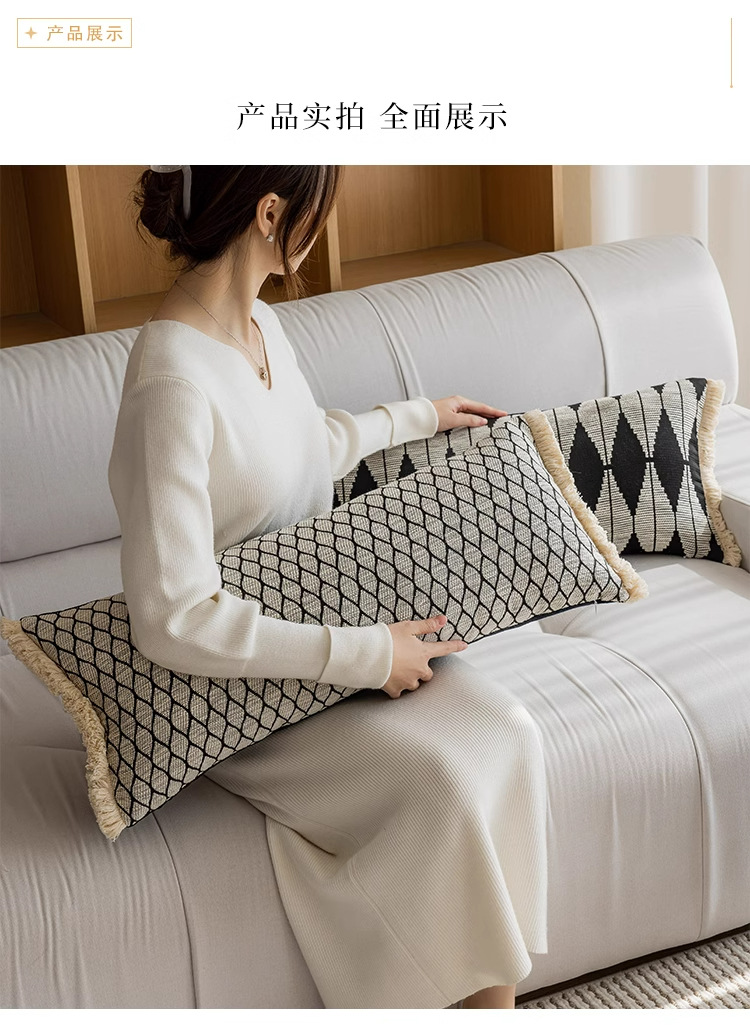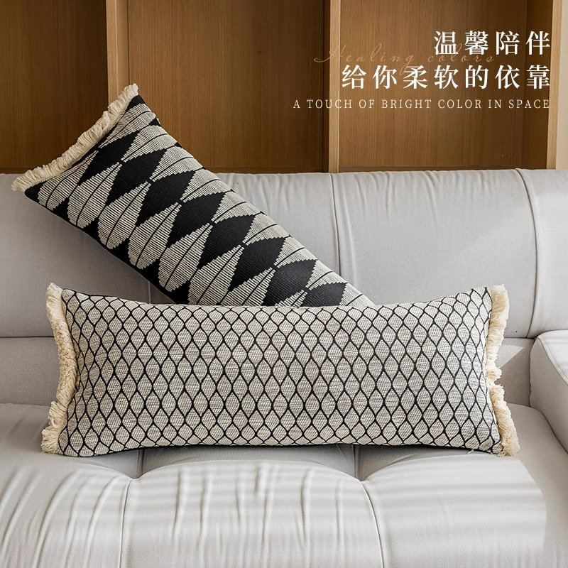 새로운 중국 스타일의 소파 베개 뒤 쿠션 거실 간단한 현대 하이 엔드 긴 베개 침대 쿠션 스트라이프