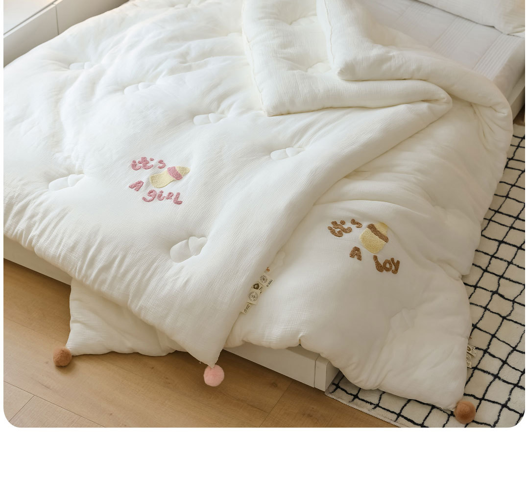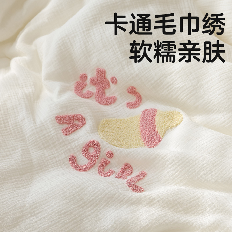 클래스 A 면 더블 레이어 원사 아이들의 귀여운 부드러운 왁스 타월 자수 아기 봄과 가을 퀼트 유치원 낮잠 얇은 이불