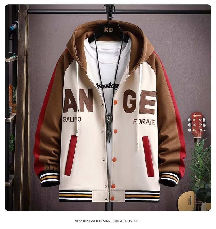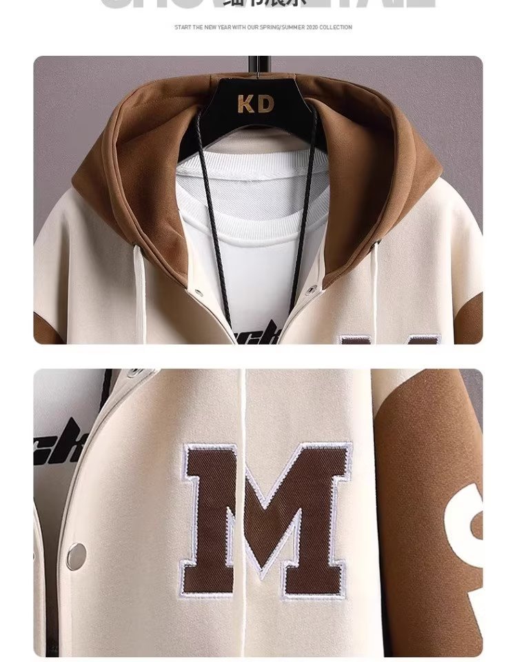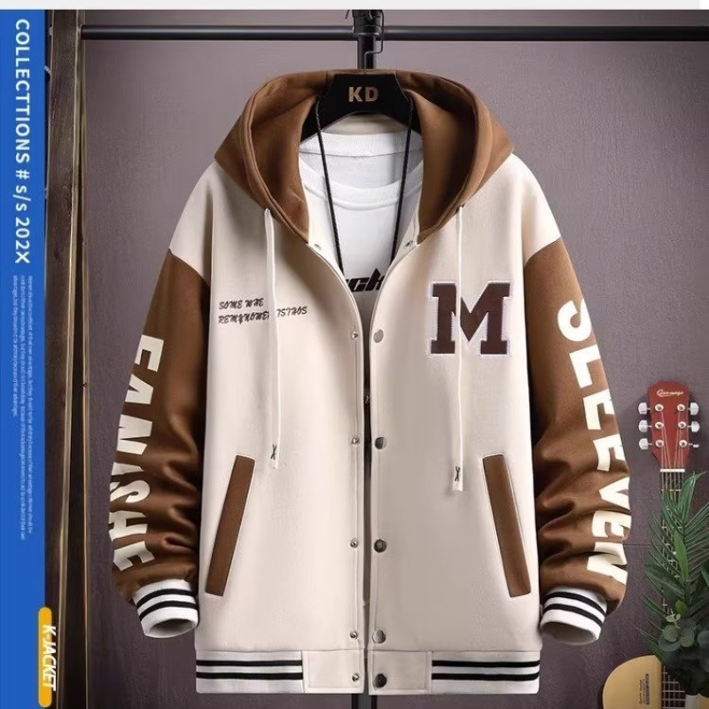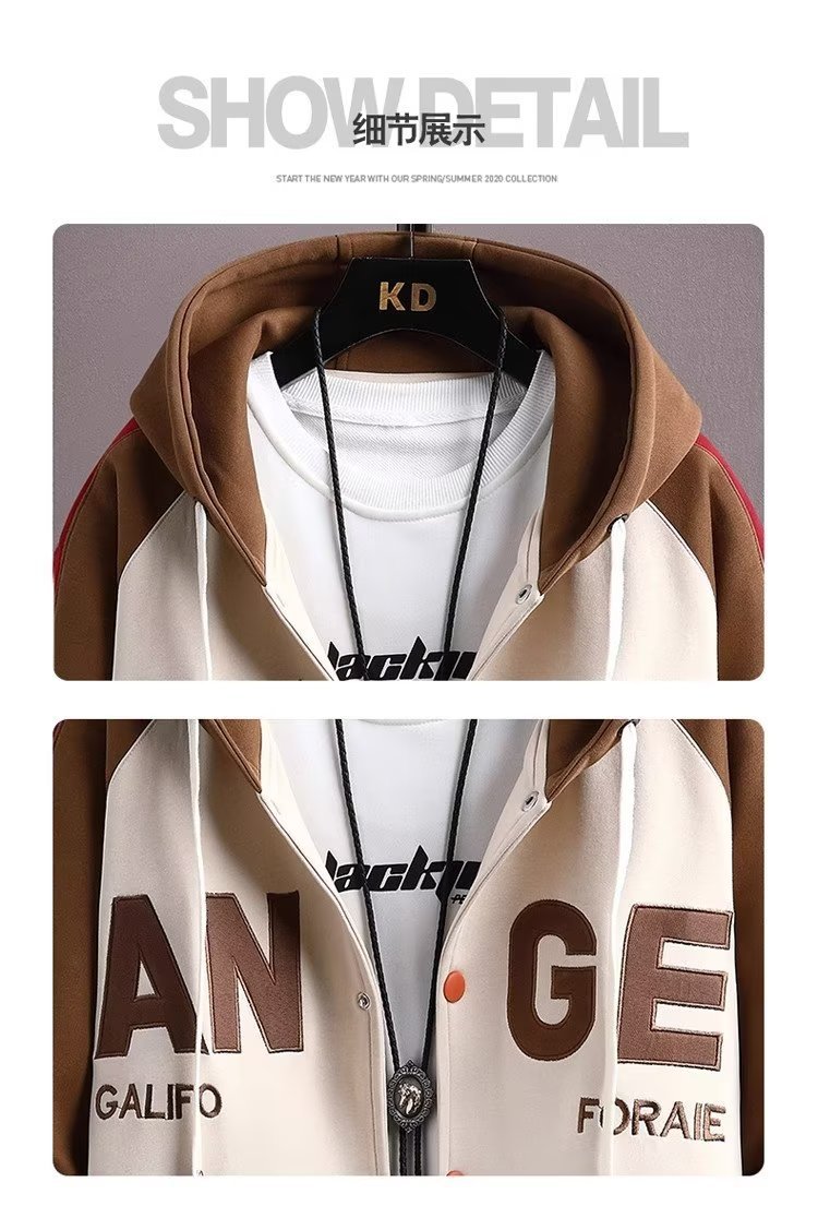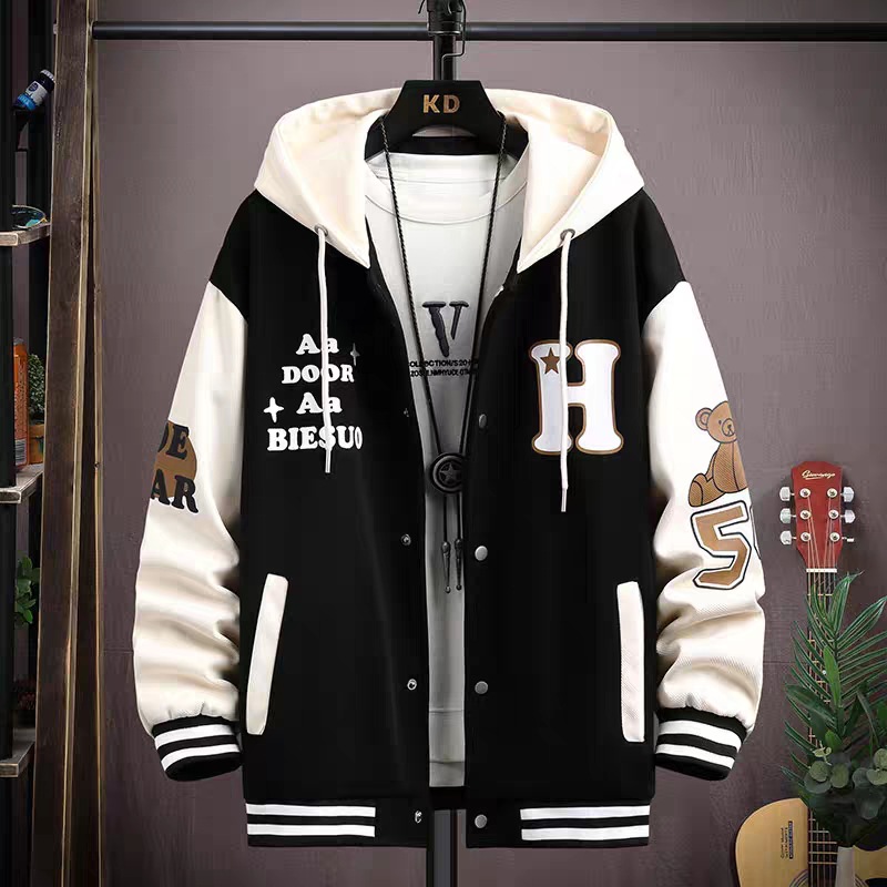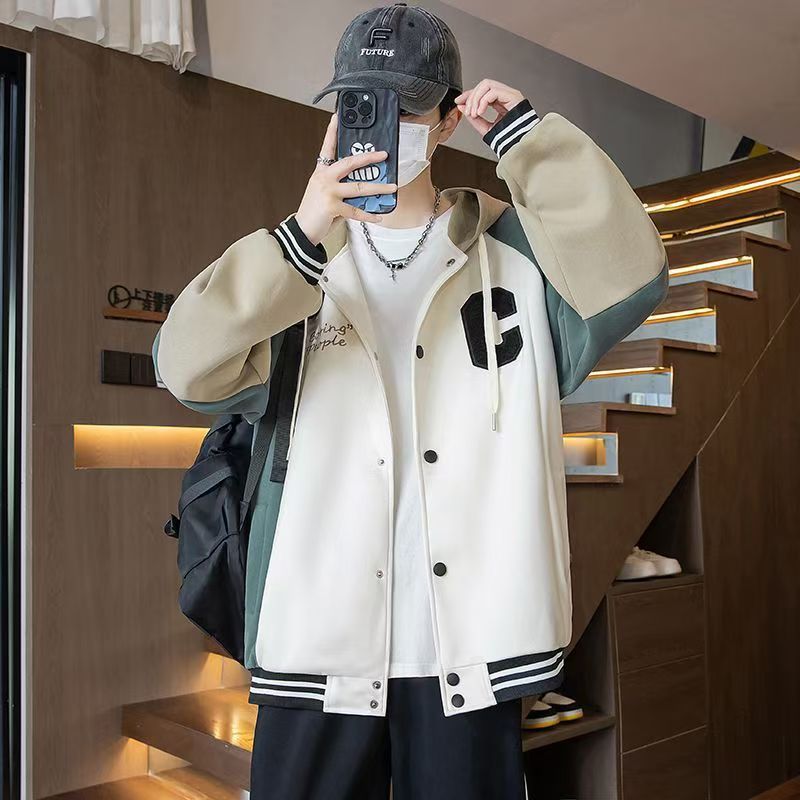 십대 야구 세트 코트 남자 봄과 가을 느슨한 캐주얼 재킷 유행 잘 생긴 소년 후드 기모 스웨트 셔츠