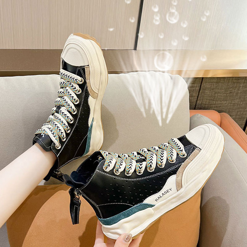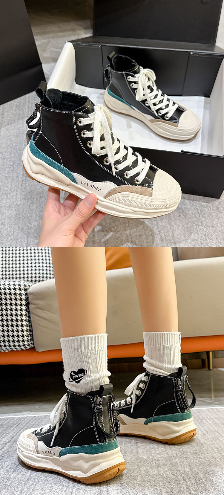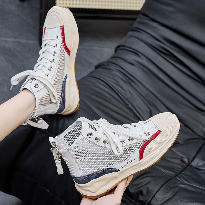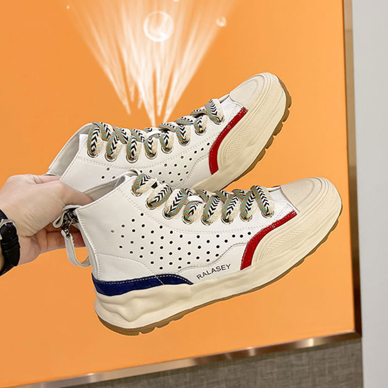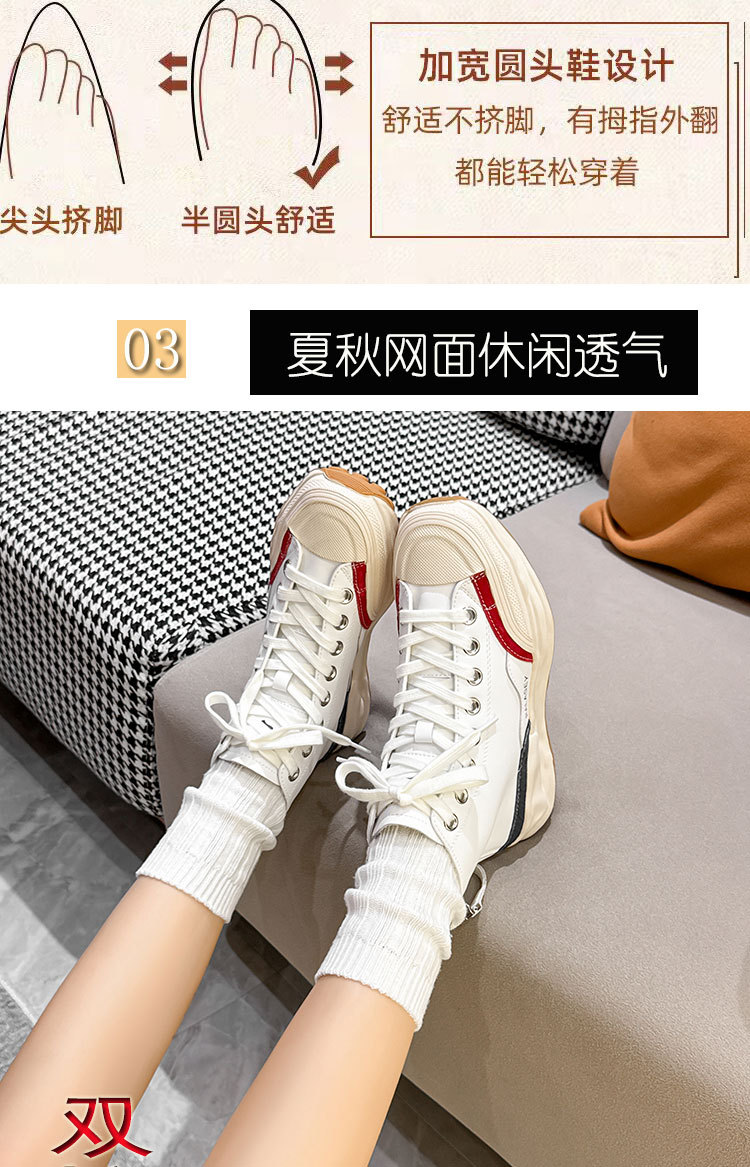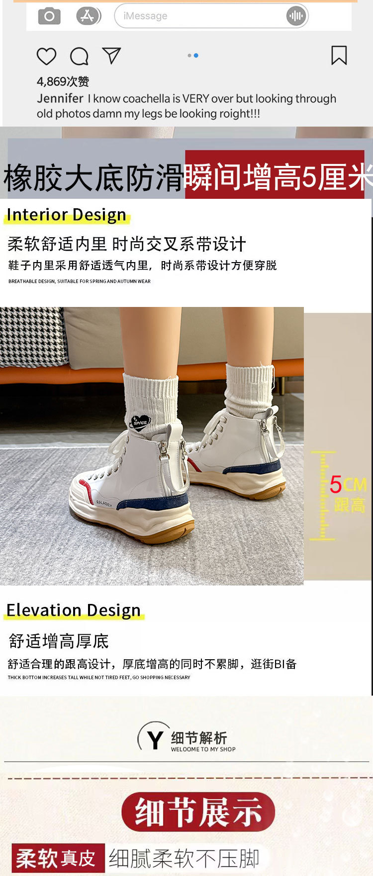 여성 하이 탑 화이트 슈즈 2024 새로운 한국식 인테리어 높이 증가 운동화 올 매치 인 여성을위한 학생 트렌디 캐주얼 스니커즈
