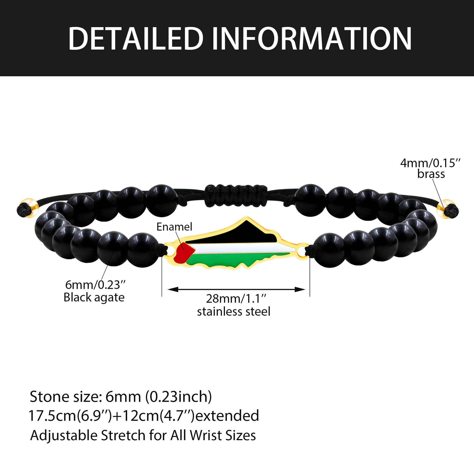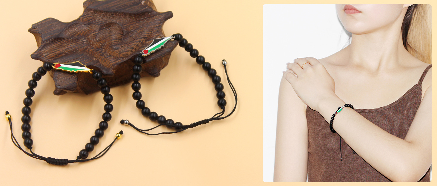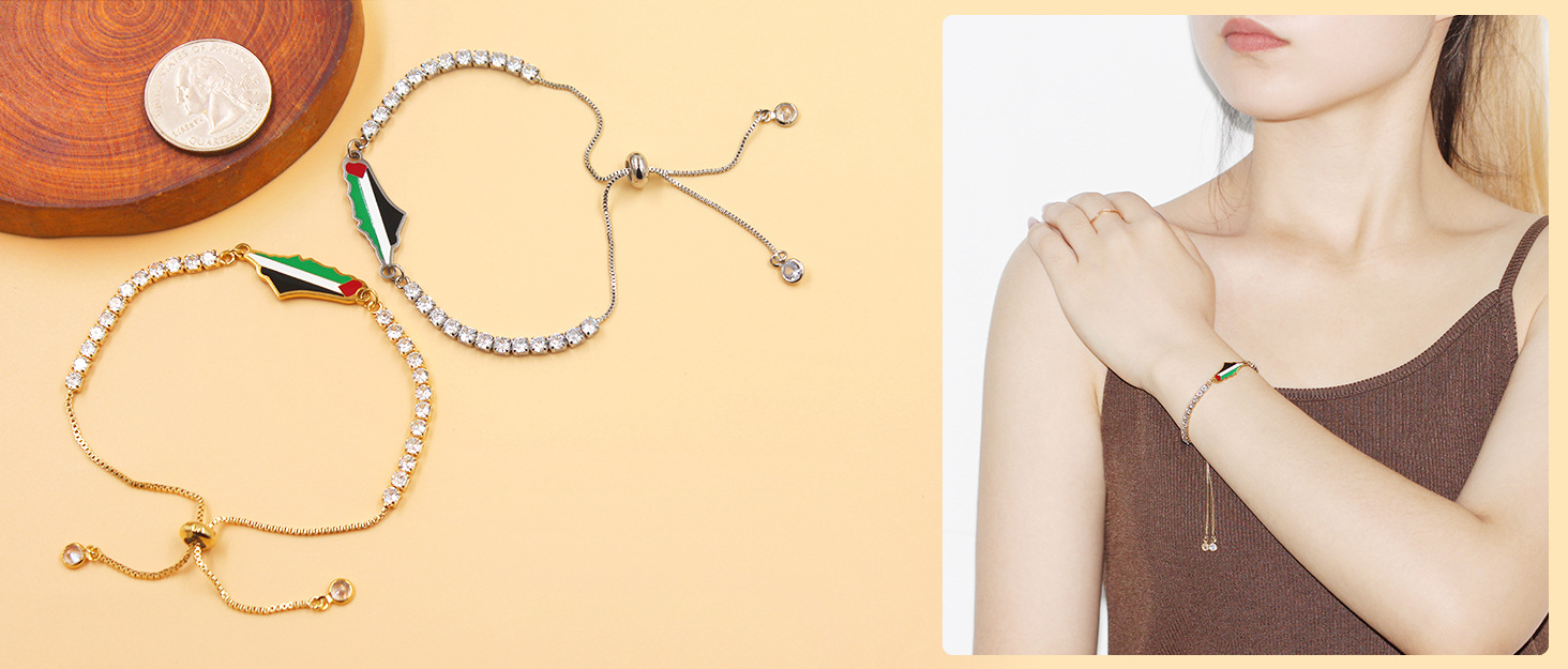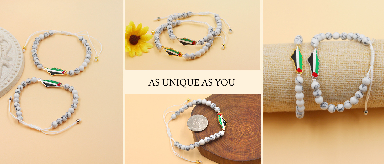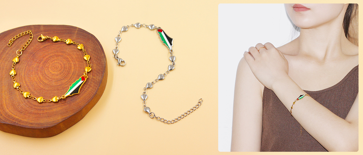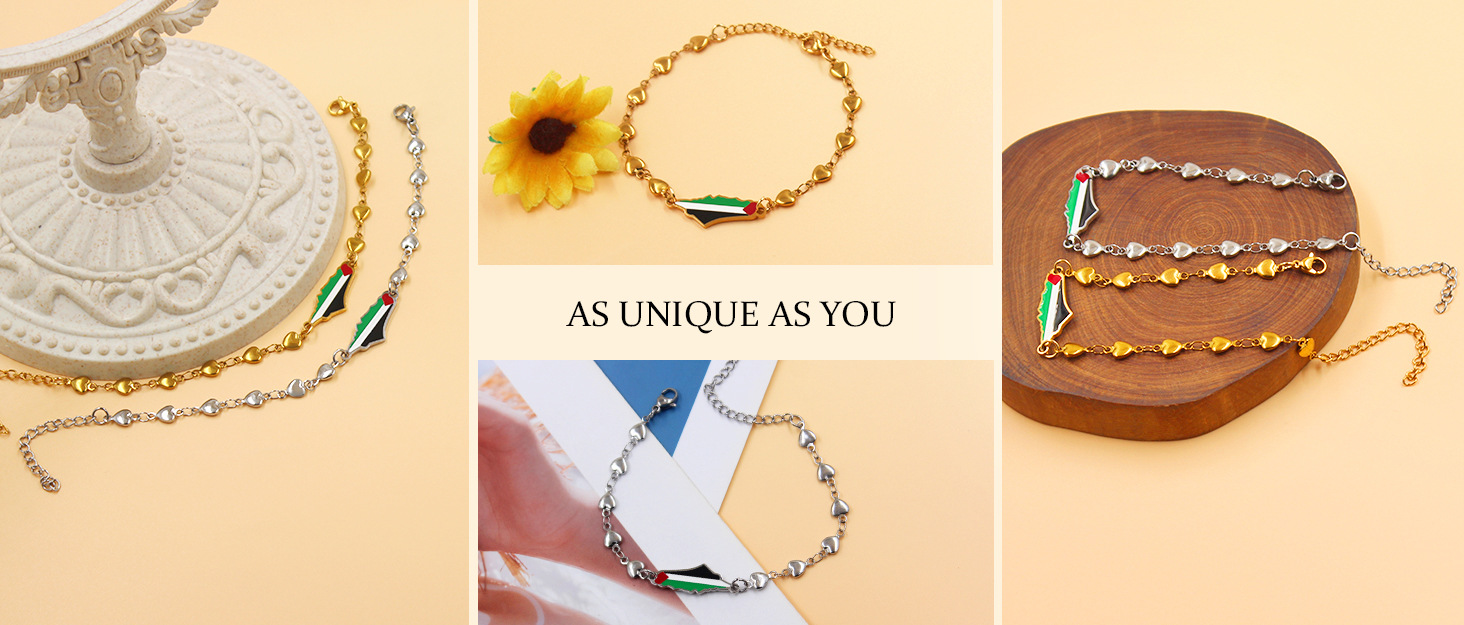 产品材质:不锈钢滴油国旗,不锈钢心链,铜镶嵌锆石链,4mm不锈钢珠/4mm铜珠,6mm白松石/黑玛瑙/虎眼石,不锈钢镶嵌水晶链